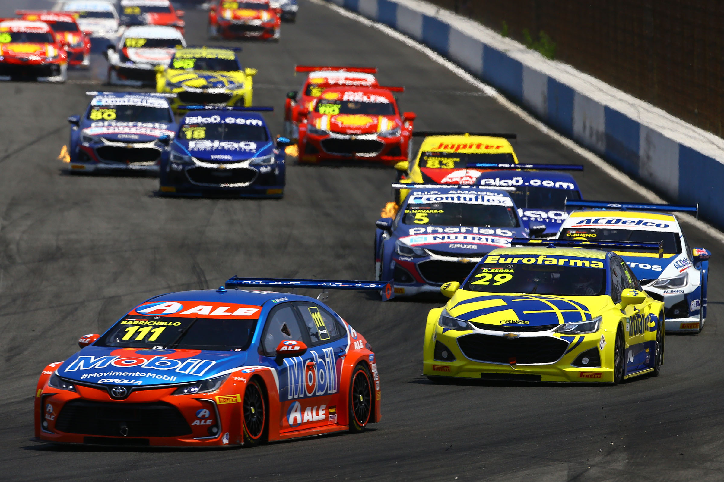 Velocidade no Asfalto Piquet vai ao pódio na corrida 2. Barrichello soma 34 pontos e segue na briga pelo título Por Eni Alves Publicado em 10 de novembro de 2020 Compartilhar no Facebook Compartilhar no Twitter Compartilhar no Google+ Compartilhar no Pinterest Os companheiros Matias Rossi e Rafael Suzuki tiveram domingo difícil, mas também marcaram pontos para o campeonato em Curitiba. Dentro de 15 dias, a Stock Car realiza mais duas etapas em Goiânia Rubens Barrichello: 34 pontos no total (Carsten Horst / Hyset) A Stock Car completou neste domingo (dia 8) mais uma rodada tripla da temporada 2020, desta vez no autódromo internacional de Curitiba, em Pinhais (PR). Com a disputa entrando em sua reta final, a equipe Full Time Sports conquistou mais um pódio com Nelson Piquet Jr., que foi o segundo na corrida 2, e somou o total de 34 pontos com Rubens Barrichello, que ficou em quinto na primeira prova e fechou o dia na quarta posição. (hotelfauchere.com) Os companheiros Matias Rossi e Rafael Suzuki tiveram um domingo mais complicado. Rossi levou uma batida logo após a largada da corrida 1 e abandonou. Na corrida 2, largou em último e conseguiu se recuperar um pouco, chegando em 11º. Já Suzuki partiu da 24ª posição e terminou as provas em 14º e 16º. Os vencedores do domingo foram Thiago Camilo e Gabriel Casagrande. Camilo, que também venceu a etapa de sábado (7), sai da pista paranaense na liderança da Stock Car, com 222 pontos, restando três etapas para final da temporada. Barrichello também segue forte na briga e subiu para a terceira posição, com 196 pontos, apenas dois atrás do vice-líder (Ricardo Zonta). Piquet Jr. também volta a ocupar um lugar no Top-10 e está agora em nono, com 149 pontos. Suzuki está em 13º lugar na tabela, com 134 pontos. Rossi está em 17º, com 107. Dentro de 15 dias, a Stock Car realiza mais uma rodada “maratona”, com a décima etapa em prova única no dia 21 e a 11ª etapa em rodada dupla no dia 22 no autódromo internacional Ayrton Senna, em Goiânia (GO). O campeonato se encerrará no dia 13 de dezembro, em Interlagos (SP) Quarto pódio em 2020 Após largar em 22º na corrida 1, Piquet encerrou a primeira prova deste domingo em 15º. Em seu pit stop, trocou os quatro pneus, abasteceu e traçou uma estratégia para ter melhores chances na corrida 2. E deu certo. O piloto partiu da 15ª posição e, após a parada obrigatória nos boxes, saiu entre os ponteiros, o que abriu caminho para a conquista de mais um pódio. Foi o quarto pódio do piloto na temporada. Piquet também já venceu uma etapa em Interlagos, foi segundo em Goiânia e terceiro em Londrina (PR). “Não marcamos tantos pontos quanto gostaríamos, somando as três corridas do fim de semana, mas terminamos com um pódio. Gostaria de agradecer à Texaco, aos mecânicos, que fizeram um pit stop excepcional e ao meu engenheiro, pois traçamos uma estratégia muito boa também”, declarou o piloto do Corolla #33. “Vamos continuar trabalhando, pra ter mais velocidade em Goiânia e fazer mais pontos, pra tentar chegar com chances no campeonato em Interlagos”, completou Piquet. 34 pontos e na briga Rubens Barrichello também ficou bem próximo de subir ao pódio em Curitiba. Após largar em sexto e terminar em quinto na corrida 1, ele partiu novamente da sexta posição na corrida 2 e esteve bem próximo do terceiro lugar na prova, cruzando a linha de chegada em quarto. Somando as duas provas, o piloto somou o total de 34 pontos e ficou satisfeito. Na etapa de sábado, depois de largar em 21º, ele também somou bons pontos, finalizando a corrida em oitavo. “Eu diria que, por todo o esforço da equipe ontem em desmontar o carro e procurar todo o problema de falta de velocidade, que vínhamos enfrentando, valeu a pena. Saímos da etapa deste domingo com 34 pontos”, destacou o piloto do Corolla #111. “Mesmo assim, marcamos 10 pontos a menos que o Thiago Camilo, que vem numa tocada excelente, andando muito forte. Ele se torna o ‘ponto de partida’ pra quem quer ganhar o campeonato. Já não é mais uma questão de sobrevivência. É a luta para ver quem chega na última etapa em condições muito boas de ganhar”, avaliou. “Mas eu saio daqui feliz, porque fizemos pontos bem acolhedores que nos levam de volta para a briga do campeonato”, concluiu Barrichello, que tem dois pódios em 2020, sendo uma vitória, justamente em Goiânia, palco da próxima etapa. Rossi e Suzuki têm domingo complicado Para o argentino Matías Rossi e o paulista Rafael Suzuki a nona etapa ficou aquém das expectativas. Rossi, que no sábado ficou bem próximo do pódio, terminando em quarto, levou um toque logo na largada da corrida 1 deste domingo e abandonou. Na segunda prova, largou de último e completou em 11º. “Não tivemos um bom dia. Largamos na primeira corrida e já levei um toque atrás, na roda traseira direita. Tive de parar para consertar o carro e abandonamos, porque o dano era muito grande. Larguei atrás na segunda corrida e pudemos avançar um pouco e chegar em 11º. Mas, o ocorrido na primeira corrida complicou toda a etapa. São coisas que acontecem e vamos com tudo para Goiânia”, declarou Rossi, piloto oficial da Toyota Gazoo Racing. Já Suzuki, partiu de 24º e completou a primeira prova em 14º. Na corrida 2, foi o 16º. “A gente ganha junto e perde junto. Este fim de semana foi muito ruim. Na etapa de hoje, não encaixamos uma estratégia certeira e o ritmo não era suficiente. Vamos analisar tudo o que aconteceu, e buscar soluções, mas vamos lá. Daqui 15 dias já temos mais um fim de semana intenso em Goiânia e vamos lutar para recuperar os pontos perdidos”, finalizou Suzuki, que venceu em 2020 sua primeira corrida na Stock Car, na etapa de Londrina (PR). Na etapa deste domingo, os três pilotos da Full Time habilitados para ganhar o Fan Push (Barrichello, Piquet e Rossi) faturaram os votos dos fãs e tiveram um botão de ultrapassagem a mai
