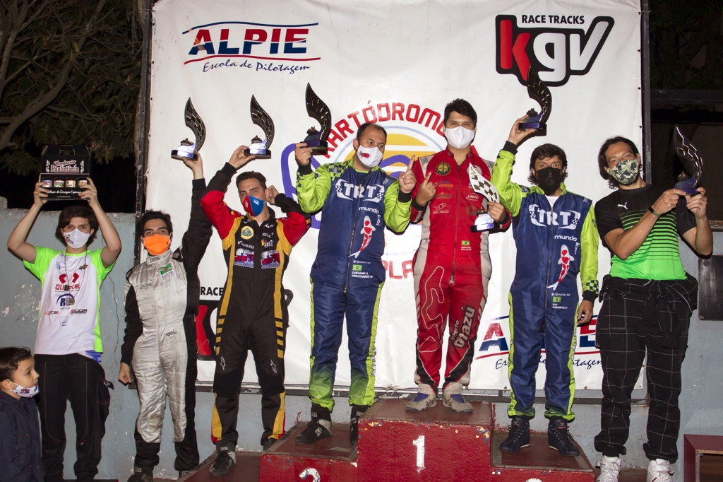 Compartilhar no Facebook Compartilhar no Twitter Compartilhar no Google+ Compartilhar no Pinterest Luciano Montanhez (Elite), Beto Dicker (Graduados), Edu Abrantes (Sênior) e Gabriel Medina (Light) são os líderes na classificação Geral. Alberto Otazú (Elite), Beto Dicker (Graduados), Edu Abrantes (Sênior) e Gabriel Medina (Light) lideram o segundo turno. Pódio da Elite da AKSP (Foto:EmersonSantos/One Photography Media) A cada etapa o campeonato da Associação dos Kartistas de São Paulo (AKSP) se mostra mais surpreendente e competitivo, sempre apresentando novos vencedores e novos líderes. E as provas da penúltima rodada, realizada no último fim de semana (21/11), confirmaram estas expectativas. Os vencedores foram Alberto Otazú (Elite), Leonardo Ferreira (Graduados), Luiz Gouvêa (Sênior) e André Alves (Luiz). E faltando apenas uma etapa para a definição dos campeões, os líderes do segundo turno são Alberto Otazú (Elite), Beto Dicker (Graduados), Edu Abrantes (Sênior) e Gabriel Medina (Light), enquanto que na tabela de pontuação da temporada os ponteiros são Luciano Montanhez (Elite), Beto Dicker (Graduados), Edu Abrantes (Sênior) e Gabriel Medina (Light). A principal categoria proporcionou a corrida mais acirrada. Luciano Montanhez estabeleceu a pole position, seguido de Edu Abrantes, Alberto Otazú, Augusto Coutinho e Biel Gregório. Logo Montanhez, Otazú e Abrantes se destacaram, com os dois primeiros chegando a trocar de posição na liderança. Até que Alberto percebeu que não tinha equipamento para liderar e ficou no vácuo dos dois primeiros para aguardar algum erro de seus concorrentes. E foi o que aconteceu. Faltando cinco voltas ele passou para a vice liderança e já abriu uma folguinha sobre Edu, na antepenúltima volta fez a volta mais rápida (1min06s590) e ultrapassou Luciano, para abrir meio segundo (0s588) até a bandeirada. Com este resultado Otazú passou a liderar o segundo turno e está a apenas 7,5 pontos de Montanhez, que é o líder na classificação geral da temporada. Na categoria Graduados Marcelo Argenton garantiu a pole position, seguido de Leonardo Ferreira e Rogério Cebola, que foram os protagonistas desta prova. Depois de acirrada disputa no início, Ferreira assumiu a ponta e foi abrindo vantagem, marcando o giro mais rápido (1min06s300) na 15ª volta. Ele chegou a abrir 4s145 de vantagem para conquistar a sua primeira vitória, com Cebola em segundo e Argenton em terceiro. Beto Dicker, que terminou em quinto, além do segundo turno, assumiu a liderança da classificação geral, apenas seis pontos à frente de Matheus Roque. Entre os veteranos da Sênior, um novo vencedor e que dominou totalmente a penúltima etapa. Luiz Gouvêa largou da pole position, fez a volta mais rápida (1min07s040), e venceu com apenas 0s106 sobre Jorge Filipe, na chagada mais apertada. Marco Verga foi o terceiro. Mesmo terminando em sexto, Edu Abrantes continua liderando o segundo turno e a pontuação geral, 11,5 pontos à frente de Verga. Já a prova entre os menos experientes foi bem dinâmica. José de Jesus Gonçalves foi o pole position da Light, liderou as primeiras voltas, mas teve um pneu furado e foi obrigado a trocar de kart e caiu para as últimas posições. Hélio Matias assumiu a liderança, e numa disputa Marcelo Costa foi jogado para fora por ele. Melhor para André Alves, que após largar em quarto foi só se aproveitando dos problemas dos outros para liderar e vencer pela primeira vez com 0s378 sobre Igor Pacanari, autor da volta mais rápida (1mn07s489). Terceiro na prova, Gabriel Medina ampliou a sua liderança no campeonato para cômodos 25 pontos sobre José Gonçalves. Além da premiação no pódios aos primeiros colocados em cada prova, houve a premiação para Leonardo Ferreira, autor da volta mais rápida do dia entre todas as categorias, que ganhou uma luva personalizada da DKR, e para a pole position mais rápida do dia, de Luciano Montanhez, que levou uma camiseta personalizada com motivo de kartismo criada pela Harderthan. E a SM Reparação de Veículos ofereceu vários troféus exclusivos para estes premiados, além de divertidos troféus com vários motivos, e ainda sorteou um macacão Meg Star entre os pilotos que anteciparam pagamento, em que o sortudo foi Ricardo da Veiga Cesar. Como o segundo turno da AKSP distribui o dobro de pontos do torneio inicial, agora serão até 38,5 pontos em disputa na etapa final, que será realizada no dia 5 de dezembro. Além disto, quem participou de todas as etapas do ano receberá uma bonificação de mais cinco pontos. Consequentemente, as disputas em todas as categorias estão em aberto. Resultado da 5ª e penúltima etapa da categoria Elite da AKSP: 1) Alberto Otazú, 16 voltas em 18min54s996; 2) Luciano Montanhez, a 0s588; 3) Edu Abrantes, a 0s717; 4) Biel Gregório, a 3s648; 5) Tiago Vargas, a 13s176; 6) Augusto Coutinho, a 15s237; 7) Gabriel Roque, a 19s090; 8) João Vitor Gregório, a 19s499; 9) João Viegas, a 29s973; 10) Igor Mei, a 31s473. Confira a pontuação do segundo turno da Elite depois da penúltima etapa: 1) Alberto Otazú, 64 pontos; 2) Luciano Montanhez, 61,5; 3) Igor Mei, 57; 4) Tiago Vargas, 57; 5) Edu Abrantes, 51; 6) Gabriel Roque, 39; 7) João Vitor Gregório, 39; 8) Biel Gregório, 25,5; 9) Henrique Morbi, 25; 10) Fábio Laranjo, 21; 11) Gustavo Pincelli, 19,5; 12) Valdo ‘Nenê’ Gregório, 18. Confira a pontuação da Elite após a penúltima etapa: 1) Luciano Montanhez, 111,5 pontos; 2) Alberto Otazú, 104; 3) Edu Abrantes, 87; 4) Igor Mei, 85; 5) Tiago Vargas, 83; 6) Gabriel Roque, 81; 7) Fábio Laranjo, 65; 8) João Vitor Gregório, 63; 9) Henrique Morbi, 61; 10) Biel Gregório, 55,5; 11) Valdo ‘Nenê, 49; 12) Johnny Neves, 47; 13) Gustavo Pincelli, 45,5; 14) Zeppe Corsi, 39; 15) Vitor Mercatelli, 37; 16) Nelson Reple, 33; 17) Fábio Cedro, 32; 18) Rodrigo Caldeira, 31; 19) Felipe Franco, 30; 20) Marcos Gelsi, 26. Resultado da 5ª e penú