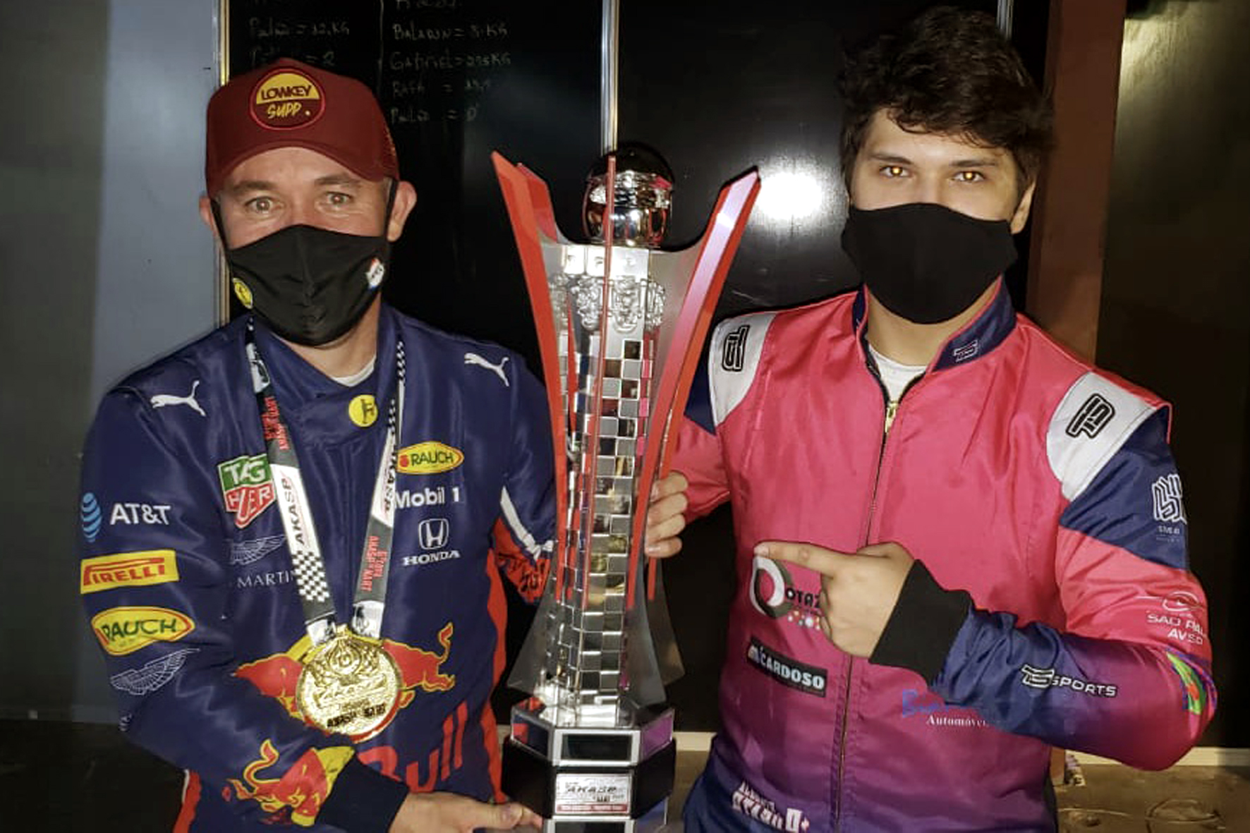 Compartilhar no Facebook Compartilhar no Twitter Compartilhar no Google+ Compartilhar no Pinterest Vice-campeão largou em 10º, fez melhor volta e venceu Alberto Otazú (D) venceu com o kart de Rogério Cebola (E) (Foto: Pedro Bragança) Atual vice-campeão do campeonato de F-4 da Associação de Kart Amador de São Paulo (Akasp), o piloto Alberto Otazú (Cardoso Funilaria e Pintura/Bianchi Automóveis/ AVSP/No Fire Services/Rolley Ball/Speed Truck/TS Sports) parece estar muito disposto a brigar pelo título máximo nesta temporada. Na terceira prova de pré-temporada, realizada na noite de quarta-feira (20/01) no Kartódromo Granja Viana, em Cotia (SP), ele venceu pela segunda vez, largando da 10ª posição, estabelecendo a volta mais rápida (39s952) e abrindo 6s861 de vantagem sobre Alexandre Albino. “Foi outra boa vitória, mas com começo de prova bem difícil. Larguei em décimo na fila indiana e na sexta volta alcancei a vice-liderança. Como o líder (Heraldo Brasil) havia aberto quase três segundos, tive que me esforçar muito e só assumi a liderança na 13ª volta. A partir daí só procurei ser extremamente constante pra vencer novamente. Vamos tentar manter este ritmo durante toda a temporada”, comentou Otazú, que já havia vencido a primeira prova preparatória do ano, naquela ocasião debaixo de chuva. O certame de F-4 da Akasp é disputado com karts Mega dos próprios pilotos, mas com acertos de chassi fixos, equipados com motor Honda GX 390, de 18 hp, equalizados e sorteados pela MFS Racing. A próxima etapa da pré-temporada da Copa Akasp 2021, que terá início em março, será no dia 27/1, novamente no Kartódromo Granja Viana. Confira o resultado da prova da F-4 Akasp: 1) Alberto Otazú, 35 voltas em 25min13s227; 2) Alexandre Albino, a 6s861; 3) Heraldo Brasil, a 11s117; 4) Eder Ayres, a 18s587; 5) Emerson Rildo, a 20s156; 6) Evandro Massaru, a 20s157; 7) Luiz Reche, a 24s976; 8) Emílio Di Bisceglie, a 30s950; 9) Hélio Bianchi, a 31s133; 10) Dilson Sucupira, a 1 volta. Alberto Cesar Otazú tem o apoio de Autódromo Virtual de São Paulo (AVSP), Bianchi Automóveis, Cardoso Funilaria e Pintura, No Fire Services, Rolley Ball, Speed Truck, TS Sports. O jovem apoia as ações da Associação Cruz Verde, Direção para a Vida e Rotary Club Ponte Estaiada.