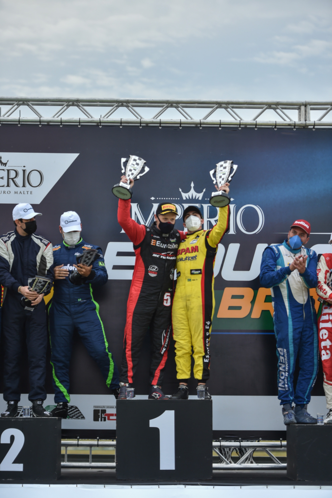 Velocidade no Asfalto João Pedro Maia venceu em sua estreia no Império Endurance Brasil em dupla com Tiel Andrade Por Eni Alves Publicado em 3 de maio de 2021 Compartilhar no Facebook Compartilhar no Twitter Compartilhar no Google+ Compartilhar no Pinterest Dupla inicia participação no campeonato com a liderança na divisão P3 João Pedro Maia (Beto Correa | RR Media) O sábado de estreia de João Pedro Maia (Golden Puro Malte | BPAM | Multipet | BMG), que competiu em dupla com o experiente Tiel Andrade, não poderia ter sido melhor. Em Goiânia (GO), no Autódromo Internacional Ayrton Senna, a dupla foi destaque entre os 32 carros inscritos e chegou à vitória em sua divisão, a P3. A participação de João Pedro Maia em seu final de semana de estreia no Império Endurance Brasil se iniciou na sexta-feira, quando o piloto de Campinas (SP) e seu companheiro de equipe lideraram os dois treinos que disputaram. Depois, na última atividade do dia, o lendário #5 da equipe MC Tubarão conquistou o segundo lugar no grid de largada na P3. Tiel Andrade e João Pedro Maia no alto do pódio em Goiânia (Beto Correa | RR Media) As 4 Horas de Goiânia tiveram largada às 13 horas, com Tiel Andrade no primeiro turno de pilotagem. João Pedro Maia, responsável por pilotar o MC Tubarão na segunda e última parte, foi quem recebeu a bandeirada da vitória. “Vencer é sempre muito emocionante, mas essa vitória foi ainda mais especial, porque foi justamente em minha estreia na categoria”, destaca João Pedro Maia (Golden Puro Malte | BPAM | Multipet | BMG), campeão sul-americano e sul-brasileiro de kart e campeão paulista e da Copa ECPA da Fórmula Vee. Ainda que a dupla tenha comemorado a vitória, o sábado foi difícil. “Tivemos alguns problemas com o carro durante a corrida, mas conseguimos contornar e vencemos. Quero parabenizar toda a equipe e dizer que estou muito feliz por fazer parte da MC Tubarão”, disse João Pedro Maia, de 16 anos, o piloto mais jovem no grid do Império Endurance Brasil. Tiel Andrade, piloto com o maior número de participações na categoria, teceu elogios à João Pedro Maia e comemorou a vitória que coloca a dupla na luta pelo título da temporada. “O João Pedro é um piloto muito rápido, que veio de categorias onde a ordem é acelerar e, claro, velocidade sempre é o mais importante”, destaca. “Ele ainda precisa se adaptar um pouco às provas de Endurance, em que precisamos mesclar velocidade com durabilidade. E está de parabéns por sua bela atuação”, finalizou. O Império Endurance Brasil volta à pista no início de junho, mais exatamente nos dias 4 e 5, quando disputará sua segunda etapa, em Curitiba (PR). KG COM Assessoria de Comunicação – Erno Drehmer