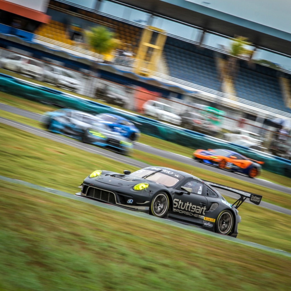 Velocidade no Asfalto Porsche da Stuttgart Motorsport vence na abertura do Endurance Brasil Por Eni Alves Publicado em 3 de maio de 2021 Compartilhar no Facebook Compartilhar no Twitter Compartilhar no Google+ Compartilhar no Pinterest A Stuttgart Motorsport começou vencendo a temporada de 2021 do Endurance Brasil. Marcel Visconde e Ricardo Mauricio levaram o Porsche 911 GT3 R ao primeiro lugar na categoria GT3 das 4 Horas de Goiânia. Marcada por diversas mudanças de líderes e trocas de posição na primeira metade da corrida, a categoria GT3 se definiu a cerca de 1h20 da bandeirada, quando o Porsche assumiu o primeiro lugar e manteve a colocação até a bandeirada. Porsche 911 GT3 R de Marcel Visconde/Ricardo Mauricio (Ricardo Saibro/Stuttgart Motorsport) O Porsche largou em quinto lugar na classe GT3, após um treino classificatório diferente do habitual. Normalmente, a definição do grid acontece de acordo com a média de dois pilotos de cada carro. Em Goiânia, a classificação aconteceu com pista molhada, situação em que o regulamento prevê a saída de apenas um piloto para marcar tempo. Porsche 911 GT3 R de Marcel Visconde/Ricardo Mauricio (Ricardo Saibro/Stuttgart Motorsport) Na corrida, Marcel Visconde manteve a posição na classe após a largada, enquanto os demais concorrentes da GT3 brigavam entre si pelos lugares à frente. Visconde manteve o Porsche próximo dos demais GT3 durante todo seu stint, que compreendeu as duas primeiras horas de prova. Ricardo Mauricio assumiu o cockpit para as duas horas finais e, com uma tocada forte, ultrapassou um a um os adversários da GT3. Depois de assumir a liderança, o Porsche não foi mais ameaçado pelos demais carros de sua classe. “Fizemos uma estratégia com cada piloto fazendo dois stints seguidos e foi a decisão correta. O carro andou bem e isso foi importante”, afirmou Marcel Visconde. “É sempre bom começar o ano com uma vitória. Vencemos a última corrida de 2020 e começamos 2021 com o pé direito”, completou Mauricio, referindo-se à vitória da Stuttgart Motorsport nas 4 Horas do Velopark, etapa de encerramento do ano passado, em que a equipe foi vice-campeã da GT3. Os seis primeiros da categoria GT3 nas 4 Horas de Goiânia: 1) 55-Marcel Visconde/Ricardo Mauricio (Porsche 911 GT3 R) 2) 27-Ricardo Baptista/Cacá Bueno (Mercedes AMG GT3) 3) 16-Marcelo Hahn/Allam Khodair (McLaren 720S GT3) 4) 8-Guilherme Figueirôa/Júlio Campos (Mercedes AMG GT3) 5) 9-Xandy Negrão/Xandinho Negrão/Andreas Mattheis (Mercedes AMG GT3) 6) 83-Marco Billi/Maurizio Billi/Max Wilson (Mercedes AMG GT3) Stuttgart, a sua referência Porsche no Brasil A Stuttgart iniciou suas operações como concessionária autorizada Porsche. Entre outubro de 1997 e junho de 2015, a empresa foi importadora oficial da marca alemã no Brasil. Nesse período, a Porsche aumentou significativamente sua presença no País. Atualmente, a Stuttgart Porsche opera oito concessionárias em São Paulo, Campinas, Ribeirão Preto, Porto Alegre, Florianópolis, Curitiba, Rio de Janeiro e Recife. O histórico e a presença em seis estados fazem da Stuttgart a referência em Porsche no Brasil. Sobre a Stuttgart Motorsport A Stuttgart Motorsport é o braço esportivo da Stuttgart Porsche e tem um longo e vitorioso histórico de participação em competições. Sua conquista mais recente é o título do Campeonato Brasileiro de Endurance de 2017. Desde sua criação, em 1997, a Stuttgart Motorsport conquistou vitórias em provas tradicionais como a Mil Milhas Brasil e os 500 Quilômetros de São Paulo, além de ter participação em provas internacionais da IMSA (24 Horas de Daytona (1998) e da Le Mans Series (Mil Milhas de 2007). Site: stuttgartporsche.com.br