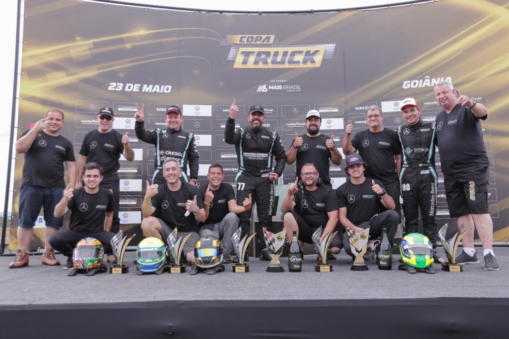 Velocidade no Asfalto Excesso de bagagem: Mercedes-Benz domina pódio e inicia campeonato na liderança Por Eni Alves Publicado em 24 de maio de 2021 Compartilhar no Facebook Compartilhar no Twitter Compartilhar no Google+ Compartilhar no Pinterest Goiânia – A equipe oficial Mercedes-Benz na Copa Truck, AM Motorsport, vai voltar para casa com excesso de bagagem. O time faturou sete troféus na etapa de abertura da temporada disputada neste domingo (23), no Autódromo de Goiânia. André Marques venceu a corrida 2 e foi P3 na corrida 1. Wellington Cirino foi P2 e P4. E Giuliano Losacco venceu as duas corridas da Super Truck e ainda pegou pódio geral como P2 e P3. Na corrida 2 o time repetiu o seu melhor resultado na história, conquistado em Cascavel no ano passado, com três pilotos nas três primeiras posições do pódio. Time Mercedes-Benz sai de Goiânia com a liderança nos campeonatos. Crédito: Rodrigo Ruiz/RR Media “Estou muito feliz com esse resultado. O time trabalho duro para deixar os caminhões dentro do novo regulamento e o resultado veio na pista. Não tivemos nenhuma advertência por fumaça e conquistamos as vitórias. Quero agradecer todo o nosso time e nossos patrocinadores, e vamos seguir devolvendo essa confiança com mais pódios”, declarou André Marques, que tem o patrocínio do Consórcio Mercedes-Benz, Gelog Logística, Radiadores Visconde e Rodoviário Crismara. Giuliano Losacco também celebrou muito as duas vitórias na Super-Truck e os pódios no geral. “O caminhão estava perfeito. Só posso agradecer o trabalho do time, o convite do André Marques e os resultados. Voltar a pilotar depois de três anos e nesse time maravilhoso, é muito bom”, comentou o líder na classificação da Super-Truck que tem o apoio da D’Itália Empreendimento e Black NG Engenharia 4.0. Wellington Cirino mostrou toda a sua qualidade e experiência ao manter seu caminhão na pista mesmo com problemas de aquecimento. “O caminhão estava bom no início da prova e eu sabia que largar por fora aqui em Goiânia é complicado, especialmente com pilotos experientes. Depois, fiz o possível para superar o aquecimento e chegar até o final, pensando nos pontos para o campeonato”, declarou o tetracampeão que tem o apoio da Cresol, Dimare Planejados, Unimed Beltrão e Nino Faróis. O estreante Glauco Barros completou as duas corridas, com um p13 e um P11. “É a primeira experiência e já fui competitivo. Uma pena ter queimado o radar e sofrido penalização. Poderia ter ido para o pódio da Super Truck”, avaliou o piloto Norway Bank. Com a liderança entre pilotos e montadora, a equipe oficial Mercedes-Benz já começa a trabalhar para a segunda etapa da temporada, programadas para o dia 27 de junho, em Interlagos. Resultado Corrida 1 1º – Felipe Giaffone (Iveco) 2º – Giuliano Losacco (MB) 3º – André Marques (MB) 4º – Wellington Cirino (MB) 5º – Felipe Tozzo (IVE) 6º – Adalberto Jardim (PRO) 7º – Valmir Benavides (IVE) 8º – Evandro Camargo (MB) 9º – Jô Augusto (VW) 10º – Daniel Kelemen (MB) 11º – Djalma Pivetta (IVE) 12º – Luiz Lopes (IVE) 13º – Glauco Barros (MB) 14º – Jaidson Zini (MB) Não completaram Danilo Alamini (VW) Rodrigo Pimenta (PRO) Débora Rodrigues (VW) Paulo Salustiano (VW) Fábio Fogaça (PRO) Danilo Dirani (MB) Maicon Roncen (VOL) Pedro Paulo Fernandes (MB) DQ Roberval Andrade (VW) DQ Beto Monteiro (VW) DQ Carlos Machado (VOL) Resultado Corrida 2 1º – André Marques (MB) 2º – Wellington Cirino (MB) 3º – Giuliano Losacco (MB) 4º – Jô Augusto (VW) 5º – Felipe Tozzo (IVE) 6º – Valmir Benavides (IVE) 7º – Jaidson Zini (IVE) 8º – Evandro Camargo (MB) 9º – Djalma Pivetta (IVE) 10º – Luiz Lopes (IVE) 11º – Glauco Barros (MB) Não Completaram Daniel Kelemen (MB) Rodrigo Pimenta (PRO) Adalberto Jardim (PRO) Felipe Giaffone (IVE) Danilo Alamini (VW) Débora Rodrigues (VW) Paulo Salustiano (VW) Fabio Fogaça (PRO) Danilo Dirani (MB) Maicon Roncen (VOL) Pedro Paulo (MB) DQ Roberval Andrade DQ Beto Monteiro DQ Carlos Machado