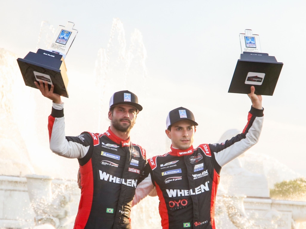 Velocidade no Asfalto Derani ganha posição na largada e chega ao segundo pódio consecutivo na temporada em Detroit Por Eni Alves Publicado em 14 de junho de 2021 Compartilhar no Facebook Compartilhar no Twitter Compartilhar no Google+ Compartilhar no Pinterest Ao lado do companheiro e compatriota Felipe Nasr, Derani é o segundo colocado nas ruas de Belle Isle e sobe para terceiro no campeonato Felipe Nasr (esquerda) e Pipo Derani (direita) no pódio (Brian Cleary) Com uma boa largada, o paulista Pipo Derani garantiu neste sábado (dia 12) mais um pódio na temporada 2021 do IMSA WeatherTech SportsCar Championship. A quarta etapa foi realizada no circuito de rua de Belle Isle, em Detroit (EUA). Derani e o companheiro Felipe Nasr terminaram na segunda posição, a bordo do #31 Whelen Engineering Cadillac DPi-V.R, da equipe Action Express Racing, e repetiram o resultado da etapa passada, em Mid-Ohio. A boa performance também levou a dupla de quarto para terceiro lugar na tabela de pontos, acirrando ainda mais a disputa pelo título. Na definição do grid, na sexta-feira (11), Derani conquistou o terceiro lugar, mas poderia ter lutado por um resultado ainda melhor. No entanto, um incidente com outro competidor nos minutos finais da sessão, impediu o brasileiro de tentar melhorar o seu tempo. Com uma forte largada, Derani já pulou para segundo na curva 1 e manteve um ritmo forte, permanecendo na posição durante todo o seu stint, enquanto economizava o máximo de combustível possível. Desta forma, o time pode fazer apenas uma parada nos boxes durante todos os 100 minutos da disputa. Na volta 33, Derani entrou nos boxes para a troca dos quatro pneus, reabastecimento, com Nasr assumindo o comando do carro para os 46 minutos finais da corrida. O companheiro também acelerou forte e esteve o tempo todo no retrovisor do Cadillac #1, que venceu a prova a apenas 0s573 dos brasileiros. Nos minutos finais, Nasr já estava grudado nos rivais, mas uma bandeira amarela, faltando oito minutos para o final, atrapalhou. A bandeira verde foi acionada para os três minutos finais da disputa, deixando o brasileiro sem tempo para tentar a ultrapassagem. A vitória ficou com Kevin Magnussen e Renger van der Zande, também a bordo de um Cadillac, garantindo a dobradinha para a marca na sua corrida em “casa”. “Foi um trabalho fantástico da equipe Whelen Engineering/Cadillac”, comemorou Derani. “O Cadillac estava fantástico e foi um grande resultado para a marca. Estamos felizes que tenham conquistado a dobradinha, mas gostaríamos que fosse o contrário”, continuou o brasileiro de 27 anos. “Lutamos a corrida toda. Mas foi um daqueles dias. Tínhamos de fazer tudo perfeito para conseguir passar, mas faltou essa chance. Mas, no geral, foi um resultado fantástico para a equipe. E agora vamos para a próxima em Watkins Glen”, finalizou Derani. As 6 Horas de Watkins Glen acontecem dentro de duas semanas, entre os dias 24 e 27 deste mês. Resultado da etapa em Detroit (categoria DPi): 1 #01 R. van der Zande / K. Magnussen (Cadillac Chip Ganassi Racing Cadillac DPi) 66 voltas em 1:40:02.674 2 #31 F. Nasr / P. Derani (Whelen Engineering Racing Cadillac DPi) + 0.573 3 #10 R. Taylor / F. Albuquerque (Konica Minolta Acura ARX-05 Acura DPi) + 4.028 4 #55 O. Jarvis / H. Tincknell (Mazda Motorsports Mazda DPi) + 4.876 5 #5 T. Vautier / L. Duval (Mustang Sampling / JDC-Miller MotorSports Cadillac DPi) + 5.182 6 #60 D. Cameron / O. Pla (Meyer Shank Racing w/Curb-Agajanian Acura DPi) + 5.425 Sniffer Media Ltd Sam Smith sniffermedia@gmail.com
