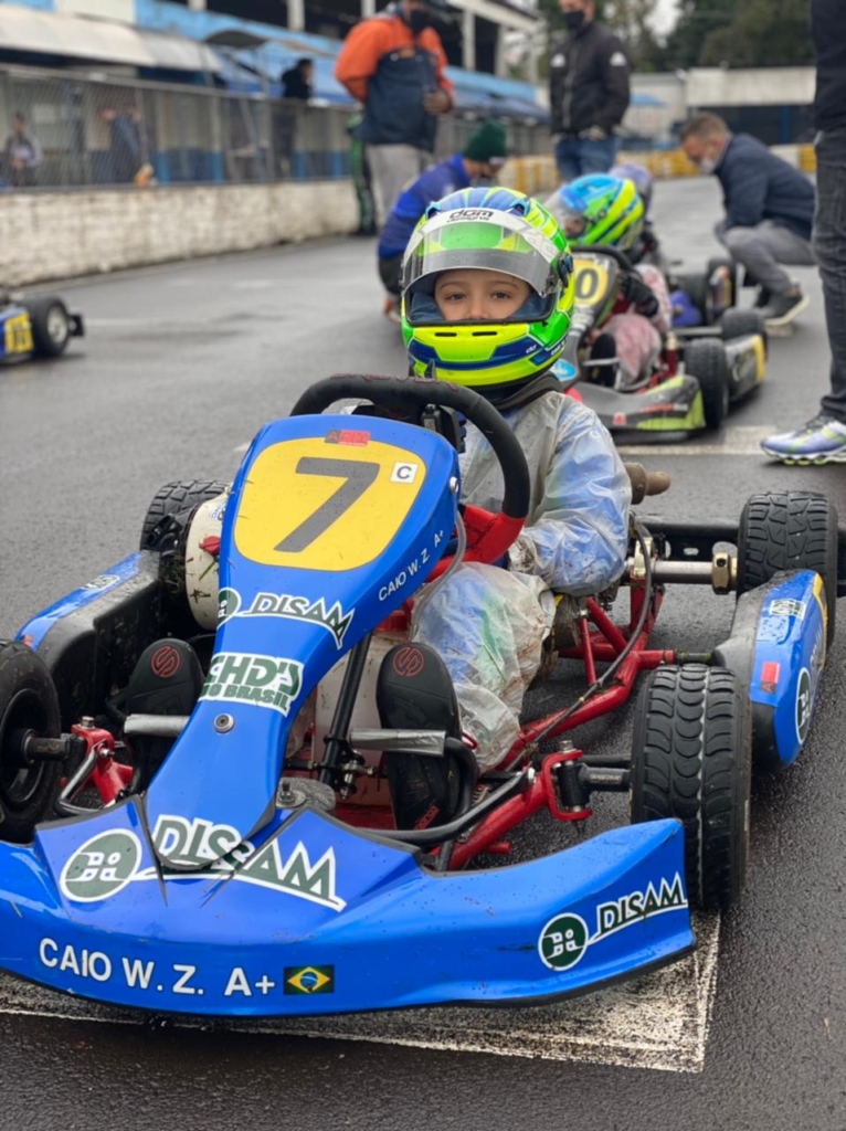 Compartilhar no Facebook Compartilhar no Twitter Compartilhar no Google+ Compartilhar no Pinterest O piloto de São Miguel do Iguaçu venceu sábado a categoria Cadete na 3ª etapa do Campeonato Citadino de Kart de Foz do Iguaçu Caio Zorzetto destaca a experiência adquirida com sua primeira corrida na chuva SÃO MIGUEL DO IGUAÇU (PR) – O sábado foi um dia importante Caio Zorzetto, da equipe Disam Insumos Agrícolas/CHD’S do Brasil, quando disputou a 3ª etapa do Campeonato Citadino de Kart de Foz do Iguaçu. Mais importante do que vencer a categoria Cadete foi a experiência em correr pela primeira vez com chuva. Sob forte chuva, Caio abriu caminho para sua terceira vitória consecutiva no campeonato ao dominar os treinos livres e fazer a pole position. Ele venceu a primeira bateria de ponta a ponta, e na segunda, atrapalhou-se na largada e caiu para terceiro. Mas logo nas primeiras voltas recuperou as posições perdidas e reassumiu a ponta, permanecendo em primeiro até a bandeirada. “Foi uma ótima oportunidade para obter experiência para corridas com chuva. Foi muito bom para manter a concentração durante toda a prova. Já tinha treinado com chuva, mas correr foi a primeira fez. Foi uma proveitosa experiência, que será útil para futuro”, acentua Caio Zorzetto. Classificação Depois de três etapas, Caio Zorzetto se mantém na liderança do campeonato, agora com 78 pontos. Luigi Gollin passa a ser o vice-líder, com 52 pontos, seguido de Bernardo Motter, com 37; André Júnior, com 19; e Juam Mallorquin, com 15 pontos. A 4ª etapa da competição está prevista para o dia 7 de agosto. Assessoria de imprensa do piloto Caio Zorzetto Jornalista Responsável: Luiz Aparecido da Silva
