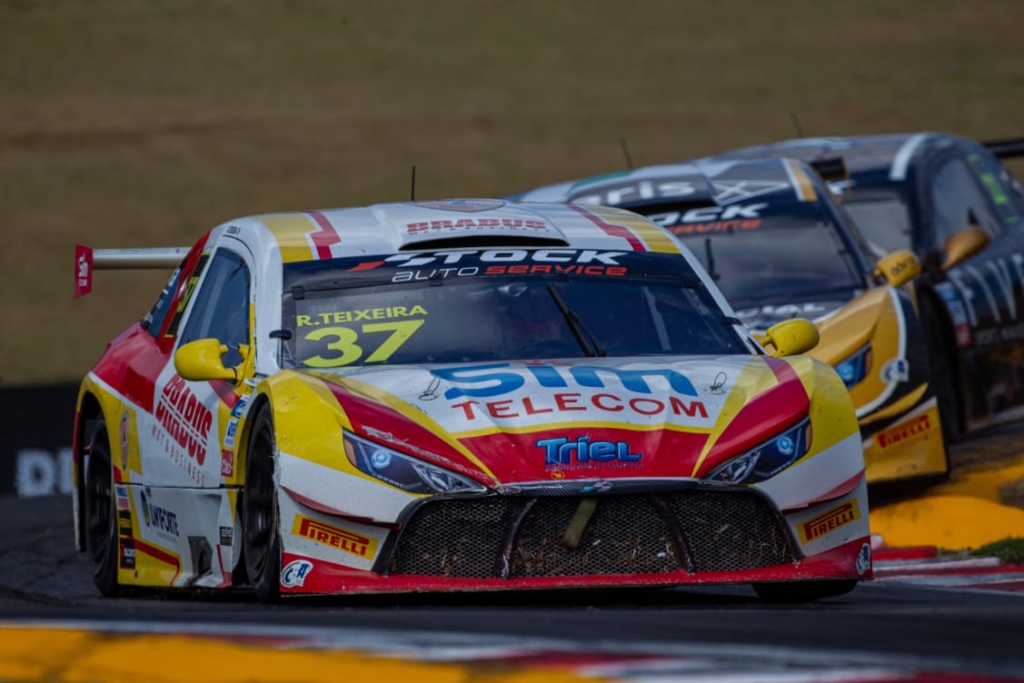 Velocidade no Asfalto Rapha Teixeira mantém top10 com escalada no Velocittà Por Eni Alves Publicado em 21 de junho de 2021 Compartilhar no Facebook Compartilhar no Twitter Compartilhar no Google+ Compartilhar no Pinterest Um dia da caça, outro do caçador. Depois de ter um resultado ruim na corrida 1, o piloto Rapha Teixeira mostrou que está vivo na briga pelas principais posições da Stock Light com uma escalada de pelotão na corrida 2 que lhe rendeu a 7ª posição na prova e um lugar no Top 10 do campeonato. Rapha Teixeira segue na briga. Foto: Vanderley Soares “Dá pra dizer que fiz uma corrida de verdade, com ultrapassagens, defesa de posições, enfim, voltei a ser competitivo”, celebrou o piloto que largou da última posição na corrida 2 e precisou pisar fundo para colocar o carro #37 em uma posição de destaque. Rapha Teixeira corre com o patrocínio da Sim Telecom, Corneta Ferramentas, Brabus Business, 7 Bond, Triel e Uniforte Descartáveis. “Saio mais animado para dar sequência ao trabalho e seguir buscando evolução junto com todo o time da Motortech que está me dando um carro muito bom”, declarou Teixeira já pensando na quarta etapa, marcara para Curitiba, no dia 1 de agosto. Classificação após três etapas 1º – Felipe Baptista, 132 pontos 2º – Gabriel Robe, 125 pontos 3º – Arthur Leist, 111 pontos 4º – Mateus Ioria, 94 pontos 5º – Zezinho Muggiati, 92 pontos 6º – Pietro Rimbano, 91 pontos 7º – Raphael Reis, 85 pontos 8º – Lucas Kohl, 70 pontos 9º – Pedro Ferro, 67 pontos 10º – Raphael Teixeira, 58 pontos 11º – Felipe Papazissis, 57 pontos 12º – Gabriel Lusquiños, 44 pontos 13º – Edgar Bueno, 33 pontos 14º – Enzo Elias, 28 pontos 15º – Gustavo Myasava, 13 pontos 16º – Marco Cozzi, 13 pontos 17º – Dante Fibra, 13 pontos