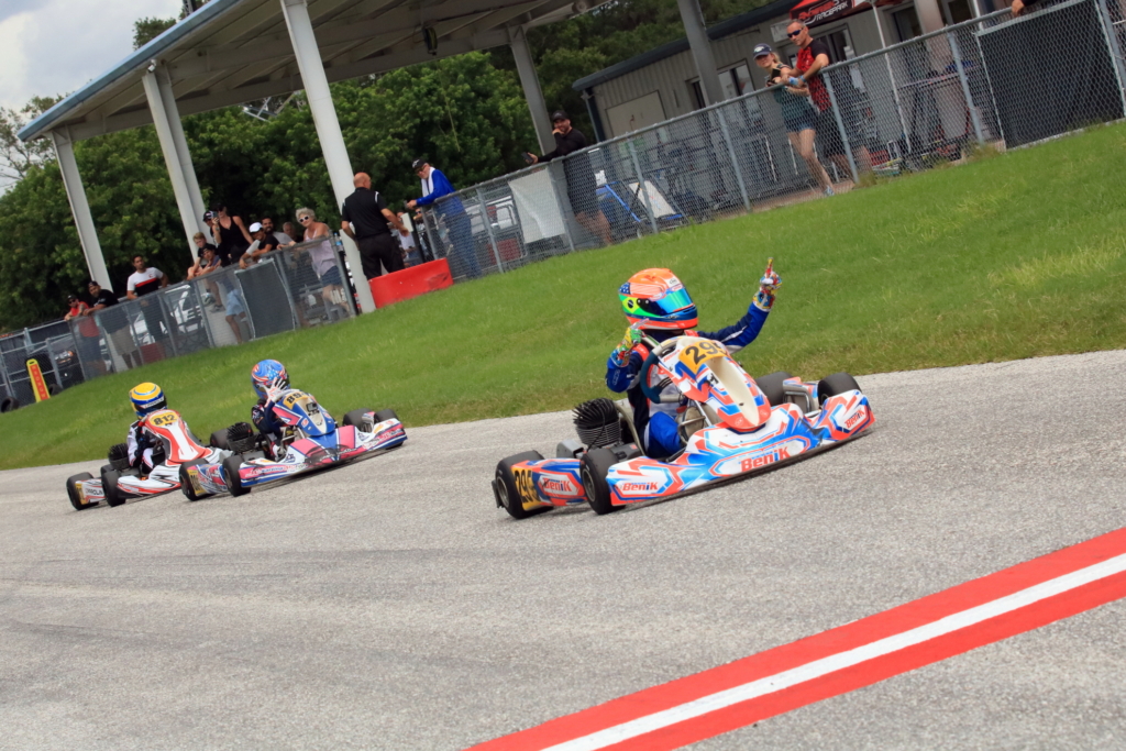 Compartilhar no Facebook Compartilhar no Twitter Compartilhar no Google+ Compartilhar no Pinterest Jovem piloto mostrou grande recuperação no sábado após problemas no classificatório e venceu a corrida final, além de terminar a Pré-Final na segunda colocação e triunfar na Final de domingo; Enzo lidera o campeonato em sua temporada de estreia na categoria KA100 Junior Enzo Vidmontiene (Gastón Covolán/RF1) No último final de semana, o brasileiro Enzo Vidmontiene disputou as etapas 1 e 2 do Sunshine State Karting Challenge em 2021 e venceu as duas Finais da categoria KA100 Junior em Tampa, na Flórida (EUA). Atual bicampeão do campeonato, o jovem piloto mostrou grande recuperação no sábado após problemas no classificatório e venceu a corrida final, além de terminar a Pré-Final na segunda colocação. “Minha estreia na categoria KA100 Junior não poderia ser melhor, foram 2 vitórias para liderar o campeonato. O kart estava muito bom e conseguimos nos recuperar bem no sábado. Vamos em busca do tricampeonato no SSKC, com a Team Benik e a A-M Engines. Só tenho a agradecer a todos que me ajudam diariamente no kart”, diz Vidmontiene, que também venceu a etapa de domingo do SSKC em Tampa. O jovem piloto, que chegou aos EUA para competir após conquistar o título brasileiro de kart em 2018, foi campeão do Sunshine State Karting Challenge em 2019 e 2020 nas categorias Mini e Micro, respectivamente. Além disso, no ano passado, Vidmontiene também levantou o troféu de campeão na Orlando Cup, campeonato no qual venceu 13 das 18 corridas disputadas. Destaque em 2021 com a Team Benik, Enzo triunfou nos principais campeonatos dos Estados Unidos, como SKUSA e Florida Winter Tour, o que o motiva para buscar novos títulos nesta temporada. “Estamos na liderança do SKUSA Pro Tour e as vitórias neste primeiro semestre me dão bastante confiança para o restante do ano. Podemos dizer que foi uma ótima primeira metade de 2021 e temos totais condições de buscar grandes conquistas nos próximos meses. Vamos com tudo”, diz Vidmontiene, que também venceu na ROK Cup Florida e no United States Pro Kart Series (USPKS) em 2021. A próxima etapa do Sunshine State Karting Challenge está marcada para os dias 4 e 5 de setembro, ainda sem cidade definida, na Flórida.