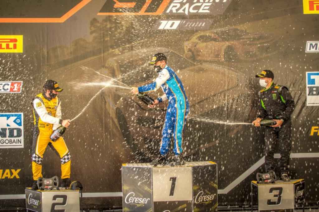 Velocidade no Asfalto Pedro Aizza conquista mais um pódio na segunda prova da GT Sprint Race Por Eni Alves Publicado em 29 de junho de 2021 Compartilhar no Facebook Compartilhar no Twitter Compartilhar no Google+ Compartilhar no Pinterest Apesar de iniciar a etapa de Interlagos com problemas de acerto no carro, o piloto mais jovem do campeonato terminou como um dos destaques da última corrida no Autódromo José Carlos Pace Pedro Aizza no pódio em Interlagos (Rodrigo Guimarães / Divulgação) Junho, 2021 – A terceira de nove etapas da GT Sprint Race na temporada, no autódromo de Interlagos, em São Paulo (SP), reservou fortes emoções para o piloto Pedro Aizza (Promax Bardahl/GM Motorsport/Acesso Peças). O paranaense de 16 anos, mais jovem do grid, superou dificuldades no treino e um toque que comprometeu seu desempenho na primeira prova, para ser um dos destaques da segunda e última corrida do fim de semana. “Começamos a etapa de forma conturbada, porque meu carro apresentava problemas nos primeiros treinos. Tentamos corrigir, mas, mesmo assim, continuamos com dificuldades”, comentou Pedro, que foi o 11º colocado entre 20 pilotos na etapa de classificação. “Estava bem na primeira corrida, mas logo na segunda volta levei um toque de um adversário. Meu carro rodou, em um ponto bem perigoso, acarretando um furo no meu pneu, o que me obrigou a parar nos boxes”, completou. Piloto acelera em Interlagos (Rodrigo Guimarães / Divulgação) Como o resultado da primeira corrida definiria a ordem do grid na última prova, Pedro Aizza largou em 18º lugar na disputa seguinte. Com ótimo desempenho, Aizza finalizou a segunda prova em sexto lugar no geral, realizando diversas ultrapassagens, e garantindo ainda a segunda posição na sua categoria, a PROAM, para subir outra vez no pódio nesta temporada. “Fiz a segunda corrida em ritmo muito forte, mesmo meu carro perdendo bastante para meus adversários nas retas, algo que eu realmente não conseguia entender o porquê. Ainda assim, fiz ótima prova, com várias disputas por posições. Em determinado momento, o vencedor da minha categoria me ultrapassou e também outros dois carros numa reta e foi embora. Não consegui mais alcançá-lo, mas, após largar em 18º e terminar em sexto e segundo na categoria, concluo que foi um resultado positivo”, finalizou. Com o resultado em Interlagos, Pedro Aizza é agora o quarto colocado de sua categoria, com 58 pontos. A liderança é de Francesco Franciosi, 70 pontos, seguido de Pedro Ferro, 69, e a dupla Pedro Costa/Antonio Junqueira, 65. Adalberto Baptista completa com o top 5, com 55 pontos. A próxima disputa da categoria será em Cascavel (PR), no dia 18 de julho. Calendário GT Sprint Race 2021: Etapa 1 – 02 de Maio – Velocitta – Mogi Guaçu/SP (Brasil/#GrandOpening) Etapa 2 – 23 de Maio – Goiânia/GO (#SpecialEdition) Etapa 3 – 27 de Junho – Interlagos/SP (Brasil/#SuperPole) Etapa 4 – 18 de Julho – Cascavel/PR (Brasil/#TripleX) Etapa 5 – 15 de Agosto – Tarumã/RS (#SpecialEdition) Etapa 6 – 05 de Setembro – Curitiba/PR (Brasil/#InverseRace) Etapa 7 – 03 de Outubro – Juiz de Fora/MG (#SpecialEdition) Etapa 8 – 31 de Outubro – Palmeira/PR (Brasil/#AirportTrack) Etapa 9 – 05 de Dezembro – Curitiba/PR (Brasil/#MatchPoint)