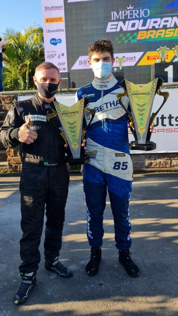 Compartilhar no Facebook Compartilhar no Twitter Compartilhar no Google+ Compartilhar no Pinterest Piloto catarinense novamente formou dupla com Aldoir Sette para subir no alto do pódio da divisão P3 Aldoir Sette e Bruno Smielevski O Velopark, em Nova Santa Rita (RS), é definitivamente um autódromo que ficará para sempre nas lembranças positivas do piloto Bruno Smielevski (Betha Sistemas). No último sábado, novamente em dupla com Aldoir Sette, o catarinense venceu pela terceira vez consecutiva na categoria P3 do Império Endurance Brasil no autódromo gaúcho. “Não vou dizer que é uma coincidência, pois as vitórias chegam através de muito trabalho e de muita dedicação de todos em uma equipe”, resume Bruno Smielevski. “Mas é um fato que certamente nos deixou muito felizes e que esperamos repetir em nossa próxima participação no Velopark”, aposta. Porém, a terceira vitória consecutiva de Bruno Smielevski e Aldoir Sette no Velopark teve um início preocupante, uma vez que a quebra da suspensão traseira de seu carro os impediu de finalizar a tomada de tempos. Desta forma, a dupla teria que largar na 23ª posição geral e último entre os carros da categoria P3. Bruno Smielevski (Betha Sistemas) ficou responsável pela pilotagem na primeira metade das quatro horas da prova, válida pela terceira etapa do campeonato. Com um ritmo forte, ele levou o carro à liderança da P3 antes de fechar a primeira hora de prova, mas furos de pneu o levaram aos boxes em duas oportunidades. O piloto catarinense voltou à pista e, ao fim de seu turno de pilotagem, entregou o carro para Aldoir Sette na liderança da P3, que manteve a posição. Quando faltavam dois minutos para o encerramento da prova, a quebra do semieixo provocou o abandono de Sette, mas não impediu que a dupla comemorasse mais uma vitória na categoria. “Tínhamos uma vantagem bastante razoável para o segundo colocado, mais do lhes seria possível descontar nestes dois minutos que faltavam”, lembra Bruno Smielevski. “Provas de longa duração são sempre bastante tensas, justamente por conta dos problemas que podem aparecer. Desta vez não foi diferente, mas todos trabalharam bem para minimizar a situação e, assim, pudemos comemorar mais uma vez”, finalizou. KG COM Assessoria de Comunicação – Erno Drehmer