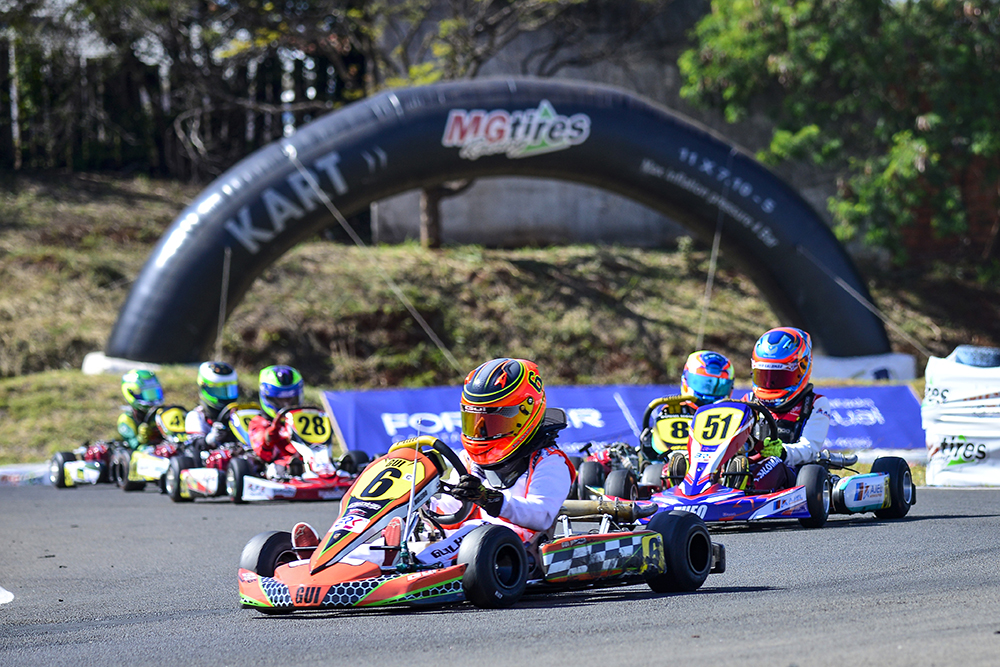 Compartilhar no Facebook Compartilhar no Twitter Compartilhar no Google+ Compartilhar no Pinterest As disputas foram intensas nas três corridas da competição, que encerrou a primeira fase no sábado (24) A 22ª edição da Copa Brasil de Kart, teve as disputas finais da primeira fase encerrada no último sábado (24), no kartódromo Luigi Borghesi, em Londrina-PR. A categoria Cadete, destinada a pilotos com idade entre 9 a 11 anos, teve 31 inscritos e o representante de Rolândia-PR, Guilherme Moleiro, como vice-campeão desta, que é a segunda competição nacional mais importante da modalidade. Moleiro saiu do 6º lugar do grid na corrida final e antes da segunda volta passou a revezar na liderança com o goiano, Theo Salomão. A disputa entre os dois pilotos pelo título máximo da categoria foi intensa durante toda a corrida. Faltando duas voltas para o final quatro concorrentes chegaram nos líderes e a prova ficou ainda mais acirrada. Moleiro conseguiu defender a 2ª posição e cruzou a linha de chegada à 0s277 de Theo Salomão. Aos 10 anos e com apenas um ano e meio de kart, Guilherme Moleiro é vice-campeão Cadete da Copa Brasil “O Guilherme está evoluindo muito. Fez o segundo melhor tempo na tomada, um segundo e um sexto lugares nas baterias classificatórias, e brigou muito na final. Temos ainda alguns pontos para corrigir e vamos trabalhar para isso. A categoria Cadete tem muitos pilotos bons e conquistar os títulos de vice-campeão brasileiro, vice-campeão da Copa Brasil e campeão Paranaense, com apenas um ano e meio de kart nos deixa muito satisfeitos”, comentou Alex Grigoletto, coach e chefe da equipe de Guilherme Moleiro. Texto e Fotos: Eni Alves