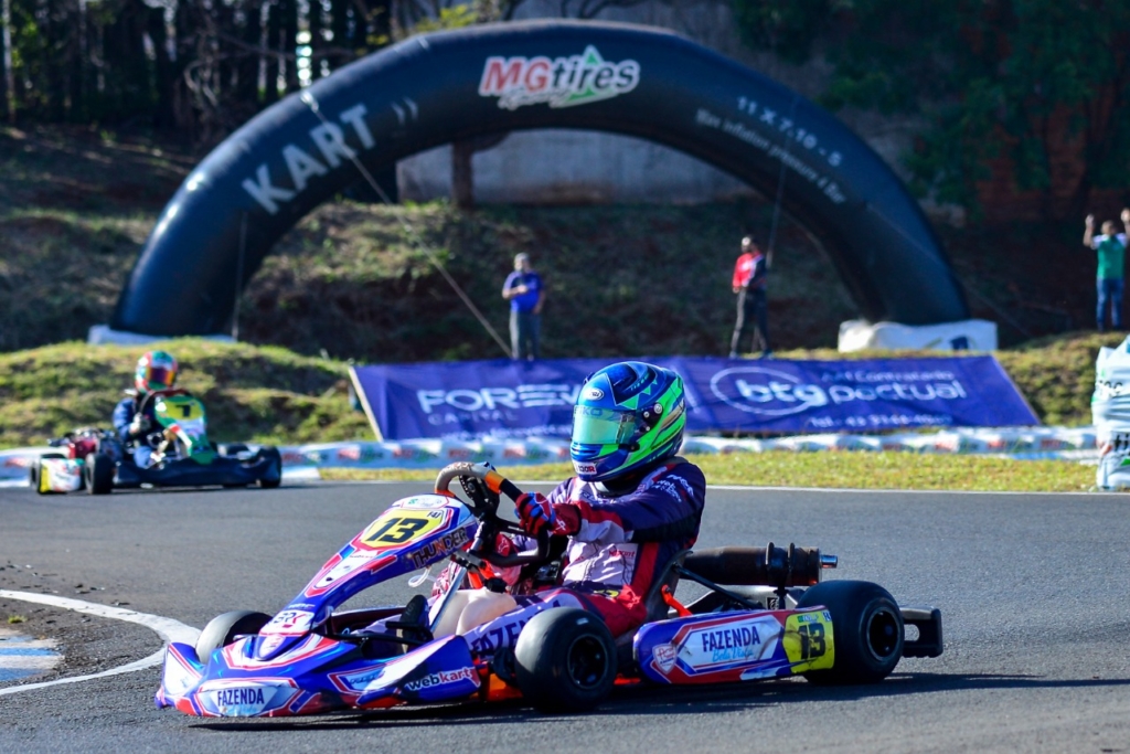 Compartilhar no Facebook Compartilhar no Twitter Compartilhar no Google+ Compartilhar no Pinterest Foi uma semana intensa de treinos no Kartódromo Luigi Borghesi em Londrina no Paraná. Entre chuva, frio e sol, o piloto Enzo Orestes (Leite Fazenda Bela Vista, WEBKART, RBC Motorsport, GOT-Grupo Office Tech, Thunder e Sparco) buscou acertar o seu chassi Thunder para a 22ª edição da Copa Brasil de Kart. Após tomada de tempo e duas provas classificatórias disputadíssimas da categoria F4 Junior, Enzo se classificou na 8ª posição. Chegou o momento da grande final que iria contar com 22 voltas no técnico kartódromo paranaense. Na largada, Enzo conseguiu subir uma posição, mas as disputas eram intensas e alguns toques entre rodas inevitáveis. Mesmo perdendo algumas posições, o kart 13 era rápido e Enzo iniciou uma tocada mais agressiva em uma sequência de voltas mais rápidas da prova. “Eu estava rápido do meio da corrida pra frente e não podia desistir e acho que fui premiado por isso”, declarou Enzo. Uma corrida nem sempre termina efetivamente na bandeirada final e sim após a verificação dos comissários técnicos. Com a confusão na chegada entre dois adversários, que acabaram punidos, um por falta de peso e outro por irregularidades no painel frontal, Enzo finalizou na 3ª colocação na 22ª edição da Copa Brasil de Kart. “Estou feliz e só posso agradecer o Adriano, meu chefe de equipe e o meu mecânico Da Cruz pelo apoio e dedicação. Foi minha primeira competição em âmbito nacional e sei que ainda tenho muito o que aprender”, destacou o jovem piloto de Minas Gerais. O piloto Enzo Orestes agora volta as suas atenções aos regionais Mineiro e Paulista sempre contando com a preparação da AS Racing Kart, apoios de Leite Fazenda Bela Vista, WEBKART, RBC Motorsport, GOT-Grupo Office Tech, Thunder e Sparco. Siga Enzo Orestes nas redes sociais em: www.instagram.com/enzoorestes_13 www.facebook.com/enzo.orestes Jornalista responsável: Alex Cronhal Imagens: Eni Alves