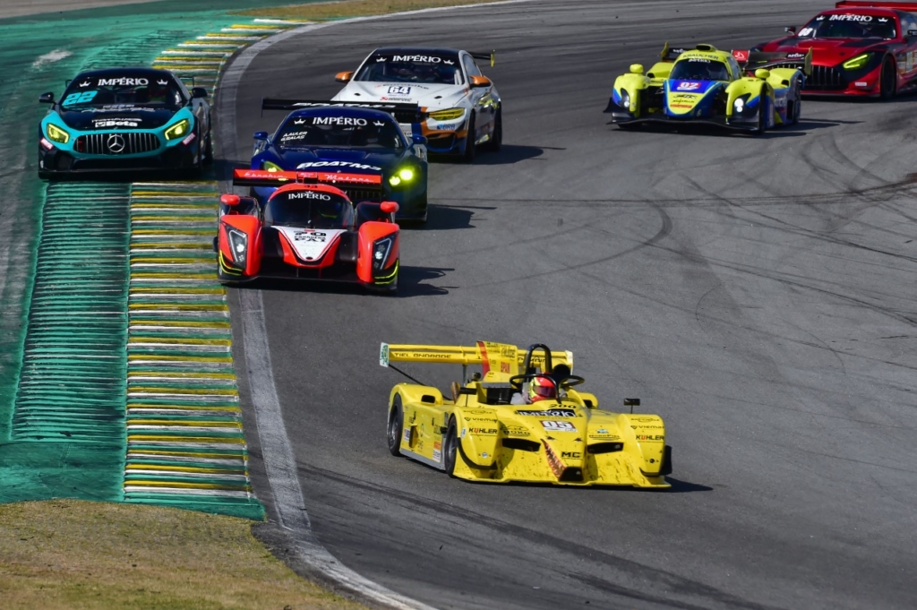 Velocidade no Asfalto João Pedro Maia e Tiel Andrade superam problemas e mantém liderança no Império Endurance Brasil Por Eni Alves Publicado em 10 de agosto de 2021 Compartilhar no Facebook Compartilhar no Twitter Compartilhar no Google+ Compartilhar no Pinterest Dupla competiu na 4ª etapa, em Interlagos, e terminou no pódio mesmo com problemas elétricos no protótipo MC Tubarão João Pedro Maia (Rodrigo Ruiz) Na última sexta-feira (6), um dia atípico para a disputa de competições automobilísticas, o Autódromo José Carlos Pace, em Interlagos, na zona sul da capital paulista, recebeu a 4ª etapa do Império Endurance Brasil, o Campeonato Brasileiro de Endurance. A rodada teve a participação do jovem piloto João Pedro Maia (Golden Puro Malte | BPAM | Multipet | BMG), que compete em dupla com o experiente Tiel Andrade. João Pedro Maia (Rodrigo Ruiz) Competindo com o protótipo MC Tubarão, construído e desenvolvido pela equipe MC Tubarão, Maia e Andrade enfrentaram dificuldades técnicas nesta etapa, o que não impediu que a dupla se mantivesse na liderança da divisão P3 após a prova, que teve quatro horas de duração. “Um problema elétrico nos tirou de boa parte da prova e não nos permitiu que lutássemos pela vitória, que logicamente era nosso plano inicial”, lamentou João Pedro Maia, de 16 anos, o mais jovem piloto no grid do Império Endurance Brasil. “Conseguimos superar em parte esse problema, terminamos em quinto e subimos no pódio, resultado que nos manteve na liderança do campeonato”, destaca o piloto. A quinta etapa do Império Endurance Brasil será disputada no dia 4 de setembro, em Santa Cruz do Sul (RS). KG COM Assessoria de Comunicação – Erno Drehmer