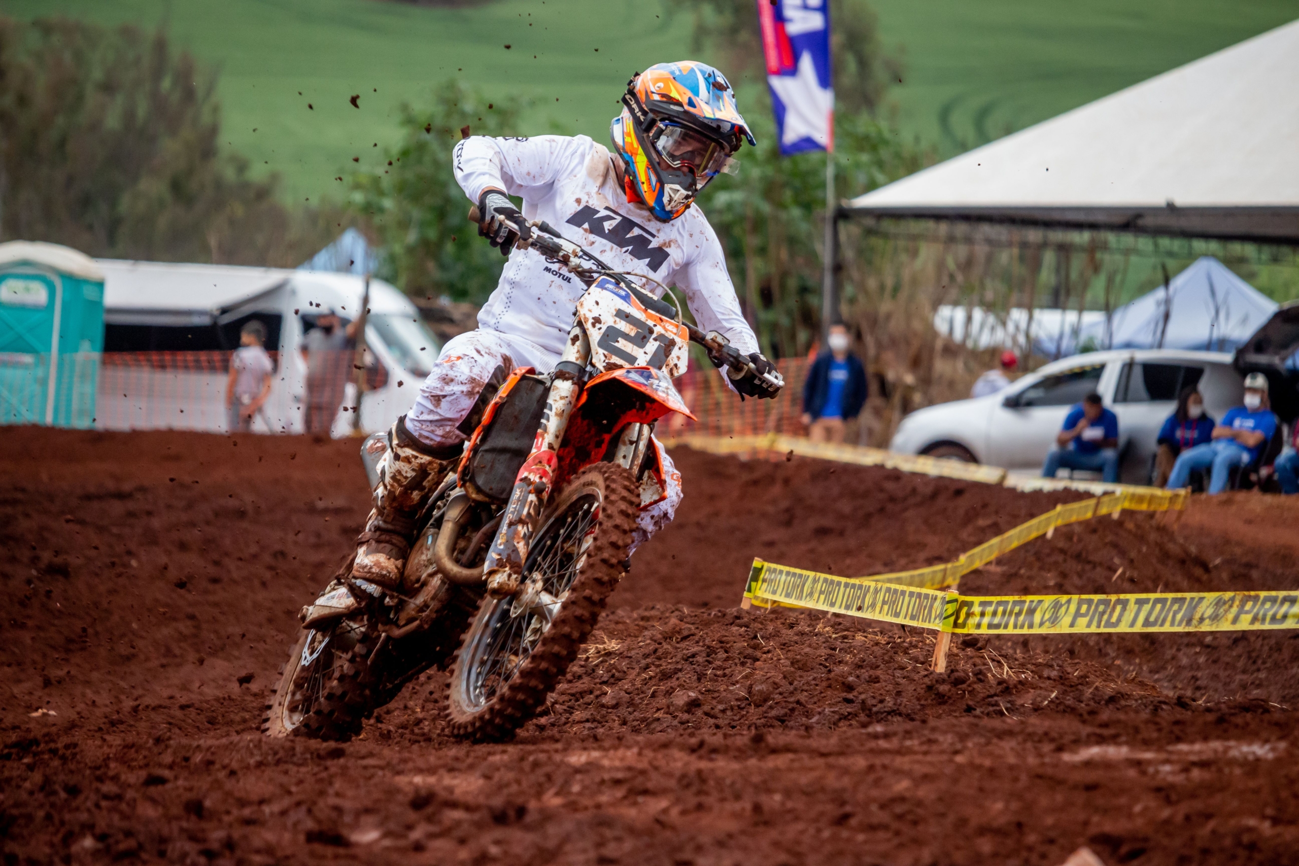 Motovelocidade Pro Tork soma bons resultados na abertura do Brasileiro de Motocross 2021 Por Eni Alves Publicado em 30 de agosto de 2021 Compartilhar no Facebook Compartilhar no Twitter Compartilhar no Google+ Compartilhar no Pinterest Pro Tork soma bons resultados na abertura do Brasileiro de Motocross 2021 O Campeonato Brasileiro de Motocross realizou a abertura da temporada 2021 com rodada dupla junto a quarta etapa do Paranaense, entre sexta-feira (27) e domingo (29), no município de Faxinal (PR). A Pro Tork marcou presença e conquistou alguns bons resultados com seus pilotos. Na primeira etapa do nacional, os destaques foram Willian Guimarães e Kevyn de Pinho, que venceram as categorias MX4 e 65cc, respectivamente. Willian ainda foi o quinto colocado na MX3, classe na qual o colega Rodrigo Taborda alcançou a terceira colocação. Já na segunda etapa, quem mandou ver foi Fredy Spagnol na disputadíssima MX2. Na primeira bateria ele alcançou a segunda posição, enquanto que na corrida seguinte terminou em quarto. Na somatória, garantiu o segundo lugar no pódio para a Pro Tork KTM Racing Team. E pelo estadual, Willian venceu a MX4, Taborda ganhou a MX3 Nacional e ainda foi o segundo na MX3 Especial e o terceiro na Força Livre Nacional, Fabio Brito conseguiu o segundo na MX3 Nacional e o quinto na Força Livre Nacional, e Alencar Krefta terminou em terceiro na MX5. De volta as suas cidades, eles retomam o treinamento para as próximas etapas, focados na busca pelos títulos. O Brasileiro está programado para reunir os competidores no início de outubro, em Fagundes Varela (RS). E o Paranaense no fim do mesmo mês, em Paranaguá. Os pilotos Pro Tork têm o apoio da NOS Energy Drink e Sportbay. Jornalista Responsável: Daniela Burgonovo