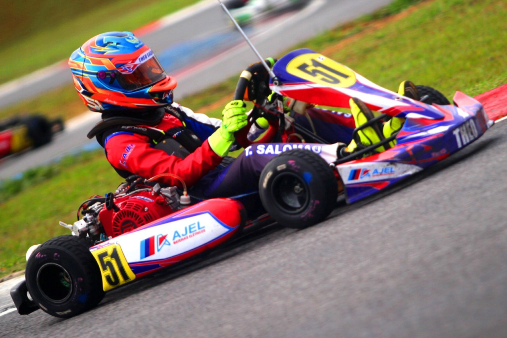 Compartilhar no Facebook Compartilhar no Twitter Compartilhar no Google+ Compartilhar no Pinterest Piloto goiano lidera na Cadete, categoria em que é o atual campeão brasileiro e da Copa Brasil Theo Salomão (Cris Reis) Líder da Copa São Paulo Light de Kart na categoria Cadete, o piloto Theo Salomão (AJEL Materiais Elétricos) disputou no último sábado (11) a 7ª etapa da competição, realizada no tradicional Kartódromo de Interlagos, na capital paulista. Animado por um desempenho que lhe rendeu quatro vitórias na semana anterior, quando competiu pela categoria Mini 2T no Circuito Paulista no Kartódromo Speed Park, em Birigui (SP), Salomão fez bons treinos, quando, junto com sua equipe, tratou de ajustar seu equipamento para a tomada de tempos e as duas provas da rodada. Na tomada, disputada com pista molhada, Theo Salomão foi o terceiro colocado, mas com um tempo de volta bastante acima do esperado. Novamente com pista molhada, o piloto goiano venceu a primeira bateria, que teve a participação de 27 pilotos. Na segunda, já com pista seca, ele precisou trabalhar duro para finalizar em terceiro. “Na primeira bateria a pista molhada ‘escondeu’ a deficiência de rendimento do motor que o Theo recebeu no sorteio. Os pneus, que nestas condições acabam sendo diferentes uns dos outros, também mascaram um pouco o desempenho do piloto”, destacou Renato Russo, da Russo Racing, equipe de Theo. “Desconfiávamos, mas só vimos que o motor não tinha um bom rendimento na segunda corrida, quando a pista estava seca e o Theo fez o que pôde, mas terminou apenas em 8º”, completou. A soma dos pontos obtidos nas duas provas colocou Theo Salomão (AJEL Materiais Elétricos) na terceira posição no pódio da Cadete, resultado que o manteve na liderança do campeonato, agora com uma vantagem menor. “Na próxima etapa teremos que trabalhar bastante para nos recuperarmos, mas já sabemos que a luta pelo título será intensa. A Cadete, como sempre, mostra grandes talentos e esperamos que o Theo repita o último Brasileiro e a última Copa Brasil e seja mais uma vez o campeão”, finalizou Renato Russo. KG COM Assessoria de Comunicação – Erno Drehmer