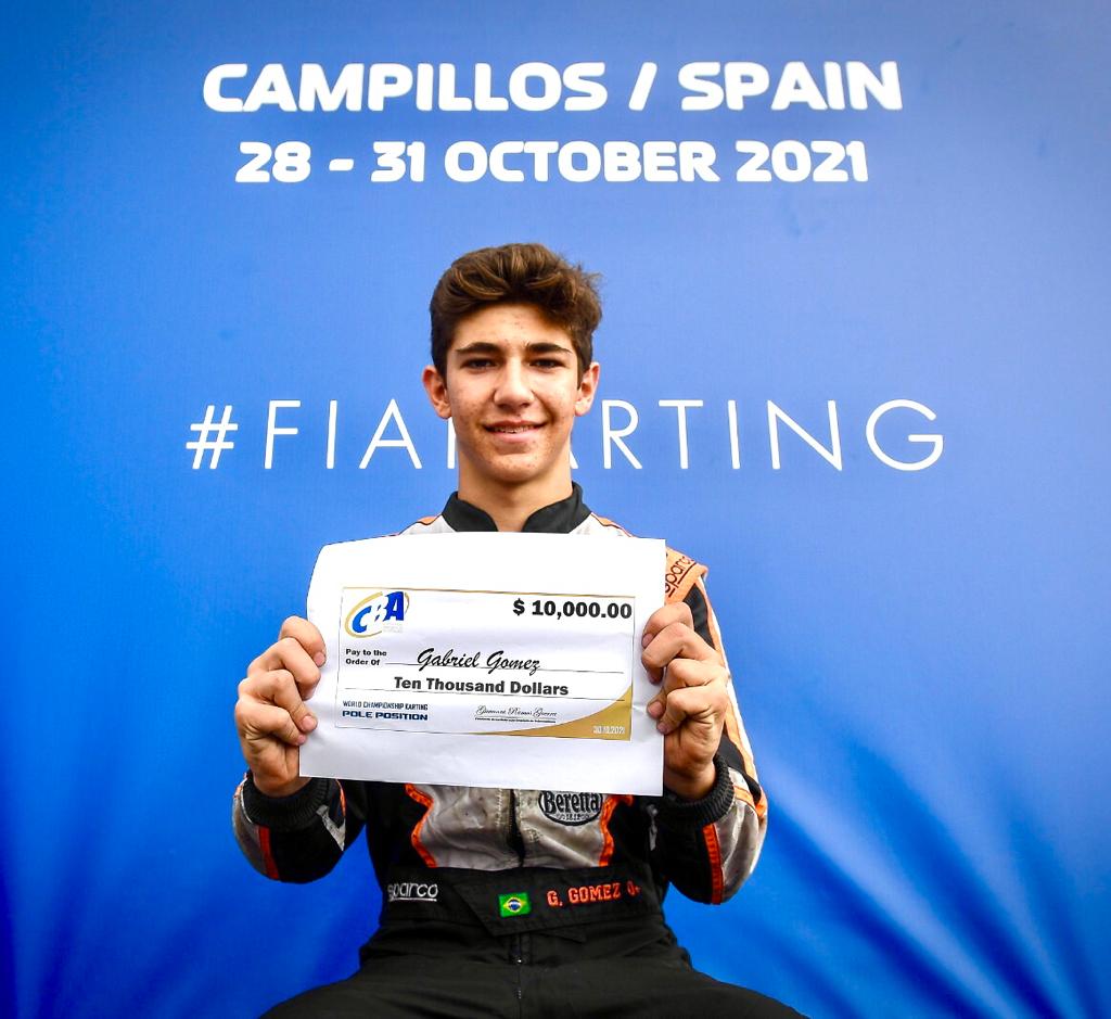 Compartilhar no Facebook Compartilhar no Twitter Compartilhar no Google+ Compartilhar no Pinterest O piloto catarinense Gabriel Gomez ainda festejava a pole position que acabava de conquistar na sexta-feira (29), em Campillos, Espanha, quando recebeu um telefonema do presidente da Confederação Brasileira de Automobilismo, Giovanni Guerra. Além dos cumprimentos pelo feito nas disputadas do Mundial de Kart FIA na categoria OK, o kartista de 15 anos foi informado que acabava de receber, como incentivo à sua carreira, o valor em dinheiro equivalente a US$ 10 mil. Gabriel Gomez recebe incentivo por pole no Mundial de Kart Embora o dinheiro esteja sendo repassado para o competidor pela CBA, o incentivo está sendo ofertado por um grande apoiador do kartismo brasileiro, que preferiu manter sua identidade no anonimato. “Diga a ele que vou dar um prêmio de US$ 10 mil pela pole. Sei que não paga as despesas, mas é um reconhecimento aos meninos desse esporte”, disse o incentivador. “Eu fico muito honrado de ser o portador dessa homenagem, que é um incentivo a mais da CBA e de nossos parceiros aos jovens que nos honram com atuações maravilhosas, como essa do Gabriel. Essa gestão é voltada para o piloto e reafirmamos a cada dia esse compromisso”, disse Giovanni Guerra. Comunicação CBA