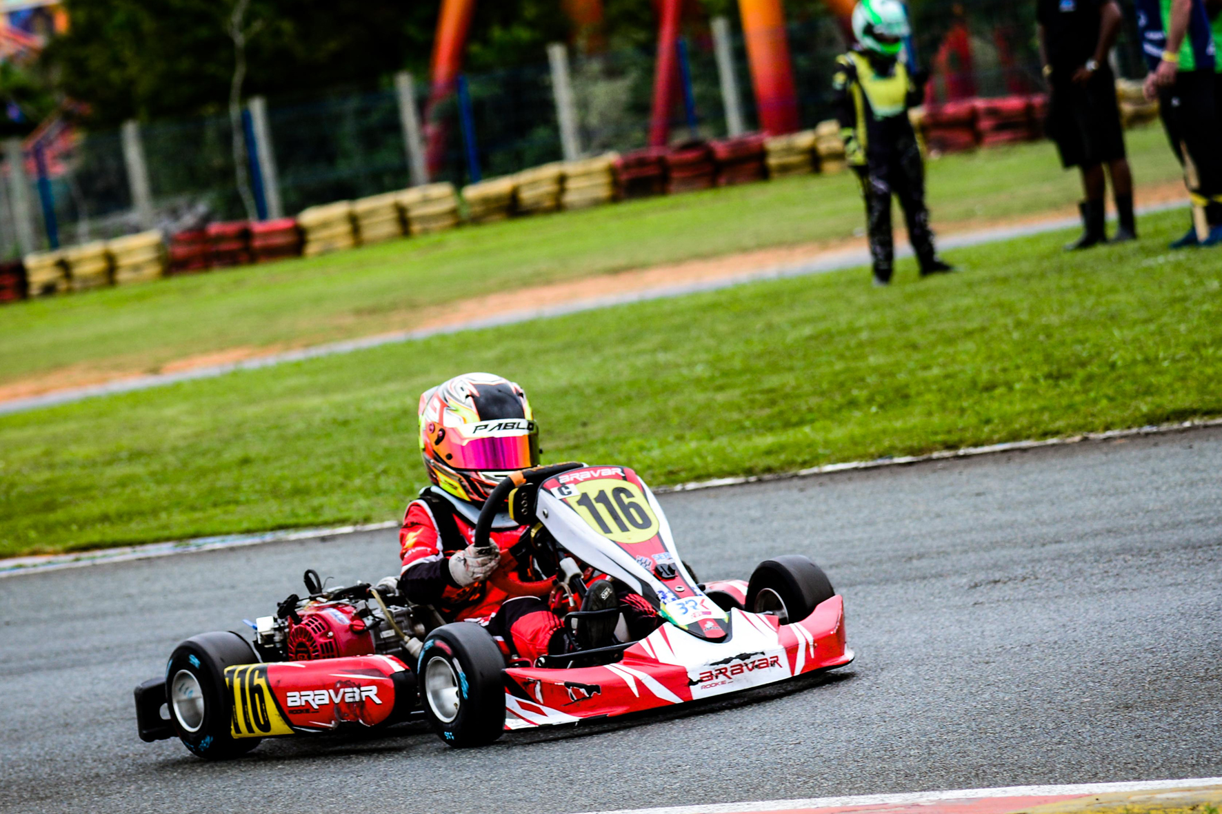 Compartilhar no Facebook Compartilhar no Twitter Compartilhar no Google+ Compartilhar no Pinterest Japonês Voador de Goiás’ participará do Open do Brasileiro de Kart neste fim de semana Pablo Hattori estará novamente na pista do Beto Barrero neste fim de semana (Foto: Eni Alves) Continuando com a sua preparação para a disputa do Campeonato Brasileiro de Kart, que será realizado em dezembro, em Penha (SC), o pequeno goiano Pablo Hattori (Sprayercom/ONS Motorsports) subiu no pódio na quarta posição participando como convidado da última etapa do Kart Pro Endurance Championship, prova com uma hora de duração com kart Cadete no Kartódromo Beto Carrero no Feriado (15/11). “Foi mais uma oportunidade de andar no Beto Carrero e medir força com os meus principais adversários. Agora começamos nossa preparação para o Open do Brasileiro, fazendo ajustes do meu chassi junto com os técnicos da fábrica Bravar”, comentou o pilotinho de apenas 10 anos de idade. “Quero agradecer o trabalho e experiência do preparador Wellington de Castro, da equipe WCS Racing, que veio de Goiânia pra me ajudar”, completou o ‘Japonês Voador de Goiás’. O Open do Brasileiro de Kart será realizado nesta sexta-feira (19/11) e sábado (20/11), no Kartódromo Beto Carrero, no litoral de Santa Catarina. A tomada de tempos será as 10h10 de sexta, com a primeira bateria da Cadete logo em seguida. A segunda bateria será no sábado, por volta das 8h20. Os seis primeiros do Kart Pro Endurance Championship que subiram no pódio da Cadete foram: 1) Gustavo Bonk, 1h03min10s902; 2) Christian Mosimann, a 0s164; 3) Paulo Willeman Filho, a 13s215; 4) Pablo Hattori, a 15s098; 5) Gabriel Daum, a 37s304; 6) Augusto Vernieri, a42s366.