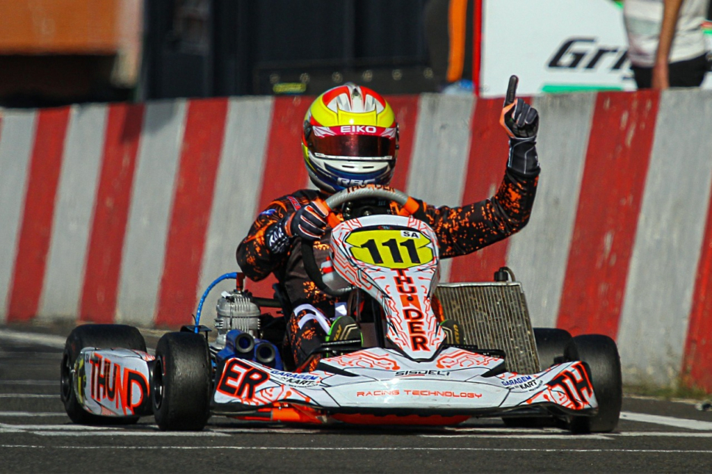 Compartilhar no Facebook Compartilhar no Twitter Compartilhar no Google+ Compartilhar no Pinterest Rodrigo Soares levou a fabricante de chassis à vitória em sua primeira competição com a marca Rodrigo Soares (Jackson de Souza) A Thunder Technology foi destaque entre as fabricantes de chassis de kart mais uma vez no último sábado (13), no Kartódromo Arena Itu, no interior paulista. Promovendo a estreia de um novo piloto de fábrica, a empresa comemorou a conquista de poles, vitórias e títulos na rodada dupla – 9ª e 10ª etapas – que marcou o encerramento da Copa São Paulo Light de Kart. Representada na Sênior A pelos novos proprietários, os pilotos e empresários Alain Sisdeli e Dado Salau, a Thunder teve na pista também Rodrigo Soares, que na semana passada havia sido anunciado como novo piloto oficial da fabricante. E a estreia de “Digão” Soares aconteceu da melhor maneira possível, com vitória na 10ª etapa e com um segundo lugar na 9ª etapa. Alain Sisdeli marcou a pole position, enquanto Gustavo Favoretto vencia as duas etapas pela categoria Sênior B. Na F4 a Thunder Technology dominou as duas etapas e fez uma dobradinha em ambas, com Leonardo Reis – o pole position – em primeiro e Rafael Reis em segundo. Na classificação final do campeonato, título para a Thunder Technology em nova dobradinha, agora com os nomes invertidos: Rafael Reis foi o campeão e Leonardo Reis o vice. A Thunder Technology foi representada também por Thiago Miranda (F4 Júnior), João Henrique Barbosa (Júnior Menor), Eduardo Perez e João Pedro Correa (Novatos) e Ricardo Castro e Valdemiro Oliveira (F4 Super Sênior). Veja os resultados da Thunder Technology em Itu: SÊNIOR A Rodrigo Soares – 2º (9ª etapa) / 1º (10ª etapa) Alain Sisdeli – 7º (9ª etapa) / 6º (10ª etapa) – pole position Dado Salau – 5º (9ª etapa) / 4º (10ª etapa) SÊNIOR B Gustavo Favoretto – 1º (9ª etapa) / 1º (10ª etapa) F4 Leonardo Reis – 1º (9ª etapa) / 1º (10ª etapa) – pole e vice-campeão Rafael Reis – 2º (9ª etapa) / 2º (10ª etapa) – campeão F4 JÚNIOR Thiago Miranda – 5º (9ª etapa) / 5º (10ª etapa) JÚNIOR MENOR João Henrique Barbosa – 6º (9ª etapa) / 3º (10ª etapa) NOVATOS Eduardo Perez – 5º (9ª etapa) / 5º (10ª etapa) João Pedro Correa – 4º (9ª etapa) / 3º (10ª etapa) F4 SUPER SÊNIOR Ricardo Castro – 4º (9ª etapa) / 3º (10ª etapa) Valdemiro Oliveira – 7º (9ª etapa) / 6º (10ª etapa) KG COM Assessoria de Comunicação – Erno Drehmer