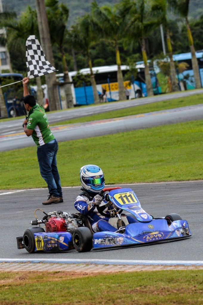 Passando para a bandeirada quadriculada, a cronometragem já mostrava o número 111 na P1 conclamando Heitor Vasconcelos como o primeiro Campeão do Open do Campeonato Brasileiro de Kart na Categoria F4 Júnior, já que a mesma foi recentemente homologada pela CBA – Confederação Brasileiro de Automobilismo – sendo o primeiro ano em competição de âmbito nacional.