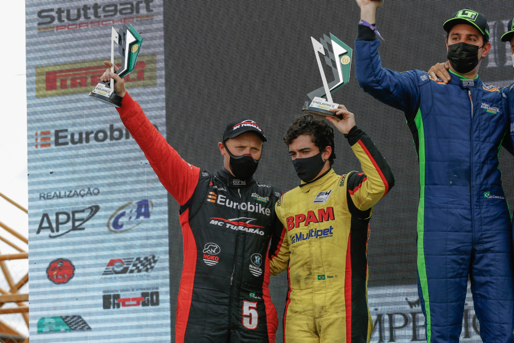 Velocidade no Asfalto João Pedro Maia e Tiel Andrade mantêm liderança no Império Endurance Brasil após etapa em Santa Cruz do Sul Por Eni Alves Publicado em 30 de novembro de 2021 Compartilhar no Facebook Compartilhar no Twitter Compartilhar no Google+ Compartilhar no Pinterest Dupla disputa o título da divisão P3 em Goiânia na última etapa, no dia 18 de dezembro Tiel Andrade e João Pedro Maia (Rodrigo Ruiz) A dupla João Pedro Maia (Golden Puro Malte | BPAM | Multipet | BMG) e Tiel Andrade manteve a liderança da categoria P3 no Império Endurance Brasil, campeonato que reúne os carros mais rápidos do Brasil e que teve sua 7ª etapa disputada no último sábado (27) em Santa Cruz do Sul (RS). O final de semana da dupla que compete com o protótipo MC Tubarão nas provas de longa duração do Império Endurance Brasil começou de forma muito positiva. Repetindo a boa performance alcançada nos treinos, Maia e Andrade classificaram-se com a segunda posição no grid de largada da P3 e em 18º no grid geral, que contava com 29 carros inscritos. Entretanto, os primeiros instantes das 4 Horas de Santa Cruz do Sul não saíram como planejado, uma vez que o MC Tubarão teve problemas técnicos que fizeram com que a equipe perdesse cerca de 35 minutos nos boxes para reparos. Na volta à pista, em último, João Pedro Maia (Golden Puro Malte | BPAM | Multipet | BMG) e Tiel Andrade imprimiram um ritmo bastante forte em busca da recuperação e finalizaram em 4º entre os carros da P3, apenas três voltas atrás do terceiro colocado. O 4º lugar no pódio da P3 manteve João Pedro Maia e Tiel Andrade na liderança da P3 no Império Endurance Brasil quando falta apenas uma etapa para a finalização do campeonato, no dia 18 de dezembro, em Goiânia (GO). “Fomos rápidos nos treinos e na tomada de tempos, mas esse problema no início da prova atrapalhou nossas chances de lutar pela vitória. Faz parte”, disse João Pedro Maia, 16 anos, o mais jovem piloto no grid de largada do Império Endurance Brasil. “Terminamos em quarto e, como o segundo colocado no campeonato foi 2º, mantivemos a liderança, agora com 45 pontos de vantagem. Tudo será decidido em Goiânia”, finalizou Maia, campeão sul-americano e sul-brasileiro de Kart e campeão paulista e da Copa ECPA de Fórmula Vee. KG COM Assessoria de Comunicação – Erno Drehmer
