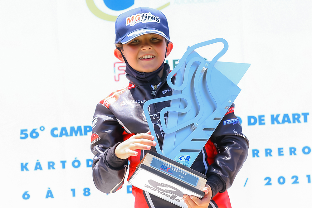 Compartilhar no Facebook Compartilhar no Twitter Compartilhar no Google+ Compartilhar no Pinterest A categoria reuniu 70 competidores em batalhas incríveis e uma corrida final emocionante no Campeonato Brasileiro Com mais de 530 inscrições, a 56ª edição do Campeonato Brasileiro de Kart pode ser a maior competição de kart do mundo, informação que deverá ser confirmada pela FIA (Federação Internacional de Automobilismo) nos próximos dias. A primeira fase, encerrada no último sábado (11), no kartódromo Beto Carrero, em Penha, litoral catarinense, teve 70 pilotos na categoria Cadete e batalhas incríveis que consagraram campeão o brusquense Christian Mosimann. Christian Mosimann conquistou os títulos de Campeão Catarinense, em janeiro, e campeão Brasileiro no último sábado, no Kartódromo Beto Carrero O resultado da disputa de três baterias classificou 36 concorrentes para a prova decisiva, em que Mosimann largou da 12ª posição do grid. Rápido e constante, o piloto de 11 anos alcançou os quatro primeiros colocados na sétima volta, e passou a acompanhar de perto a briga pela liderança. Faltando poucos metros para a bandeirada final, Mosimann encontrou o momento certo para fazer as ultrapassagens, garantir a vitória e o primeiro título de campeão brasileiro de kart. “Foi um ano intenso de treinamento e muito trabalho para o Christian e o time. Iniciamos a temporada 2021 com a conquista do título de campeão Catarinense, encerramos com chave de ouro com o título brasileiro e o Christian se despede da Cadete em grande estilo. Em nome dele eu agradeço toda a dedicação da equipe Pinheiro Competições, a confiança dos patrocinadores (Novo Nordisk, Unifique, Bravar, Stilo, RBC, Starling Design, Unipro) e a torcida dos amigos e familiares. Estamos muito felizes e orgulhosos”, declarou a mãe, Flávia Mosimann. Embaixador do Esporte pela Sociedade Brasileira de Diabetes, Christian Mosimann, diagnosticado com o Tipo 1 da doença, passará a integrar a categoria Júnior Menor nos principais campeonatos da modalidade, em 2022. Saiba mais sobre o piloto na rede social Instagram @cmosimann277. Texto: Eni Alves Fotos: Gilmar Rose