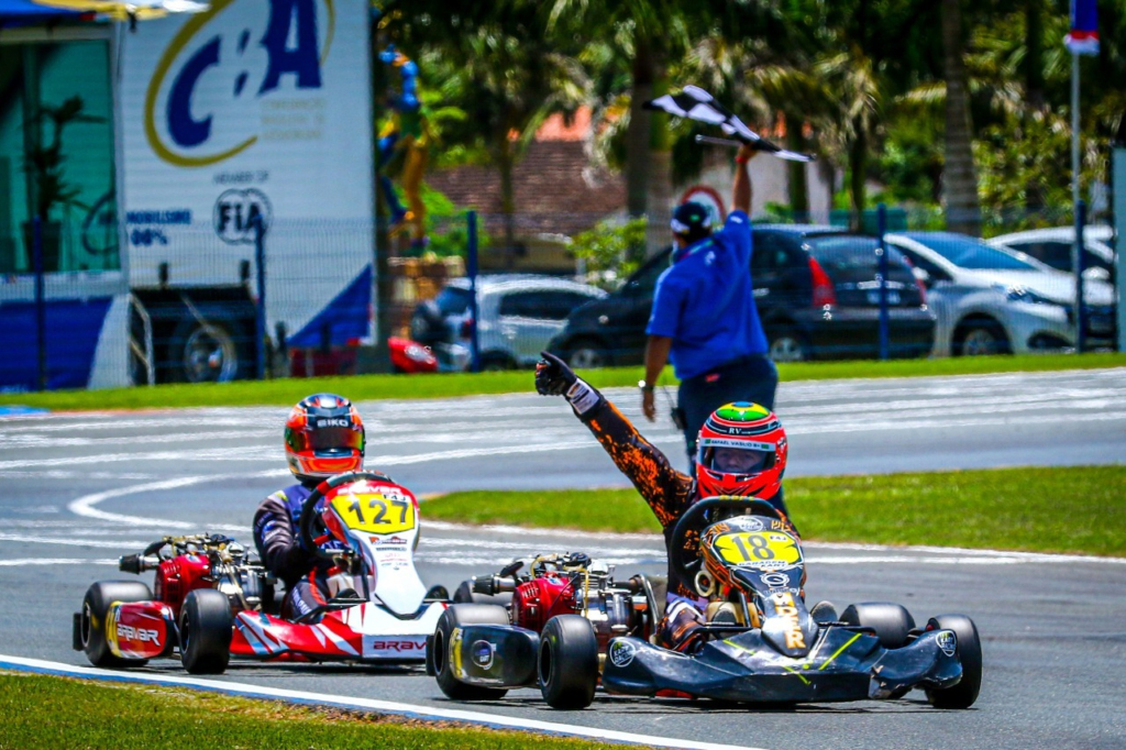 Compartilhar no Facebook Compartilhar no Twitter Compartilhar no Google+ Compartilhar no Pinterest Goiano competirá na Júnior Menor na próxima temporada Rafael Vasco comemora o título na F4 Júnior (Gilmar Rose) Destaque no kartismo nacional, o goiano Theo Salomão (AJEL Materiais Elétricos) despediu-se em grande estilo da Cadete na última semana. No Kartódromo Beto Carrero, em Penha (SC), ele foi um dos grandes nomes da categoria durante a disputa da primeira fase do 56º Campeonato Brasileiro de Kart. Sempre posicionado entre os primeiros colocados nos treinos, o campeão brasileiro de 2020 da categoria foi o autor da pole position na tomada de tempos, que reuniu 70 pilotos, e garantiu o direito de largar na frente nas três provas classificatórias que disputou. Depois, uma vitória e dois segundos lugares garantiram ao piloto goiano outra pole position, desta vez na Final, cujo vencedor seria o campeão brasileiro da temporada. Theo Salomão (AJEL Materiais Elétricos), que em 2021 venceu a Copa Brasil pela categoria Cadete, liderou praticamente toda a prova decisiva, mas na última volta, quando já se preparava para comemorar mais uma conquista nacional, acabou tocado por um concorrente e rodou. O piloto da equipe Russo Racing, comandada pelo multicampeão Renato Russo, voltou à disputa e recebeu a bandeirada final em um distante e injusto 11º lugar, resultado que não refletiu a bela campanha de Theo Salomão ao longo do 56º Campeonato Brasileiro de Kart. “O Theo teve atuações brilhantes em todas as provas que disputou neste Brasileiro, mesmo sendo um piloto com compleição física de um Júnior Menor, o que, de certa maneira, o atrapalhou um pouco”, destaca Renato Russo, referindo-se a categoria que Theo Salomão disputará em 2022. “Ao longo de sua carreira na Cadete e também na Mirim, ele sempre se destacou e conquistou títulos e vitórias. Sua despedida da Cadete foi sensacional e agora vamos esperar pelo próximo ano, quando certamente ele repetirá suas belas atuações na nova categoria”, finalizou. O Campeonato Brasileiro de Kart prossegue nesta terça-feira, quando o Kartódromo Beto Carrero abrirá sua pista para as categorias da segunda fase da competição. KG COM Assessoria de Comunicação – Erno Drehmer
