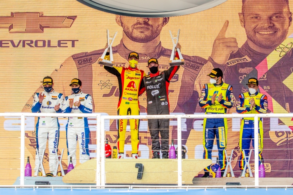 Velocidade no Asfalto Casagrande e Robe vencem a Corrida de Duplas em Interlagos Por Eni Alves Publicado em 14 de fevereiro de 2022 Compartilhar no Facebook Compartilhar no Twitter Compartilhar no Google+ Compartilhar no Pinterest Dupla da equipe AMattheis Vogel dominou o final de semana com pole e vitória em Interlagos Casagrande e Robe no primeiro lugar do pódio(Rodrigo Guimarães/ Paulista Digital) Campeão da Stock Car em 2021, Gabriel Casagrande começou a temporada 2022 com vitória em Interlagos. Correndo ao lado de Gabriel Robe na Corrida de Duplas, Casagrande largou na pole e venceu a corrida 1. Com a inversão do top-10 para a prova dos convidados, Robe também mostrou desempenho ao terminar em quarto lugar a prova 2. Como o pódio da etapa era formado pela soma do resultado das duas provas, Casagrande e Robe levaram a melhor na geral, garantindo assim 41 pontos neste domingo, 9 pontos a mais que a dupla segunda colocada. “Estou muito feliz, principalmente pelo Robe, de conquistarmos esse resultado juntos. Ele é um cara que merecia muito essa chance e representou muito bem nosso time. Confiei plenamente, e acho que a escolha foi muito acertada. Conseguimos o que viemos para fazer: pole position, vitória, volta mais rápida, e muitos pontos para o campeonato. Parabéns a todos da equipe AMattheis Vogel pelo carro que nos deram para pilotar”, diz Casagrande. Campeão da Stock Series em 2017 e vice na temporada passada, Robe agradeceu a Casagrande pelo convite e comemorou bastante a conquista da vitória. “Foi uma experiência incrível. Não tenho palavras para agradecer ao Gabriel pela oportunidade. Logo no primeiro treino, me adaptei rapidamente ao carro. O pessoal da equipe de engenharia fez um trabalho incrível no pré-corrida comigo. Cheguei em Interlagos pronto para fazer meu trabalho. Fui quarto no primeiro treino, liderei o segundo, então, mostrei velocidade desde o início das atividades. Na corrida, larguei em décimo, não fiz uma largada tão boa, mas estou muito feliz com o ritmo que imprimi na corrida. Terminar em quarto depois de sair de décimo foi positivo, e dar a vitória geral é o que importa. Dei bons pontos para o Gabriel, para ele brigar pelo campeonato desse ano. Casagrande também projetou a expectativa para o restante da temporada. “Claro que é o início do campeonato, mas foi um importante primeiro passo. Esse ano vai ser duro, como foi o ano passado. Certamente todos vão trabalhar para evoluir, não vamos parar no tempo. Temos 11 etapas pela frente, muita coisa para acontecer, mas vamos trilhando o caminho para brigar na frente e brigar pelo bicampeonato”, disse o piloto paranaense. A próxima etapa da Stock Car será realizada no Autódromo Ayrton Senna, em Goiânia (GO), no dia 20 de março. Casagrande e Robe em Interlagos(Rodrigo Guimarães/ Paulista Digital) Corrida 1 1 Gabriel Casagrande (AMattheis Vogel Motorsport/Cruze), 19 voltas em 38min45s 2 Thiago Camilo (Ipiranga Racing/Corolla) a 2.849 3 Daniel Serra (Eurofarma-RC/Cruze) a 4.073 4 Marcos Gomes (Cavaleiro Sports/Cruze) a 4.407 5 Ricardo Zonta (RCM Motorsport/Corolla) a 9.561 6 Gaetano di Mauro (KTF Sports/Cruze) a 10.802 7 Julio Campos (Lubrax Podium Stock Car Team/Cruze) a 11.704 8 Galid Osman (Shell V-Power/Cruze) a 12.379 9 Rafael Suzuki (Full Time Bassani/Corolla) a 13.196 10 Allam Khodair (Blau Motorsport/Cruze) a 15.056 11 Átila Abreu (Shell V-Power/Cruze) a 20.674 12 Cesar Ramos (Ipiranga Racing/Corolla) a 21.022 13 Pedro Cardoso (Crown II Racing/Cruze) a 21.170 14 Felipe Baptista (KTF Racing/Cruze) a 28.496 15 Guilherme Salas (KTF Racing/Cruze) a 30.469 16 Felipe Lapenna (Hot Car/Cruze) a 31.254 17 Nelson Piquet Jr (Motul TMG Racing/Corolla) a 34.956 18 Rodrigo Baptista (Crown Racing/Cruze) a 36.181 19 Gustavo Frigotto (RKL Competições/Cruze) a 43.044 20 Tony Kanaan (Full Time Bassani/Corolla) a 46.040 21 Bruno Baptista (RCM Motorsport/Corolla) a 56.962 22 Gianluca Petecof (Full Time Sports/Corolla) a 1:01.426 23 Cacá Bueno (Crown Racing/Cruze) a 1:08.570 24 Lucas Foresti (KTF Sports/Cruze) a 1:14.397 25 Beto Monteiro (Scuderia CJ/Corolla) a 1 Volta Não Completaram Felipe Massa (Lubrax Podium Stock Car Team/Cruze) Ricardo Mauricio (Eurofarma-RC/Cruze) Denis Navarro (Cavaleiro Sports/Cruze) Diego Nunes (Blau Motorsport/Cruze) Rubens Barrichello (Full Time Sports/Corolla) Tuca Antoniazi (Hot Car/Cruze) Sergio Jimenez (Scuderia CJ/Corolla) Corrida 2 1 Enzo Elias (Shell V-Power/Cruze), 19 voltas em 37min42s 2 Albert Costa (Blau Motorsport/Cruze) a 4.129 3 Augusto Farfus (Eurofarma-RC/Cruze) a 7.997 4 Gabriel Robe (AMattheis Vogel Motorsport/Cruze) a 10.135 5 Pietro Fittipaldi (Full Time Bassani/Corolla) a 17.386 6 Jeroen Bleekemolen (Full Time Bassani/Corolla) a 18.905 7 Danilo Dirani (RCM Motorsport/Corolla) a 20.670 8 Dennis Dirani (Ipiranga Racing/Corolla) a 22.583 9 Marçal Muller (Lubrax Podium Stock Car Team/Cruze) a 23.348 10 Pietro Rimbano (KTF Sports/Cruze) a 24.283 11 Renan Guerra (Shell V-Power/Cruze) a 30.338 12 Felipe Fraga (Crown Racing/Cruze) a 30.431 13 Alan Hellmeister (RCM Motorsport/Corolla) a 30.650 14 Arthur Leist (Full Time Sports/Corolla) a 35.365 15 Filipe Albuquerque (Eurofarma-RC/Cruze) a 36.776 16 Zezinho Muggiati (Scuderia CJ/Corolla) a 40.748 17 Maxime Soulet (Crown Racing/Cruze) a 43.955 18 Fábio Fogaça (RKL Competições/Cruze) a 44.082 19 Pedro Piquet (Motul TMG Racing/Corolla) a 44.575 20 Fran Rueda (Blau Motorsport/Cruze) a 49.002 21 Franco Girolami (Cavaleiro Sports/Cruze) a 1:12.138 22 Gabriel Bortoleto (KTF Sports/Cruze) a 1:16.652 23 Sérgio Ramalho (Hot Car/Cruze) a 1:16.728 24 Vitor Baptista (KTF Racing/Cruze) a 1 Volta Não Completaram Raphael Reis (KTF Racing/Cruze) Kiko Porto (Scuderia CJ/Corolla) Dudu Barrichello (Full Time Sports/Corolla) Beto Cavaleiro (Cavaleiro Sports/Cruze) Felipe Drugovich (Ipiranga Racing/Corolla) Renato Braga (Crown II Racing/Cruze) Não Largaram Timo Glock (Lubrax Podium Stock Car Team/Cruze)