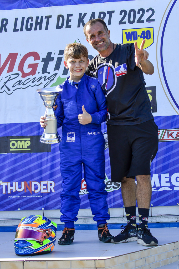 Compartilhar no Facebook Compartilhar no Twitter Compartilhar no Google+ Compartilhar no Pinterest No último sábado (05), Rafael Machado (Aristeu Ferragens, Adecom distribuidora e 1805 Barbearia) disputou a etapa de abertura da Copa SPR Light de Kart, no kartódromo Beto Carrero, em Penha, litoral catarinense No último sábado (05), Rafael Machado (Aristeu Ferragens, Adecom distribuidora e 1805 Barbearia) disputou a etapa de abertura da Copa SPR Light de Kart, no kartódromo Beto Carrero, em Penha, litoral catarinense. Estreante na F4 Júnior, o piloto de São José dos Pinhais-PR, conquistou o 3º lugar no pódio da categoria. Integrante da equipe Cris Racing, Rafael Machado fez o terceiro melhor tempo na tomada, a apenas 0,389 de diferença para pole position, xará e campeão brasileiro da categoria, Rafael Vasco. Na primeira corrida perdeu uma posição na largada, recuperou uma e na disputa pela posição inicial caiu para a sexta colocação. Conseguiu recuperar e terminou em quarto lugar. Os comissários entenderam que Rafael forçou uma ultrapassagem e acrescentaram três segundos ao seu tempo, ficando com a sexta posição. Na corrida seguinte, Rafael Machado largou bem, assumiu a terceira posição e manteve até a bandeirada final. A soma dos resultados garantiu os pontos do terceiro lugar na etapa. “O Rafael disputou com pilotos mais experientes que ele na categoria e foi bem, estamos satisfeitos com este resultado de estreia. Vamos seguir com treinos e quem sabe na próxima, ele consiga brigar pela vitória”, comentou Cristiano Freitas, preparador da equipe. Texto e fotos: Eni Alves