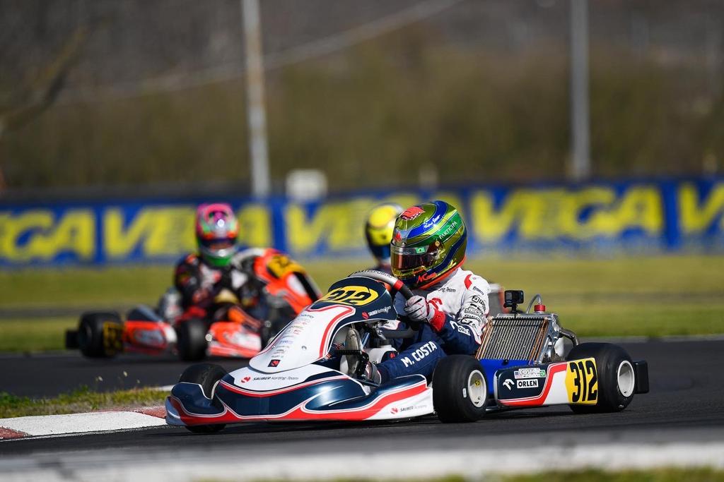 Compartilhar no Facebook Compartilhar no Twitter Compartilhar no Google+ Compartilhar no Pinterest Brasileiro, piloto da academia da Sauber, fecha campeonato com um sétimo lugar em Sarno, e completa torneio com três resultados entre os dez melhores Miguel Costa teve mais um final de semana de bons resultados no kartismo europeu. O brasileiro disputou a última etapa do WSK Super Masters no kartódromo de Sarno, na Itália, onde apresentou bons desempenhos tanto nas tomadas de tempo quanto nas corridas, e completou a etapa com um sétimo lugar, faturando mais um top-10 no ano. Costa, integrante da academia de pilotos da Sauber, ficou no top-5 em três das quatro baterias classificatórias, após ser o sexto melhor de seu grupo na tomada de tempos. Na pré-final, já disputada no domingo, o brasileiro completou a prova na sétima posição, mesmo posto da final, quando uma falha no carburador na largada o atrapalhou. “O final de semana foi bom. A classificação rendeu um sexto lugar no grupo, e depois, nas baterias classificatórias, estive no top-5 em três das quatro corridas, o que rendeu uma boa posição para a pré-final. Na final, fiquei com o sétimo lugar, mesmo tendo um problema na largada. Se tem a sensação de que eu poderia ter brigado pelo pódio por um lado, por outro mostra que minha evolução é boa e segue por um bom caminho”, comenta Costa. Miguel termina a temporada do WSK Super Masters mostrando força, terminando três das quatro etapas entre os melhores. O piloto foi o quinto colocado na primeira etapa, em Lonato, nono colocado em La Conca, e sétimo em Sarno. Estes desempenhos garantiram ao brasileiro a 11ª colocação ao final do campeonato. Após o encerramento do WSK Super Masters, as atenções de Miguel Costa se voltam para o Champions of the Future, que abre o campeonato deste ano entre os dias 24 e 27 deste mês, no kartódromo de Portimão, em Portugal. Jornalista responsável: Rodrigo França