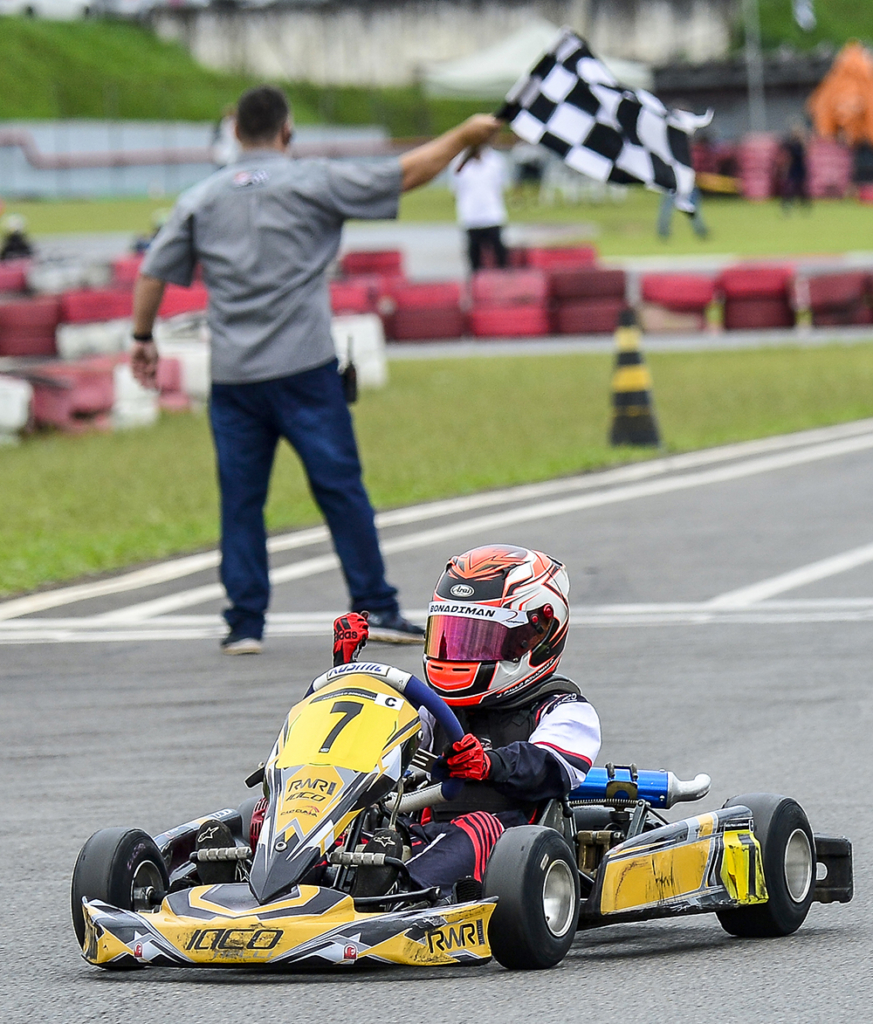 Compartilhar no Facebook Compartilhar no Twitter Compartilhar no Google+ Compartilhar no Pinterest O piloto capixaba sai do 18º lugar da tomada para o alto do pódio da categoria Cadete Um dos mais disputados campeonatos de kart do país, a Copa São Paulo Light teve a 2ª etapa realizada no último sábado (12), no kartódromo Ayrton Senna, em Interlagos. Reunindo mais de 230 pilotos de vários estados brasileiros, 34 foram da categoria Cadete, na qual o piloto capixaba João Paulo Bonadiman alcançou a vitória. A chuva que caiu na madrugada de sábado deixou a pista molhada para o treino classificatório. Bonadiman marcou o 18º tempo. Na primeira corrida, o piloto largou bem, foi conquistando posições e cruzou a linha de chegada em 4º lugar. Na corrida seguinte, com a inversão dos cinco primeiros do grid previsto no regulamento da Copa, o piloto saiu na primeira fila, assumiu a liderança na largada e conduziu muito bem a categoria vencendo com mais de três segundos de vantagem. A soma dos resultados colocou João Paulo Bonadiman no degrau mais alto do pódio. Ainda de forma extraoficial, após as duas etapas, o piloto capixaba divide a vice-liderança com o carioca Raphael Gebara, com 17 pontos cada, a um ponto do líder, o paranaense Guilherme Moleiro. “Foram duas corridas muito boas. O meu kart estava perfeito e deu tudo certo desta vez. Agradeço o trabalho da minha equipe, ao meu pai pelo apoio e incentivo e a todos que ficaram na torcida por mim. Em abril tem mais”, comentou o capixaba de Vitória, João Paulo Bonadiman, piloto de 9 anos de idade. Acompanhe o piloto na rede social Instagram @joaopaulobonadiman. Texto e fotos: Eni Alves