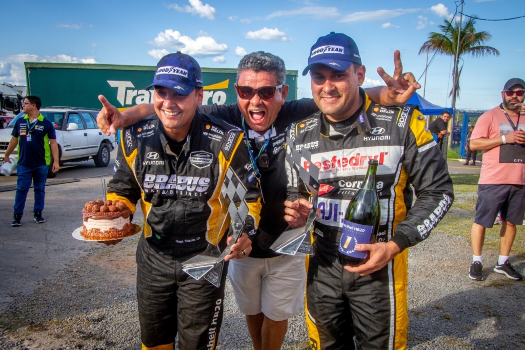 Velocidade no Asfalto Copa Shell HB20 Por Eni Alves Publicado em 21 de março de 2022 Compartilhar no Facebook Compartilhar no Twitter Compartilhar no Google+ Compartilhar no Pinterest Guga Teixeira celebra aniversário com vitória Guga Teixeira venceu na categoria ELITE. Foto: Ricardo Saibro O presente pretendido chegou. O goiano Guga Teixeira venceu a corrida 1 da categoria ELITE da Copa Shell HB20 disputada na tarde deste sábado, no Autódromo de Goiânia, e celebrou o aniversário no ponto mais alto do pódio. “Estou de alma lavada e muito feliz por poder comemorar em casa, junto com toda a família e os amigos”, celebrou o piloto da Brabus Racing, que tem o apoio da BC Energia, Aji-Sal, Corneta Ferramentas, MID, GPM Automotive, Pharma Science e Brabus Marketing & Business. A corrida de Guga Teixeira foi decidida na largada, quando ele aproveitou para pular na frente e abrir vantagem para os demais competidores. “Deu certo a largada e vi que os líderes ficaram para trás. Depois, na relargada, também deu tudo certo e fui para frente. Tô feliz demais, o carro está muito bom e os mecânicos estão de parabéns”, celebrou. Categoria PRO Rapha Teixeira, irmão de Guga, também celebrou pódio neste sábado. Ele terminou na terceira colocação da categoria PRO, e conquistou seu sétimo pódio no ano. “Sempre é bom celebrar pódio, mas eu quero mais. Andando em casa a expectativa é maior e amanhã vamos com tudo pra cima”, comentou o piloto. Na categoria Super, a Brabus Racing também celebrou pódios. Os estreantes Ernani Kuhn e Gustavo dos Anjos ficaram com o terceiro e quarto lugares, respectivamente. A corrida 2 será disputada neste domingo, às 9h50, com transmissão pelos canais Motorsport.combr e High Speed Brazil no youtube. Resultado Corrida 1 Categoria ELITE 1º – GUSTAVO TEIXEIRA 2º – LEO RUFINO 3º – BRUNO PIEROZAN 4º – ARTHUR SCHERER 5º – THALINE CHICOSKI 6º – MARCUS INDIO 7º – PEDRO PERDONCINI /ROMULO MOLINARI 8º – EDGAR COLAMARINO 9º – JUCA LISBOA 10º – MARCELO ZEBRA 11º – FRANCISCO MEIRELES 12º – GLAUCO TAVARES 13º – ENZO GIANFRATTI Categoria PRO 1º – LEONARDO REIS 2º – ALBERTO CATTUCCI 3º – RAPHAEL TEIXEIRA 4º – DANIEL NINO 5º – LUCIANO VISCARDI /THIAGO RIBERI 6º – EDUARDO FUENTES /FERNANDO JR 7º – LUIS SENA JR 8º – BRUNO TESTA 9º – CHRIS BORNEMANN 10º – BETO CAVALEIRO 11º – THIAGO TAMBASCO /BERNARDO MATTOS 12º – HUMBERTO GUERRA JUNIOR 13º – RAFAEL REIS Categoria Super 1º – JOÃO PEDRO BORTOLUZZI 2º – LEANDRO PARIZOTTO 3º – ERNANI KUHN 4º – GUSTAVO DOS ANJOS /RENATA CAMARGO 5º – LEONARDO MARTINS 6º – AUGUSTO FREITAS/THIAGO FREITAS 7º – VITO ARDITO /AGOSTINHO ARDITO 8º – THIAGO SANSANA 9º – IVO ZANGIROLAMI 10º – THIAGO LOPES Jornalista responsável: Osires Junior