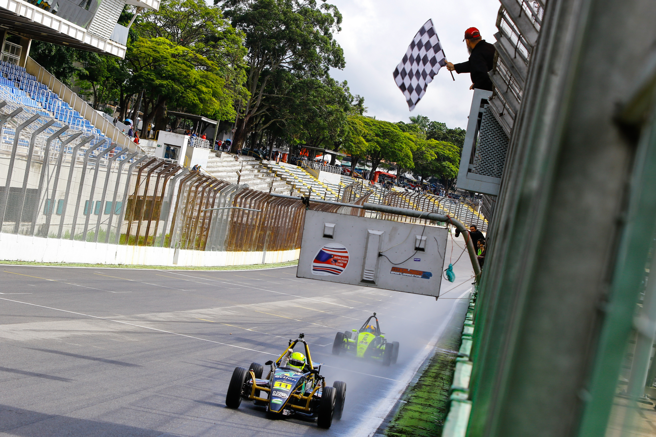 Velocidade no Asfalto Lucas Freitas 100% em Interlagos Por Eni Alves Publicado em 18 de abril de 2022 Compartilhar no Facebook Compartilhar no Twitter Compartilhar no Google+ Compartilhar no Pinterest Lucas Freitas 100% em Interlagos: com as duas vitórias conquistadas na 3ª etapa, piloto assume a terceira colocação na classificação. Em um final de semana irretocável, Lucas Freitas (Action Agenciamento de Cargas) conquistou as duas vitórias possíveis na 3ª etapa do Paulista de Fórmula 1600 realizada no Autódromo de Interlagos (SP) nesse final de semana (16 e 17 de abril). Em ambas as corridas, Freitas travou ótimas disputas com Lélio Assumpção – piloto que conquistou a pole position no sábado por uma diferença de 0s080. No sábado a vitória veio apenas na última volta, Lucas entrando na curva do Junção na segunda colocação, atrás de Assumpção e na Subida do Café aproveitando o vácuo do carro da frente conseguiu colocar de lado para assumir a primeira colocação e receber a bandeira quadriculada 0s102 à frente. Já no domingo a pista úmida limitou a disputa pela primeira colocação apenas entre Lucas Freitas e Lélio Assumpção que dispararam em relação aos demais pilotos. Os pilotos se alternavam na liderança. “As duas corridas foram bem disputadas, do começo ao fim não foi nada tranquila. Mas tenho que agradecer muito a minha equipe Art Racing que me entregou um equipamento excelente e conseguimos sair de Interlagos com duas vitórias. Quero agradecer a Deus pelo final de semana, minha família e a todos que vieram torcer por mim nesse final de semana frio aqui em São Paulo, especialmente ao pessoal do meu patrocinador Action”, finalizou Freitas. Nas duas últimas voltas, Freitas conseguiu colocar-se a frente impedindo as investidas de Assumpção e cruzando a linha de chegada 0s524 à frente. Com as duas vitórias, Freitas sai de Interlagos após a 3ª etapa da Fórmula 1600 na terceira colocação na tabela de classificação com 74 pontos, 8 pontos atrás do líder Marcel Fachini. A próxima etapa acontece novamente no Autódromo de Interlagos nos dias 27, 28 e 29 de maio. Confira o resultado da corrida 2 da Fórmula 1600 (top-10): Lucas Freitas, 12 voltas em 29min38s – média 127,04km/h Lélio Assumpção à 0s524 Marcel Fachini Filipe Jorge Rafael Henning Alexandre Bonilha Eduardo Vale Enzo Sala Rogerio Teixeira Bruno Zouain Confira o resultado da corrida 1 da Fórmula 1600 (top-10): Lucas Freitas, 12 voltas em 27min52s – média 133,38km/h Lélio Assumpção à 0,102 Filipe Jorge Marcel Fachini Alexandre Bonilha Rogério Teixeira Rafael Henning Iago Garcia Bruno Barbieri Enzo Sala Lucas Freitas é piloto do Fórmula 1600 #11, com patrocínio de Action Agenciamento de Cargas. Confira o calendário da temporada 2022 do Campeonato Paulista de Fórmula 1600: 1ª etapa – 18, 19 e 20/02 – Interlagos (SP) 2ª etapa – 04, 05 e 06/03 – Velocitta (Mogi Guaçu/SP) 3ª etapa – 15, 16 e 17/04 – Interlagos (SP) 4ª etapa – 27, 28 e 29/05 – Interlagos (SP) 5ª etapa – 15, 16 e 17/07 – Interlagos (SP) 6ª etapa – 02, 03 e 04/09 – Interlagos (SP) 7ª etapa – 28, 29 e 30/10 – Velocitta (Mogi Guaçu/SP) 8ª etapa – 18, 19 e 20/11 – Velocitta (Mogi Guaçu/SP) 9ª etapa – 18, 19 e 20/12 – Interlagos (SP)