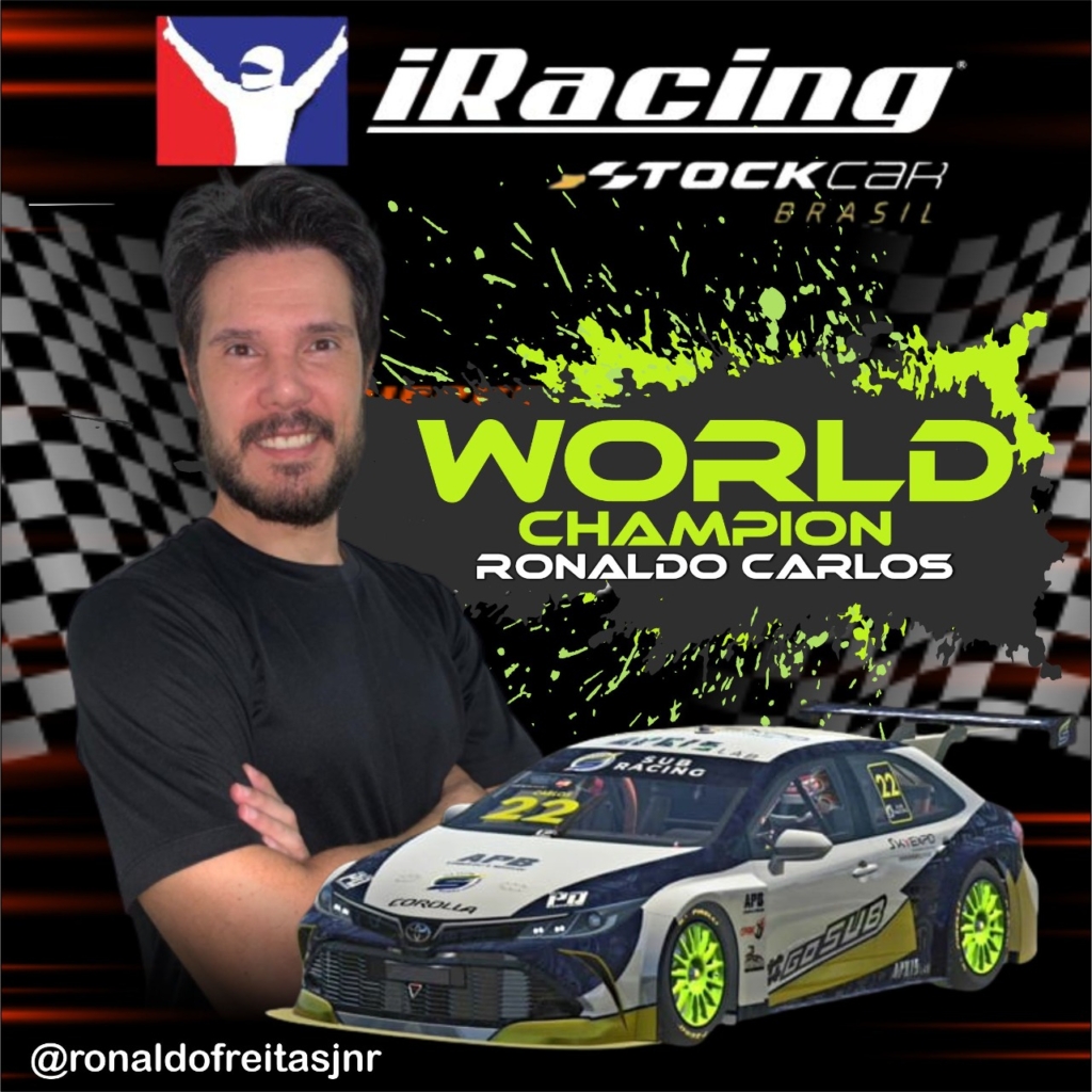 O Piloto cearense Ronaldo Carlos conquistou o Titulo Mundial na estréia da Categoria Stock Car em formato virtual a bordo de um Toyota Corolla.