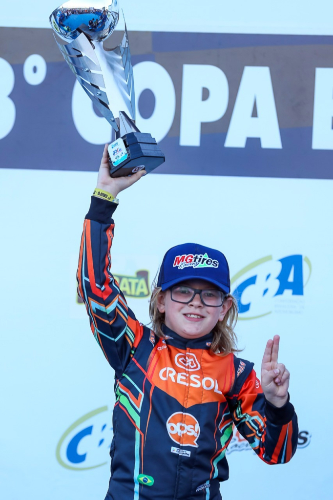 Compartilhar no Facebook Compartilhar no Twitter Compartilhar no Google+ Compartilhar no Pinterest Jovem piloto destaca experiência e aprendizado obtido em Aracaju e foca na conquista do Campeonato Brasileiro em outubro Angelo Predebon (Gilmar Rose) Atual campeão sul-brasileiro da Mirim, Angelo Predebon (Cresol | Dicave Volvo | OPS App) foi um dos principais destaques de sua categoria na última semana na disputa da 23ª Copa Brasil de Kart. A competição teve como palco o Kartódromo Emerson Fittipaldi, em Aracaju (SE), onde o piloto catarinense largou na pole position na última e decisiva bateria. Piloto da equipe Quirino Racing, Predebon aproveitou muito bem as oportunidades que teve para treinar e conhecer o traçado, bastante técnico. Bem adaptado à pista, Angelo liderou treinos e marcou a segunda melhor volta no resultado consolidado nos seis aprontos da categoria. Terceiro colocado na tomada de tempos, apenas 1 décimo de segundo mais lento que o pole position, Angelo Predebon venceu a primeira prova classificatória e foi o segundo colocado na corrida seguinte. Assim, os resultados lhe garantiram a pole position para a Final, cujo vencedor seria o campeão da Copa Brasil. O piloto de Xaxim (SC) fez boa largada na prova decisiva, mas logo acabou ultrapassado, caindo para a segunda posição. “O motor que recebemos no sorteio para a Final apresentou um rendimento bem abaixo dos dias anteriores. O Angelo ‘tomava’ incríveis três décimos de segundo nas retas”, relembra Cássio Predebon, pai de Angelo. “Mas ele se superou, fez um traçado perfeito e, se não deu para acompanhar o líder, pelo menos foi possível abrir uma boa distância em relação ao terceiro colocado, mesmo marcando apenas a 5ª melhor volta da prova”, completa. Angelo Predebon (Cresol | Dicave Volvo | OPS App), que assim se sagrou vice-campeão do segundo evento mais importante do kartismo nacional, valorizou bastante o aprendizado e a experiência conquistadas ao longo da competição. “É o melhor prêmio que podemos levar”, disse o jovem piloto, que tem como foco principal conquistar o Campeonato Brasileiro, marcado para outubro em Itu (SP). A Mirim reuniu em Aracaju 15 dos principais pilotos da categoria. E, dos cinco primeiros colocados, três deles são representantes de Santa Catarina: Angelo Predebon, o vice-campeão, Vicente da Silva (4º) e Manoel Cecatto (5º). KG COM Assessoria de Comunicação – Erno Drehmer