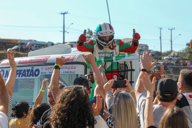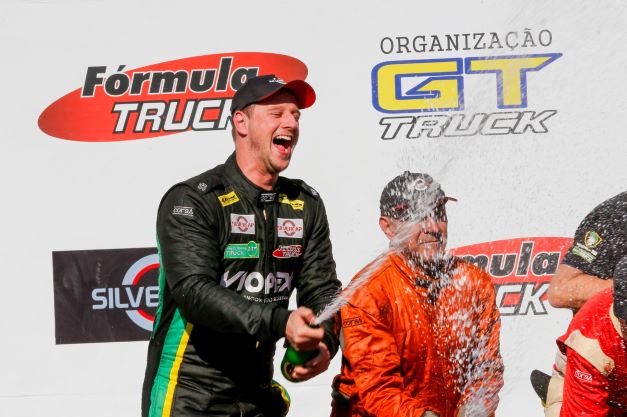 Velocidade no Asfalto Muffato vence a Fórmula Truck em Cascavel com chegada emocionante Por Eni Alves Publicado em 15 de agosto de 2022 Compartilhar no Facebook Compartilhar no Twitter Compartilhar no Google+ Compartilhar no Pinterest O veterano piloto cascavelense estreou na categoria e conquistou a vitória com ultrapassagem na linha de chegada Pedro Muffato conquista a vitória em casa com chegada emocionante Com ultrapassagem na linha de chegada, o paranaense Pedro Muffato conquistou a vitória na 4ª etapa da Fórmula Truck, disputada neste domingo, no autódromo Zilmar Beux, em Cascavel, região Oeste do Paraná. Muffato estreou na categoria em casa e conquistou a vitória na classificação geral e na categoria Eletrônico. Na categoria Bomba Injetora, a vitória foi do gaúcho Rafael Fleck, que largou na pole position. Aos 82 anos, Muffato fez história neste domingo. Ele foi o mais rápido nos treinos de sexta-feira, largou na pole position, ganhou a corrida 1 de ponta a ponta, recebendo a bandeirada com 2s578 de vantagem para o catarinense Rogério Agostini, o segundo colocado. Na corrida 2, Muffato largou bem e manteve a liderança. Permaneceu na posição até a oitava volta, quando foi ultrapassado por Agostini. Na frente, Agostini chegou a abrir nove segundos de Muffato. No entanto, faltando três voltas, a diferença começou a cair. Na última volta, Muffato encostou na reta dos boxes antigos e entrou na linha de chega colocado. A disputa foi até a linha de chegada, com Muffato ultrapassando. A cronometragem registrou a vitória do cascavelense por 540 milésimos de segundos. Rafael Fleck comemora sua primeira vitória na categoria depois do “quase” nas três primeiras etapas O show de Muffato não ofusca a atuação de Rogério Agostini. Ele largou em último, 22º no grid em função da desclassificação por ter recebido auxilio mecânico durante o treino classificatório, e na nona volta chegou à vice-liderança. Também se destacaram na categoria Eletrônico, João Batista Santos, Márcio Rosa e Álvaro Bento, que foram terceiro, quarto e quinto respectivamente. Na categoria Bomba Injetora, o gaúcho Jorge Fleck largou na pole position e dominou as duas corridas. Na primeira, cruzou a linha de chegada 16s365 à frente de Gilmar Mottin e na segunda recebeu a bandeirada 8s353 à frente de Túlio Bendo. Na soma das duas provas, Fleck garantiu a vitória ao somar 40 pontos. Túlio Bendo se classificou em segundo, com 34 pontos; seguido de Gilmar Mottin, 32; Márcio Rampon, 27; e Geraldo Alves, fechando os cinco primeiros, com 23 pontos. Pedro Muffato festeja a vitória a histórica vitória com a galera Vitória de Cascavel Festejado pelo publico, Pedro Muffato diz que a vitória foi de Cascavel. Ele destacou a boa preparação do caminhão, feita por equipe comandada pelo Dico e também o seu conhecimento do traçado. Muffato explicou que quando perdeu a liderança para Agostinho, o motor de seu caminhão apresentava falha de um cilindro. “Acredito que tenha quebrado um balanceiro. Seguei a pensar em ir para os boxes, mas decidi continuar na pista e ver o que iria dar. Percebi que dava para andar em um ritmo de poderia me garantiu em segundo. Mas faltando três voltas, percebi a queda de rendimento do Agostini e decidi arriscar um pouco. Na penúltima volta, pisei mais no acelerador torcendo para não quebrar porque sabia que ele não poderia aumentar a potência. Deu certo, passei na linha de chegada. A vitória é de Cascavel”, completa o festejado Muffato. Rogério Agostini lamentou o problema, mas comemora o fato de ter largado em último e quase ter vencido. “Fiz uma boa corrida. O caminhão está perfeito até cinco voltas do fim, quando a temperatura subiu e ferveu. A três voltas, quebrou a turbina e a partir daí passei apenas a torcer para que o Muffato não conseguisse chegar. Não tinha o que fazer. Pisava fundo, mas a potência do motor não subia. Não venci, mas a corrida foi show”, acentua Agostini. Fleck desencanta Depois da vitória bater na trave nas três primeiras etapas, Rafael Fleck desencanta a conquista a sua primeira vitória na categoria. “Hoje deu tudo certo, mas tivemos muito trabalho. Depois do treino classificatório, descobrimos uma rachadura no cabeçote. A equipe trabalhou até as duas da madrugada para arrumar o motor e pudemos largar normalmente. Foi tudo normal das duas corridas, pude até administrar um pouco para não correr risco. Precisávamos desta primeira vitória para reagirmos no campeonato”, frisa Rafael Fleck. A 4ª etapa da Fórmula Truck será disputada no dia 7 de setembro, no Autódromo de Interlagos, em São Paulo. A Fórmula Truck tem promoção e organização de Gilberto Hidalgo, supervisão das federações do Paraná, Rio Grande do Sul e São Paulo; patrocínio da JK Tyre e Silvercap, e apoio da Volparts, Meritor, Eckisiel e Platodiesel. Resultado da 4ª etapa da Fórmula Truck em Cascavel Categoria Eletrônico 1º) Pedro Muffato (Cascavel-PR), Scania, com 40 pontos 2º) Rogério Agostini (São Miguel do Oeste-SC), Mercedes-Benz-RS), 36 3º) João Batista M. dos Santos (Colombo-PR), Scania, 32 4º) Márcio Rosa (Canoas-RS), Volvo, 27 5º) Álvaro Bendo (Ermo-SC), etapa Scania, 25 6º) Dario Amaral (Pindamonhangaba-SP), Scania, 22 7º) Alex Vieira (Santos-SP), Protótipo, 16 8º) Léo Barramacher (Balneário Camboriú-SC), Volvo, 13 9º) João Helder Mottin (Curitiba-PR), Protótipo, 11 10º) Jorge “Feio” Maurício (Pelotas-RS), Scania, sem pontos Categoria Bomba Injetora 1º) Rafael Fleck (Porto Alegre-RS), Scania, com 40 pontos 2º) Túlio Bendo (Ermo-SC), Scania, 34 3º) Gilmar Mottin (Adrianópolis-PR), Volvo, 32 4º) Márcio Rampon (Curitiba-PR), Scania, 27 5º) Geraldo Alves (São Paulo-SP), Volkswagen, 23 6º) Felipe Fráguas (Santos-SP), Volvo, 23 7º) Luís Paulo Rampon (Curitiba-PR), Scania, 14 8º) Cléber Fonseca (Cascavel-PR), Ford, 13 9º) Daniel Lovatto (Almirante Tamandaré-P