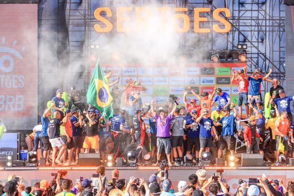 Motovelocidade Na edição histórica do maior rali do mundo Bianchini Rally conquista três títulos e mais cinco pódios Por Eni Alves Publicado em 15 de setembro de 2022 Compartilhar no Facebook Compartilhar no Twitter Compartilhar no Google+ Compartilhar no Pinterest Com títulos nas motos, UTVs e carros – Rodrigo Sallum (Campeão Moto 3), Max Fernandes/George Martins (Campeões UTV2) e Michel Terpins/Fabrício Bianchini (Campeões T1 Brasil) – equipe encerra o Sertões 30 anos com balanço positivo após desbravar o Brasil em 14 dias e mais de 7.200 km César Peduti na estreia no Sertões, completou os 14 dias em sexto na Moto3 (Vinícius Branca/Fotop) Desta vez, o Sertões levou máquinas e competidores ao extremo nos 14 dias de prova e mais de 7.200 km de roteiro que passou por oito Estados (PR, SP, MS, MT, TO, PI, MA e PA) do Sul ao Norte do Brasil. Não é à toa que completar a edição épica teve um sabor especial pela superação, garra e pelo “rali individual” que cada um dos competidores precisou administrar entre a largada, em Foz do Iguaçu (27/8), e a chegada, em Salinópolis (10/8). Missão cumprida para Bianchini Rally que fechou o maior rali do mundo com três títulos – motos, UTVs e carros – e mais cinco pódios e teve uma das comemorações mais animadas na rampa de chegada no litoral paraense. Nas motos, dos cinco pilotos quatro subiram ao pódio, entre os Top5 das respectivas categorias. Após liderar por nove etapas consecutivas, Rodrigo Sallum (Husqvarna FE450) #28 conquistou o título na Moto 3 e foi 9º na geral. Na mesma categoria, Vinícius Rodrigues (Honda CRF 450RX) #36 foi 3º e P13 na geral e Cesar Pedutti (Husqvarna FE450) ficou em 6º. Na Moto Over 45, Guto Bogo (Husqvarna FE501) finalizou na 5ª posição. Já Adhemar Pereira “Índio” (Husqvarna FE450) #23 terminou em 3º na Moto1 e 5º na geral no Sertões Norte (sete etapas entre Palmas e Salinópolis). Comemoração da Bianchini Rally na chegada do Sertões, a Salinópolis (PA) (Vandrei Stephani/Fotop) Nos UTVs (Can-Am Maverick X3) três das quatro duplas levaram troféus para casa. Marcos Finato/Guilherme Holanda #235 conquistaram a 3ª posição na UTV Over45. Michel Falqueiro/Joselito Jr #252 completaram em 7º na UTV 3. Já pelo Sertões Norte duas duplas subiram ao pódio: Max Fernandes/George Martins #235 foram Campeões na UTV2 e 4º na geral enquanto Eduardo Teixeira/Túlio Taniguchi #253 vice-campeões na UTV Over45. O título nos carros T1 Brasil foi de Michel Terpins/Fabrício Bianchini #322, que ainda foram vice-campeões na geral no Sertões Norte, a bordo da XRally Ranger. A dupla bateu na trave em 2021 quando foi vice-campeã na categoria, mas nesta edição de 30 anos subiram ao lugar mais alto do pódio. César Bogo na chegada: pódio em quinto na Moto Over 45 (Rodrigo Barreto/Fotop) Os campeões da 30ª edição do Sertões foram: Lucas Moraes/Kaíque Bentivoglio (carros); Rodrigo Varela/Matheus Mazzei (UTV) e Bissinho Zavatti (motos). Redes sociais da equipe: Instagram @bianchinirally e Facebook @equipebianchinirally e também Canal do Youtube/Bianchini Rally. Mais informações www.bianchinirally.com.br A Bianchini Rally, com sede em Barueri (SP), tem patrocínio da Hupi, Motul, Rock e apoios da Borilli Racing, Army, Mafia do Rally, Pearl Max, Mahovi, São Miguel Pão de Queijo, All Tack e Finisher Balanço dos competidores do Sertões 2022 Campeões: Campeão Moto3: Rodrigo Sallum (Catanduva/SP), 2ª participação – “Foi uma superação pessoal sem tamanho. Há oito meses achei que nunca mais andaria de moto por causa do acidente e coloquei como objetivo terminar esse Sertões e fui treinando, fazendo fisioterapia, academia duas vezes ao dia. Coloquei como meta não tomar nenhum susto, evitar cair e andar redondo. E foi assim do início ao fim, mantive esse ritmo de prova e fui superando os desafios e os adversários. No último dia estava com 40min de vantagem. A moto estava perfeita, a equipe nota mil, os mecânicos me ajudaram demais. Não tenho palavras para descrever minha felicidade. É indescritível terminar, levar o título e 9º na geral, em meio a grandes campeões.” Campeão UTV2: Max Fernandes (São Paulo/SP), 3ª participação – “O Sertões 2022 foi o maior rali do mundo. Foram 7.200 km em 14 dias cruzando o Brasil, conhecemos lugares e pessoas de maneira épica e incomum. Agradeço a minha esposa, ao George pela navegação, aos mecânicos, a Bianchini Rally pelo suporte e apoio e a todos os envolvidos. Foi incrível!” Campeão T1 Brasil e vice-campeão geral Sertões Norte: Fabrício Bianchini (Barueri/SP), 24 participações – “Michel e eu fizemos uma ótima prova e estávamos focados. Completamos todas as etapas entre 2º e 3º da categoria e sempre entre os cinco primeiros da geral. Foi tudo 100%, apesar de um rali longo foi muito prazeroso. Estamos felizes da vida com o título! Já sobre o balanço da equipe foi mais que positivo! As cinco motos e os quatro UTVs chegaram e, ainda, a maioria no pódio. Parabéns aos campeões e a todos pela superação. Aproveito para agradecer a dedicação de todos porque a Bianchini Rally é uma família e o trabalho de cada um foi fundamental. Obrigado a todos os patrocinadores e parceiros que acreditaram na nossa equipe.” Subiram ao pódio: P3 Moto3: Vinícius Rodrigues (Barueri/SP), 2ª participação – “Desde Foz do Iguaçu enfrentamos Especiais longas e diversas. Para mim a mais difícil foi a 5ª etapa, cansei demais foi a mais longa da edição e rali é isso, a gente vai se superando dia a dia. E vim numa crescente, saímos da 39ª posição na geral para chegar em Salinópolis em 13º. Nem nos meus melhores sonhos imaginei esse resultado- 3º na Moto 3 e 13º na geral -, estou muito feliz. Tudo isso foi possível graças a uma equipe, a Bianchini Rally, porque teve muita gente trabalhando para fazer isso acontecer.” P5 Moto Over45: Guto Bogo (Lages/SC), 2ª participaç