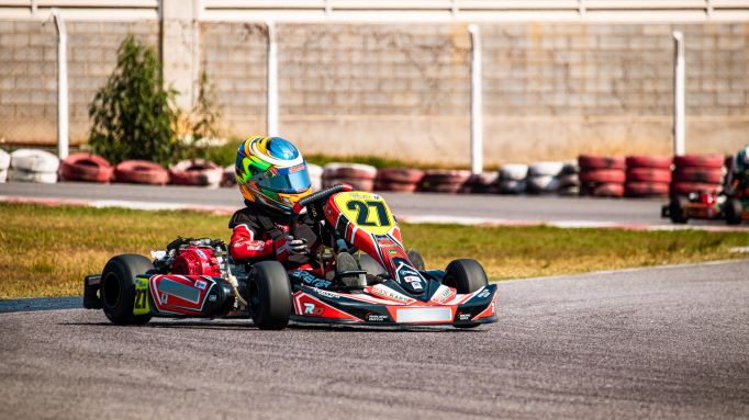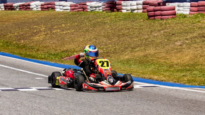 Compartilhar no Facebook Compartilhar no Twitter Compartilhar no Google+ Compartilhar no Pinterest A pista do RBC Racing, em Vespasiano (MG), mais uma vez foi palco de corridas emocionantes, desta vez, na grande final do Campeonato Mineiro de Kart, realizada no sábado (24). Entre os que conquistaram o título e subiram ao pódio, está Rafael Guimarães (Petrolub Industrial / Leo Madeiras Mato Grosso / Engenheiro André Luiz / Engenheiro Alex Lara / Comando da Velocidade), da categoria Mirim, que brilhantemente se tornou tricampeão do estadual. Rafael tem apenas 9 anos e durante todas as etapas do campeonato mostrou que tem vocação para o esporte e, mais que isso, pilotou como gente grande – e até melhor que muitos deles. Nos treinos oficias da etapa final, realizados na sexta-feira (23), Guimarães conquistou dois P2 e um P5, sendo este último a mesma coloção na tomada de tempo realizada no sábado (24). Daí vieram as duas provas decisivas da final. A vitória em apenas uma delas já daria a Rafael o tricampeonato, no entanto, ele mostrou o porquê era favorito ao título e venceu as duas baterias com maestria. “Eu queria muito ser tricampeão e consegui! Estamos todos felizes. Lutamos muito para isso e o título veio. Obrigado a todos pela torcida aqui no RBC e também nas redes sociais”, disse Rafael após subir ao pódio. Agora, o piloto volta o foco para a Copa São Paulo Light que terá a 9ª etapa disputada no próximo sábado (1º), desta vez na pista do Kartódromo Arena Itu, mesmo local que será palco da 1ª fase do Campeonato Brasileiro entre os dias 9 e 15 de outubro. Já nesta segunda-feira (26), Rafael embarca para São Paulo para dar início aos treinos e se familiarizar com o traçado das próximas competições. Rafael Guimarães integra a equipe Max Kart e conta com o patrocínio das empresas Armazém Beershop, AGV Construções, Black Taxi Aéreo, Bravar, Casa Vick e OMP e conta também com o apoio das empresas DCIT Tecnologia, Multilonas, Lab Comunicação, Líder Flex Vidros, TFLA Idiomas e Sirovich Detailer.