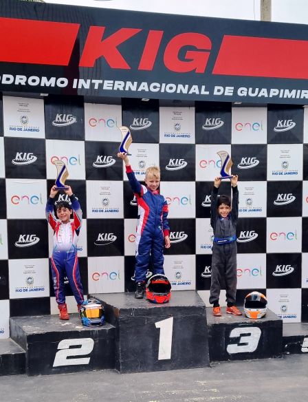 Compartilhar no Facebook Compartilhar no Twitter Compartilhar no Google+ Compartilhar no Pinterest Eduardo Martini Mota (16) cruzando a linha de chegada – Carioca Light de Kart 2022 No último sábado (03/12), o Kartódromo Internacional de Guapimirim recebeu o Campeonato Carioca Light de Kart de 2022, e entre pilotos de karts 2 Tempos e 4 Tempos que aceleram em diversas categorias na competição, estava o morador de Barra Mansa (RJ), Eduardo Martini Mota (AGP Motorsport / Irmãos Martini / Guaporé Representações), da categoria Mirim e que conquistou o vice-campeonato em sua faixa etária, 7 a 9 anos. O evento foi promovido pela Equipe CRT, supervisionado pela Federação de Automobilismo do Estado do Rio de Janeiro (FAERJ) e ocorreu em etapa única este ano. Essa foi apenas a terceira vez que o piloto andou na pista de Guapimirim, a última em maio deste ano pelo Estadual e a primeira no ano passado, andando só por lazer. Dudu, como é mais conhecido, competiu nesta corrida com pilotos mirins que treinam habitualmente e que já conhecem melhor a pista. Eduardo Martini Mota (16) se arrumando para correr – Carioca Light de Kart 2022 “Gostei muito do meu desempenho. Andar na frente do Ayrton (P3 da Mirim) me deu trabalho e o Victor está muito forte, correndo junto com os Cadetes, preciso treinar mais pra chegar lá. Ficar no meio deles, em P2 na Mirim, foi uma grande vitória para mim”, comemora Eduardo após a premiação. Eduardo tem 7 anos e 5 meses e concluiu este ano como o piloto federado mais novo competindo no Estado do Rio. Na Mirim, Dudu foi o Campeão Estadual de 2022 depois de cinco Etapas; ficou em P4 no Campeonato do 34 Kartódromo de Guaratinguetá após três Etapas; e fechou 2022 com o vice-campeonato no Carioca Light de Kart. Foram três campeonatos e nove etapas ao todo em seu ano de estreia. Pódio da Mirim – Carioca Light de Kart 2022 O kartismo infantil está em renovação no Estado do Rio e a expectativa para 2023 é já iniciar com um grid entre oito e dez pilotos entre Mirins, de 7 a 9 anos, e Cadetes de 8 a 11 anos. Em todo o Estado existem apenas duas pistas certificadas e homologadas pela FAERJ que podem receber competições de karts preparados, uma no município de Volta Redonda e outra em Guapimirim. Em ambos os kartódromos existem equipes e profissionais especializados para dar instruções tanto para adultos como para crianças e adolescentes através de escolas de pilotagem. A classificação final do Campeonato Estadual de Kart 2022 das categorias infantis: Mirim Campeão – Victor Loose Vice-campeão – Eduardo Martini Mota 3º lugar – Ayrton Monteiro Cadete Campeão – Thomáz Costinhas Cadete Rookie Campeão – Gustavo Almeida Texto: Assessoria de imprensa do piloto