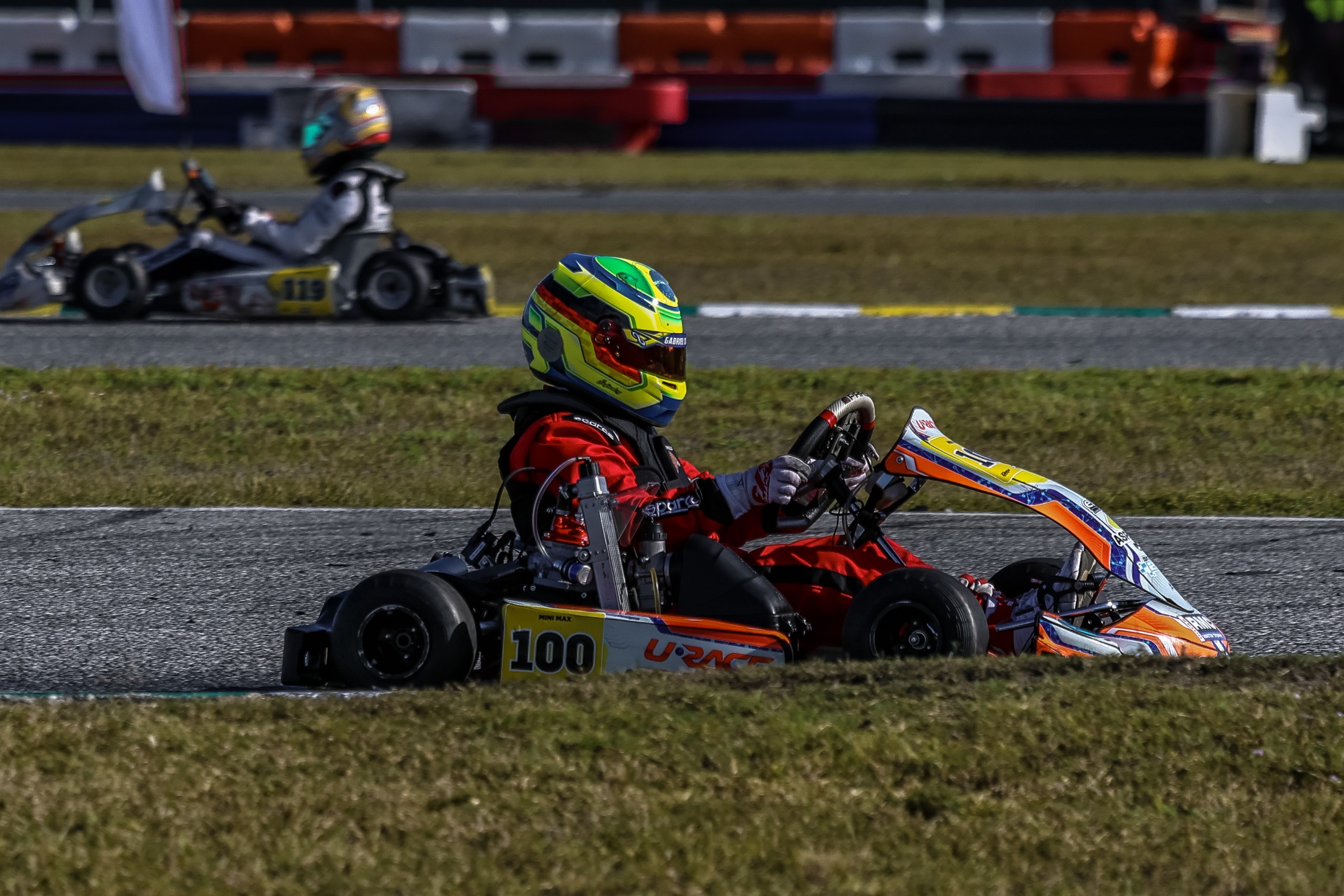 Compartilhar no Facebook Compartilhar no Twitter Compartilhar no Google+ Compartilhar no Pinterest Mesmo abaixo da idade mínima exigida na Mini Max, o paulista deu um show na pista americana; foi a estreia dele nesta categoria. Gabriel Cayres(KMCom / RTD Media) Terminou neste fim de semana, na pista do Orlando Kart Center, nos Estados Unidos, a Rotax Winter Trophy: uma das provas mais concorridas deste início de temporada, principalmente porque é uma competição que dá aos campeões vaga para o Mundial Rotax. Foram dois fins de semana de muita velocidade e muitas brigas na pista pelas melhores posições. Na categoria Mini Max, o Brasil teve como representante Gabriel Cayres (Equipe U-Race / Chefe de equipe: Ítalo Silveira), que disputou as quatro etapas do evento e foi um dos melhores pilotos da América do Sul. Vale destacar que foi a primeira vez de Gabriel na categoria Mini Max. Ele foi para a disputa inscrito na Micro Max. No entanto, em decisão junto à equipe, o paulista subiu de categoria, visando maior possibilidade de crescimento na competição. E, com disciplina e arrojo, Cayres, mesmo abaixo da idade mínima exigida, deu um show na pista americana, superando, inclusive, o piloto Cristobal Bonnet, vice-campeão do Sul-americano disputado no Kartódromo de La Chutana, em Lima, Peru, em 2023. As terceira e quarta etapas da Rotax Winter Trophy foram disputadas no sábado (3) e no domingo (4), respectivamente. Após conseguir a vigésima quarta colocação no grid na tomada de tempo para a primeira prova do fim de semana, Gabriel repetiu a mesma posição para a largada da corrida de domingo. Treinos estes que aconteceram ainda na sexta-feira (2). Na final do sábado, logo na largada, Cayres conseguiu fazer três ultrapassagens e chegou a ocupar a décima sétima posição nas voltas seguintes, mas acabou cruzando a linha de chegada em décimo nono em sua categoria, a Mini Max. Na corrida decisiva do domingo, após a largada, o piloto brasileiro manteve o ritmo, alternando entre a vigésima quarta e vigésima quinta posição, mas recebeu a bandeirada na vigésima terceira colocação. “Foi mais uma experiência internacional para mim, e valeu muito estar aqui e disputar essas provas. Agora vou voltar pro Brasil com mais vontade de conseguir meus objetivos nas competições que tenho pela frente na temporada”, disse Gabriel Cayres. Agora, o piloto brasileiro embarca de volta para casa para as disputas do Campeonato San Marino de Kart, competição que já tem etapa prevista para o próximo fim de semana, na pista do Kartódromo San Marino, na cidade de Paulínia, no interior paulista. Texto por Kako Marques / KMCom Assessoria