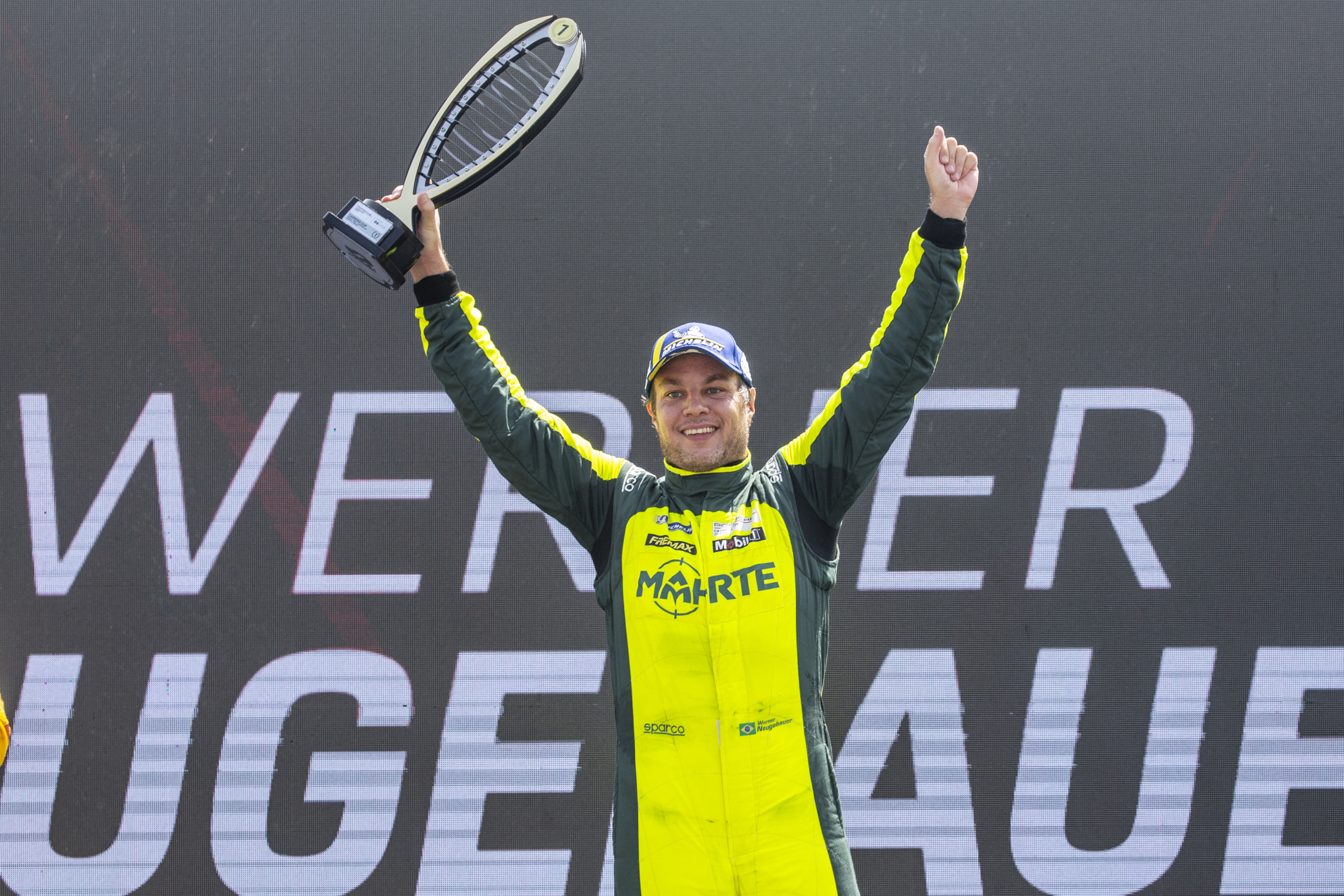 Velocidade no Asfalto Porsche Cup: Werner Neugebauer assume a liderança na largada e vence a segunda corrida no Velocitta Por Eni Alves Publicado em 8 de abril de 2024 Compartilhar no Facebook Compartilhar no Twitter Compartilhar no Google+ Compartilhar no Pinterest Piloto da Mahrte Racing Team teve a sua segunda vitória na temporada e ocupa a segunda colocação no campeonato Werner Neugebauer no pódio(Bruno Terena) O piloto gaúcho Werner Neugebauer venceu a sua segunda corrida na temporada 2024 da Porsche Carrera Cup. Neste domingo (7), no Velocitta, em Mogi Guaçu (SP), o piloto da Mahrte Racing Team conquistou a sua terceira vitória no traçado paulista, onde não vencia desde 2020. A vitória deixa o piloto em segundo lugar no campeonato, a apenas três pontos do líder, se considerados os dois descartes obrigatórios. Na primeira prova do fim de semana, disputada no sábado (6), Werner foi o sétimo colocado. “Na sexta-feira eu cometi um erro e danifiquei o carro por baixo e a equipe da Cup fez um trabalho fantástico para recuperar o carro e deixar em condições para as corridas. Na primeira prova, no sábado, eu classifiquei em quarto e na largada eu achei que o ritmo do líder estava lento demais, o que acabou prejudicando um pouco. Depois eu acabei tomando um monte de pancadas e terminei em sétimo”, disse o piloto do Porsche #8. “Com a inversão do grid, largamos da segunda posição para a segunda prova e a posição de largada aqui no Velocitta influencia muito. Consegui fazer uma boa largada e saltar para primeiro logo na primeira curva. Consegui abrir quase cinco segundos de vantagem e aí veio o Safety Car. Novamente tive que impor um bom ritmo para conquistar a vantagem de novo e vencer”, concluiu o piloto que conquistou a sua 17ª vitória na categoria. O próximo compromisso dos pilotos da Porsche Carrera Cup será ainda em abril, nos dias 27 e 28, no autódromo de Interlagos, em São Paulo (SP). Para a temporada 2024 o piloto Werner Neugebauer tem patrocínio de Mahrte e Cofap. Classificação do campeonato após duas etapas disputadas (top 5 extraoficial com os descartes aplicados) 1, Marçal Muller, 53 pontos 2. Werner Neugebauer, 50 3. Miguel Paludo, 48 4. Christian Hahn, 44 5. Pedro Aguiar, 37 Siga o piloto nas redes sociais: Instagram: @wernerneugebauer8 Facebook: http://www.facebook.com/wernerneugebauer8 Twitch: www.twitch.tv/wernerneugebauer Informações para a imprensa: CS Press & Content Caio Scafuro