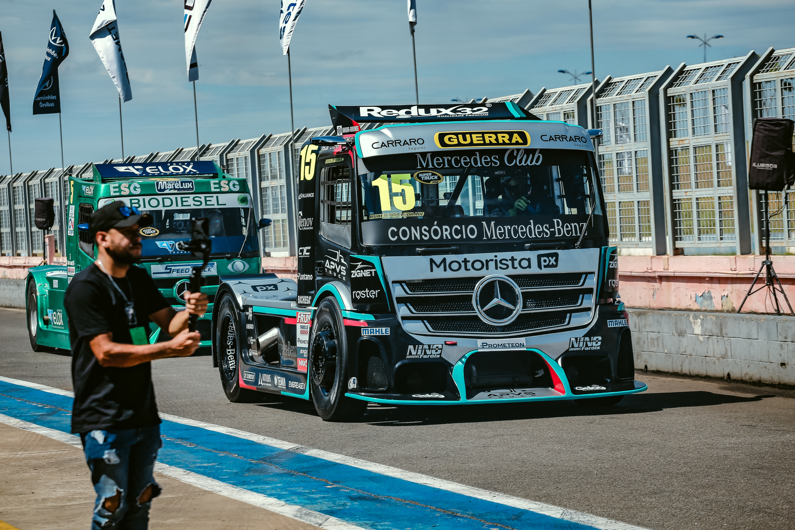 Felipe Giaffone deu mais uma amostra do grande momento que vive na carreira. Atual campeão da Copa Truck, o piloto da R9 Competições vem para a segunda etapa do campeonato, no Autódromo Internacional Ayrton Senna, em Goiânia, depois de ter sido um dos vencedores da etapa de Campo Grande e assumir a liderança da temporada 2024 em março. Neste quente sábado (13) no Planalto Central, o paulista colocou seu Volkswagen Meteor Zero Emisson na pole position depois de ter registrado volta quase 0s5 mais rápida em relação ao segundo colocado do grid, Roberval Andrade, com Mercedes-Benz da ASG Motorsport.