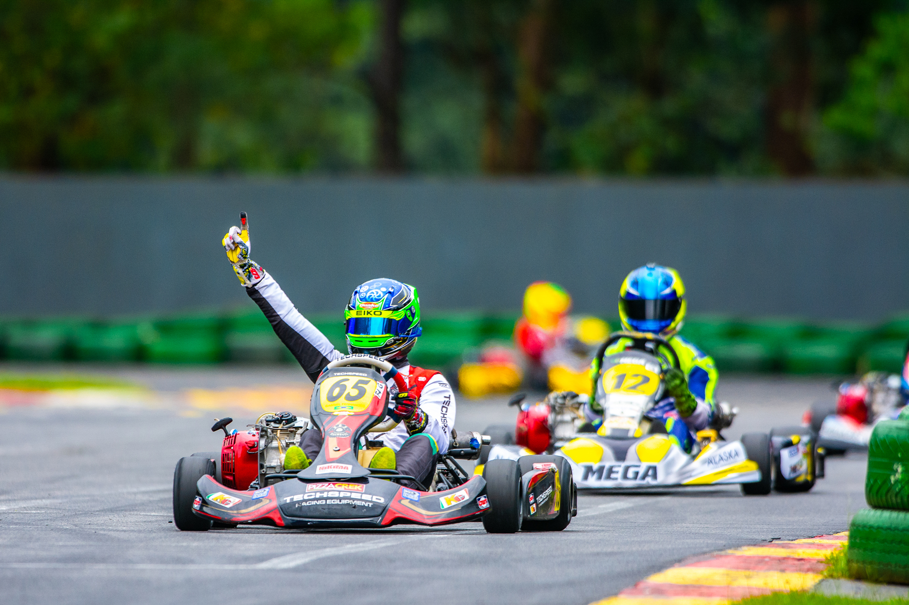 Compartilhar no Facebook Compartilhar no Twitter Compartilhar no Google+ Compartilhar no Pinterest Campeão da F4 Júnior em 2023, piloto de 14 anos vence pela primeira vez na F4 Graduados Gabriel Fernandes é o único a vencer as duas baterias da F4 Graduados(Foto: Leonardo Dias) Com pole position e vitória nas duas baterias realizadas no domingo (14/4) no Kartódromo Aldeia da Serra (Barueri/SP), o carioca Gabriel Fernandes (Techspeed/Cinestúdio/Globo Construtora/Seepill Valves/Total Auto Center/3Marc/Pizza Crek/SOS Bike Móvel/Box Detail) atingiu o objetivo de vencer pela primeira vez na F4 Graduados da V11 Aldeia Cup, e de quebra assumiu a liderança do campeonato. “Estou muito feliz pela primeira vitória em etapa pela Graduados. Bem contente com a evolução do meu Techspeed”, comemorou o piloto de apenas 14 anos de idade, atual campeão da F4 Júnior. No treino de aquecimento Gabriel Fernandes já marcou o melhor tempo da F4 Graduados. Na tomada de tempos, logo em sua terceira volta ele já garantiu a pole position, mostrando que estava determinado a vencer a etapa, já que na abertura do campeonato ele também largou da primeira posição e venceu apenas uma bateria. A primeira bateria foi muito disputada, com ‘Biel’ liderando as primeiras sete voltas, quando foi ultrapassado e caiu para segundo. Cinco giros depois ele reassumiu a ponta para vencer com 0s443 de vantagem sobre Matheus Lolis. Na segunda bateria, largando do quinto posto pela inversão entre os cinco primeiros da prova inicial, Gabriel empreendeu um ritmo forte e na quarta passagem já era o líder. Venceu com 0s460 de diferença sobre Paulo Dutra. Agora, Gabriel Fernandes é o único piloto a repetir pole position e a vencer três baterias. “As provas tem sido muito disputadas. Meu chassi Techspeed estava bruto, muito constante e rápido. Encontramos o caminho e agora é tentar descolar de meus concorrentes nas próximas etapas”, aspira o mais jovem vencedor da F4 Graduados. “Nessa etapa procuramos alternativas de acerto do Techspeed. Testamos várias calibragens até acertar uma ideal para o set-up para as corridas. O nosso kart era muito rápido de miolo. Não tínhamos um motor bom, pois andava a 95 km/h na reta e os melhores chegavam em média a 99 km/h. Por isso não fizemos as voltas mais rápidas, mas o pole e as duas vitórias são méritos do ‘Biel'”, comentou Odílio ‘Nikima’ Brito, chefe da equipe campeã Nikima Racing/Dai Motorsport e pai de Gabriel Fernandes. A quarta etapa do V11 Aldeia Cup será no dia 19 de maio, novamente no Kartódromo Aldeia da Serra. Resultado da 3ª etapa da V11 Aldeia Cup: 1) Gabriel Fernandes; 2) Paulo Dutra; 3) Guilherme Bittencourt; 4) Matheus Lolis; 5) Bruno Souza; 6) Bruno Catelli; 7) Adriano Amaral; 8) Guilherme Oliva; 9) Pedro Lopes; 10) Guilherme Klocke. Confira a pontuação extra-oficial da F4 Graduados depois de três etapas da V11 Aldeia Cup: 1) Gabriel Fernandes, 34 pontos; 2) Bruno Souza, 34; 3) Matheus Lolis, 22; 4) Pedro Lopes, 16; 5) Bruno Catelli, 12; 6) Paulo Dutra, 12. Gabriel Fernandes tem o apoio de Techspeed/Cinestúdio/Globo Construtora/Seepill Valves/Total Auto Center/3Marc/Pizza Crek/SOS Bike Móvel/Box Detail. Siga @_gabrielfernandes65 @nikimaracing @daimotorsport Por: Master Mídia Marketing