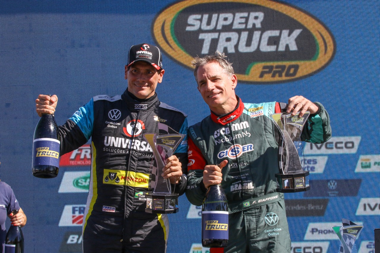 Velocidade no Asfalto Felipe Giaffone conquista pódio em Londrina e mantém liderança da Copa Truck Por Eni Alves Publicado em 13 de maio de 2024 Compartilhar no Facebook Compartilhar no Twitter Compartilhar no Google+ Compartilhar no Pinterest Piloto da Volkswagen chegou em terceiro lugar na primeira corrida de Londrina e finalizou a prova 2 no top-10 Felipe Giaffone ao lado de Beto Monteiro(Vanderley Soares/RF1) Atual campeão da Copa Truck, Felipe Giaffone conquistou seu quinto pódio em seis corridas disputadas na temporada 2024, mantendo a liderança da competição após a rodada dupla realizada neste domingo no Autódromo Ayrton Senna, em Londrina (PR). O atual campeão soma agora 97 pontos, com 10 pontos na frente de Wellington Cirino. O piloto do caminhão Volkswagen Metor largou em segundo lugar e chegou na terceira posição na primeira prova deste domingo. “Hoje foi dia de pensar no campeonato. A gente não era tão rápido para brigar pela vitória na primeira corrida. Então estava buscando fechar com o terceiro lugar na prova 1 e pelo menos o quarto na 2, que seria bem importante para ampliarmos ainda mais a liderança. E teria dado certo não fosse o toque recebido pelo Roberval (Andrade) na corrida 2, onde ele acaba se atirando em um lugar que não dá e acaba rodando. Em todo caso, a gente manteve a liderança e agora vamos pensar na próxima etapa”, diz Giaffone, que é hexacampeão brasileiro de Truck. Apesar do toque, o piloto paulista conseguiu retornar para disputa e ainda finalizou a prova no top-10. A próxima etapa da Copa Truck será disputada daqui quatro semanas, no autódromo Potenza, em Minas Gerais, substituindo a etapa programada para Santa Cruz do Sul (RS). Por: Rodrigo França