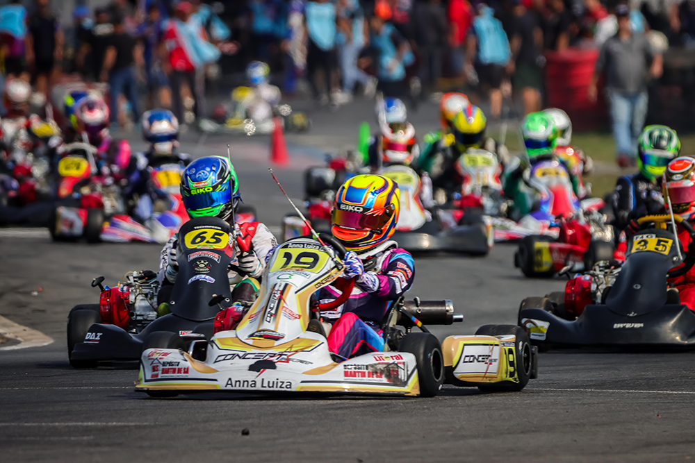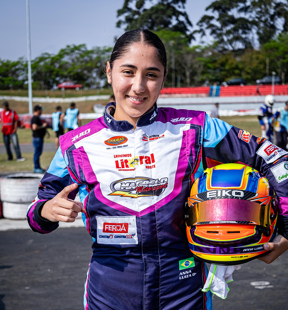 Compartilhar no Facebook Compartilhar no Twitter Compartilhar no Google+ Compartilhar no Pinterest A 6ª etapa foi realizada no último final de semana, no kartódromo de Interlagos Com 28 pilotos no grid da F4 Graduados, 11 da classe B, Anna Luiza Pimpão (Construjá/ Ferja/ Construdigi/ Litoral Norte/ Depósito Martin de Sá/ Concept Kart) teve uma etapa de disputas acirradas. O bom desempenho da pilota, representante de Caraguatatuba, litoral Norte de São Paulo rendeu pódio e pontos importantes na etapa, que abre o segundo turno da competição. No treino de qualificação Anna Luiza marcou o 4º melhor tempo na classe B. Com bom ritmo e diversas trocas de posições alcançou o segundo lugar na primeira prova. Logo no início da segunda, um incidente entortou a barra de direção do kart, prejudicando o desempenho da pilota. Ainda assim, ela conseguiu segurar no braço o quarto lugar na classe B. Com a soma destes resultados Anna Luiza subiu no 3º degrau do pódio. “Agradeço aos patrocinadores, que acreditam no meu sonho, a minha equipe, Magrelos Motorsport, que me entregou um equipamento muito competitivo. Agradeço o apoio da Concept Kart e dos meus pais e familiares, que são a minha fortaleza. Teremos uma pausa nas competições no mês de julho, mas continuarei com o a minha preparação física, e voltaremos com tudo em agosto”, informou Anna Luiza Pimpão. Enia Editora e Comunicação Texto: Eni Alves Fotos: Diego Tartalho Anna Luiza Pimpão conquistou o 3º lugar no pódio depois de duas corridas eletrizantes