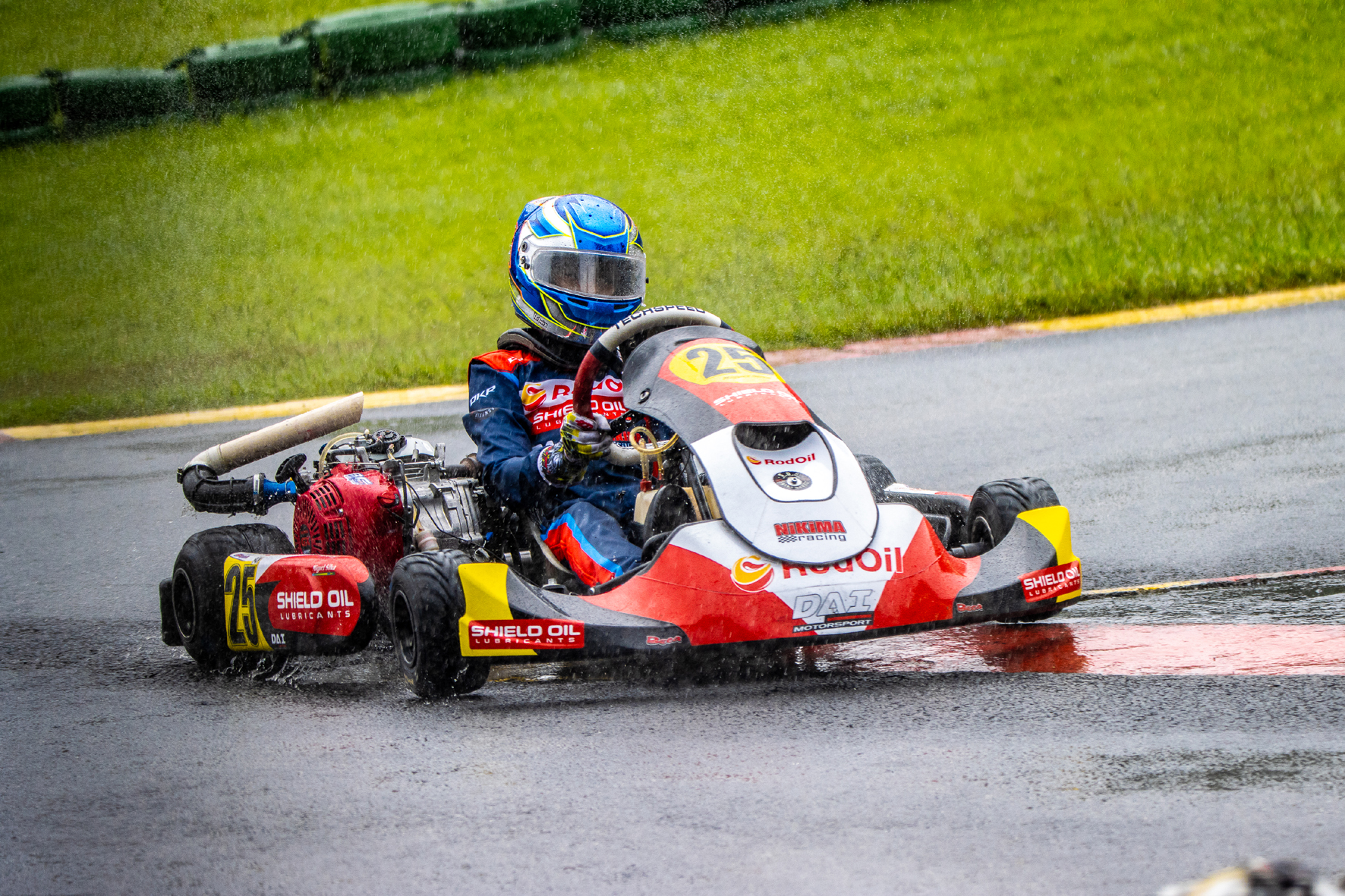 Compartilhar no Facebook Compartilhar no Twitter Compartilhar no Google+ Compartilhar no Pinterest Piloto de 12 anos de idade ficou em segundo na primeira bateria e venceu a segunda prova da F4 Júnior O Techspeed de Miguel Silva teve ótimo desempenho debaixo de chuva(Foto: Leonardo Dias) O kartista paulista Miguel Silva (RodOil/Shield Oil/SOS Bike Móvel) é o vice-campeão do Open, realizado nesta sexta-feira (12/7) como evento preparatório para a Copa do Brasil, no Circuito Internacional Paladino, em Conde, na Paraíba. “Vim para a Paraíba para conhecer a pista de Conde e fazer uma boa preparação para o segundo campeonato mais importante do kartismo brasileiro. E acho que fomos bem, estou confiante em brigar pelo título na semana que vem”, acredita o piloto de 12 anos de idade. No treino de aquecimento Miguel Silva foi o mais rápido, já dando demonstração que iria brigar pela pole position. No entanto, na tomada de tempos realizada sob chuva ele escapou da pista e bateu, ficando com a terceira melhor marca. Na primeira bateria, também com a pista molhada, na terceira volta ele já passou na vice-liderança. Na oitava passagem fez a volta mais rápida (1min09s744), e no penúltimo giro assumiu a ponta. No entanto, Paulo Willemann foi na sua referência e deu o troco, vencendo a prova. Na segunda bateria, largando novamente do terceiro posto, agora com a pista seca, na segunda volta Miguel era o vice-líder, posição que ocupou até a 11ª passagem, quando começou a chover e ele assumiu a ponta, para vencer com boa vantagem após as 15 voltas, com Willemann em segundo. Como cada um dos pilotos venceu uma bateria, o critério adotado pela organização para definir o campeão do Open foi a tomada de tempos, e com isto Paulo Willemann ficou com o primeiro posto e Miguel Silva foi o vice-campeão. “Foi positivo, um bom treino, um excelente aprendizado para o Miguelito. Pegou a pista com chuva, no seco e na chuva com pneu slick. Enfim, conheceu o traçado. Foi muito importante para chegar na semana da Copa do Brasil e saber mais ou menos pra onde vai, pois pegou várias situações de pista e em todas elas esteve competitivo”, avaliou Odair Brito, chefe da equipe Dai Motorsport/Nikima Racing. Miguel Silva participara também do Open da categoria Júnior, que terá a tomada de tempos e as duas corrida neste sábado (13/7). Siga: @miguelito_kart_25 @rodoilcombustiveis @shieldoillubricants @daimotorsport @nikimaracing @sosbikemovel @costafe16 Por: Master Mídia Marketing