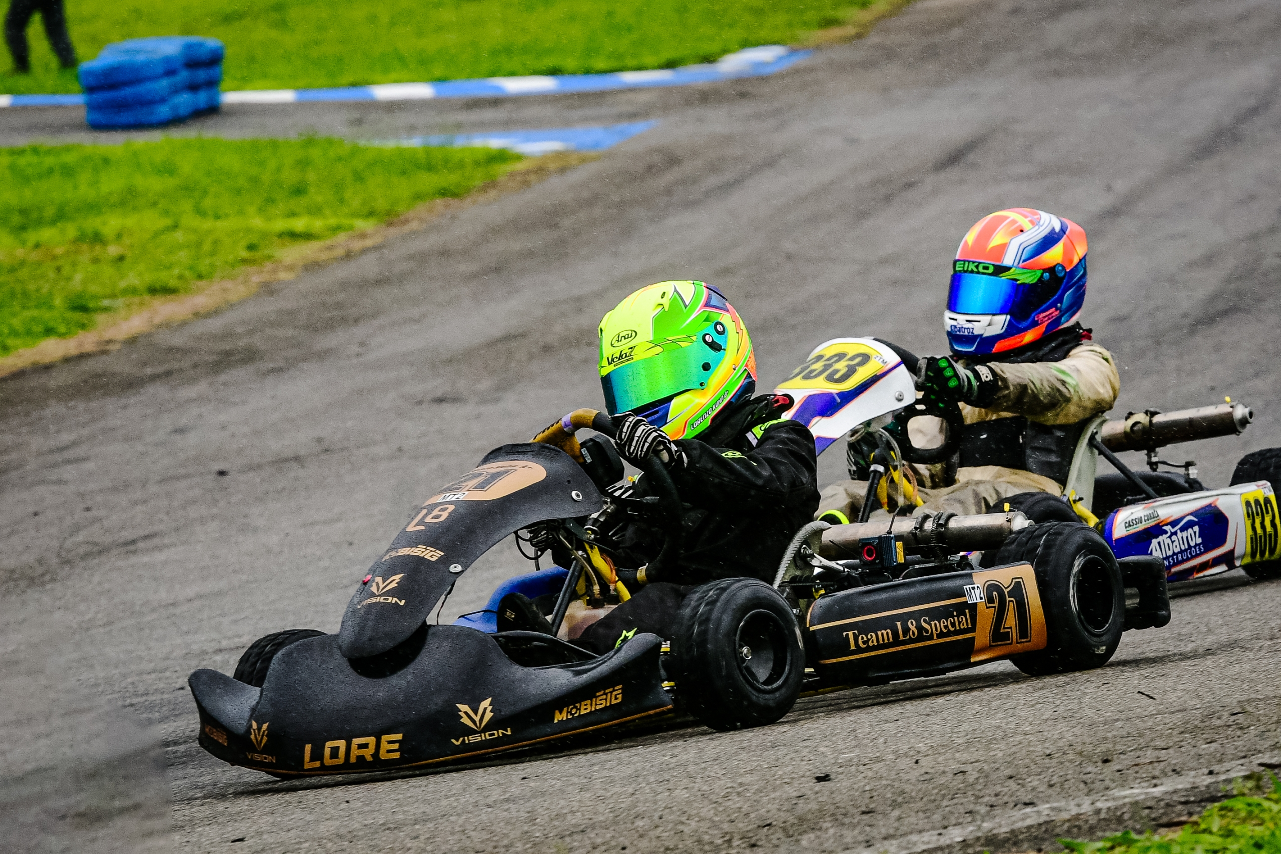 Compartilhar no Facebook Compartilhar no Twitter Compartilhar no Google+ Compartilhar no Pinterest Com o objetivo de conhecer a pista onde será disputada a Copa Brasil de Kart Lorenzo Kuhn participou do Open realizado em paralelo com o Campeonato Nordeste, no Circuito Internacional Paladino, de 11 a 13 de julho. Fã de Ayrton Senna, o piloto curitibano aproveitou a oportunidade para homenagear o tricampeão mundial de Fórmula 1 com a icônica pintura preta com detalhes em dourado da Lotus, carro com o qual o ídolo conquistou a primeira vitória na categoria máxima do automobilismo mundial, e considerado por muitos um dos layouts mais lindos da história da Fórmula 1. Aos oito anos de idade e o piloto mais jovem da categoria Mini 2T no evento, Lorenzo Kuhn conhece as facetas de Ayrton Senna nas corridas e passou a se dedicar mais aos treinos depois de assistir, repetidas vezes, aos vídeos no Youtube com o pai e o irmão, também piloto de kart, Lucas Kuhn. Estreante no traçado do Paladino, kartódromo de Conde, na Região Metropolitana de João Pessoa-PB, o jovem piloto ganhou experiência para o desafio duplo na competição nacional. Na Copa Brasil de Kart, que será realizada de 17 a 27 de julho, no mesmo local, Lorenzo Kuhn irá disputar o título nas categorias Mirim e Mini 2T e espera alcançar um bom resultado para que a homenagem ao ídolo, que nos deixou há 30 anos, seja completa e comemorada também ao estilo Senna, no alto do pódio. Texto: Eni Alves Fotos: Cristiano Rodrigues (Enia Comunicação)