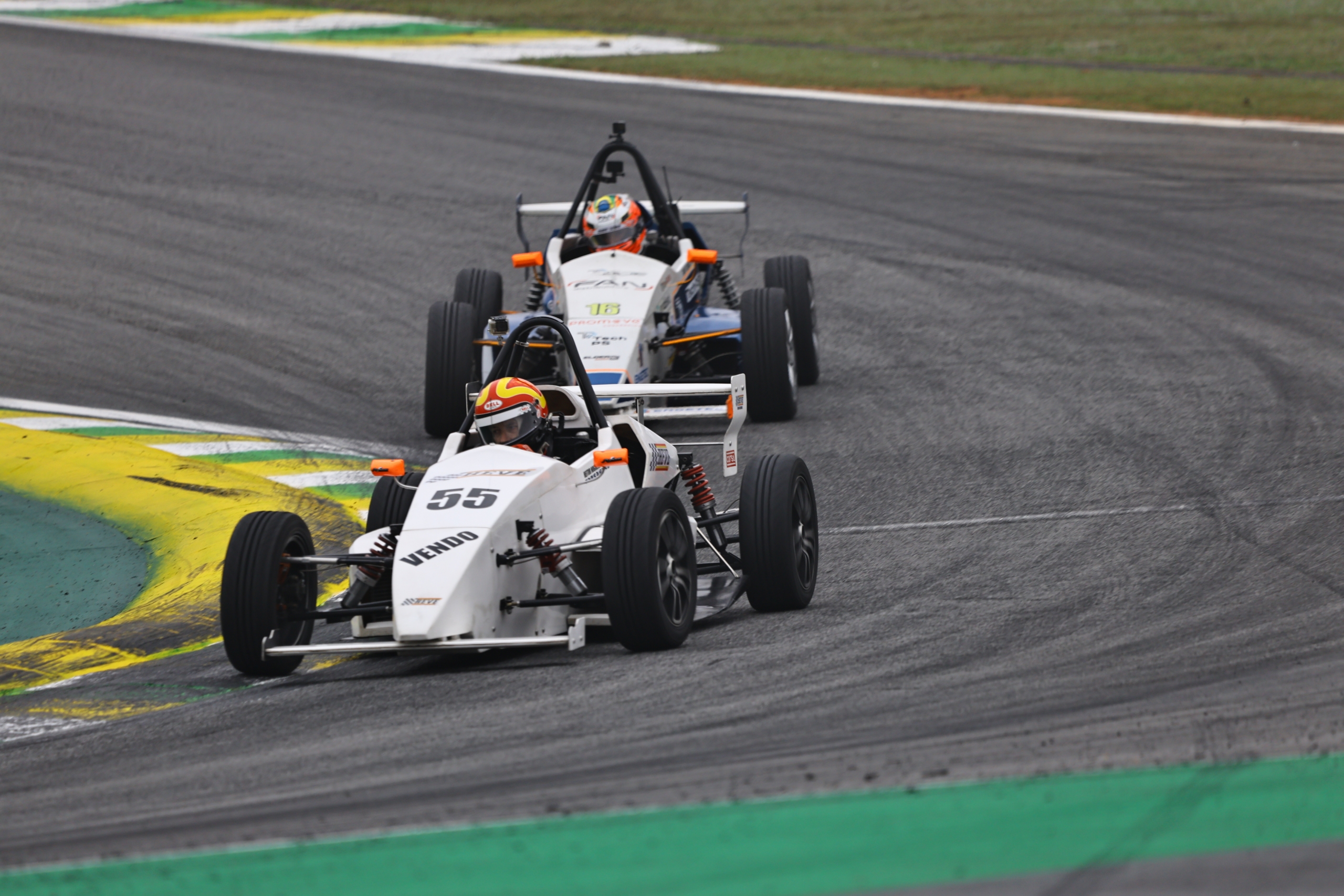 Velocidade no Asfalto Fórmula eVolution: Heitor bicampeão de Fórmula eVolution Por Eni Alves Publicado em 22 de julho de 2024 Compartilhar no Facebook Compartilhar no Twitter Compartilhar no Google+ Compartilhar no Pinterest Com nova vitória no domingo, Nogueira conquista bicampeonato com três etapas de antecedência; Sena brilha com novo segundo lugar e Suenaga assume a vice-liderança no campeonato. Heitor Nogueira e Davi Sena(Divulgação / Humberto da Silva) Sem sofrer a pressão da corrida realizada no sábado (20), Heitor Nogueira Filho (HEVE Racing) venceu a corrida 2 realizada nesse domingo (21) no Autódromo de Interlagos, válida pela 6ª etapa do campeonato e conquistou o bicampeonato com três etapas de antecedência. Nogueira manteve a ponta na largada que logo na entrada da reta oposta foi interrompida por uma bandeira amarela e causando a entrada do Safety Car. Sem conseguir desviar a tempo, Marcelo Pereira (Galafassi Sports) acertou o carro de Maykon Melo (Competikar), com o primeiro apenas perdendo o bico do seu carro #7, mas seguindo na disputa. Com o reinício de prova Nogueira disparou na ponta, deixando André Eidt (Thomaz Race) e Davi Sena (West Racing) lutando pela segunda colocação. Uma pedra no radiador impediu Eidt de forçar o carro o fazendo abandonar a corrida depois de 5 voltas. Sena assumiu a segunda colocação, mas não teve vida fácil, recebendo forte pressão de André Suenaga (Rosset Racing), Fabio Farias (HEVE Racing) e Saulo Soares (Thomaz Race) que formavam um forte segundo pelotão na prova. Em sua melhor apresentação na temporada, Farias assumiu a vice-liderança da corrida na sétima volta e três voltas depois foi a vez de Sena recuperar a posição; fazendo uma prova muito agressiva, Suenaga assumiu o segundo lugar restando uma volta para a bandeira quadriculada, mas sem conseguir se distanciar dos adversários. Heitor Nogueira venceu a corrida, a 11ª vitória na temporada 2024. Davi Sena cruzou a linha na segunda colocação, superando Suenaga nos metros finais por apenas 0s036. Farias foi o quarto a receber a bandeiada, apenas 0s524 e trazendo por menos de meio segundo Saulo Soares, fechando o TOP5. Com a nova vitória, Nogueira chega a 232 pontos e restando ainda 6 corridas (3 etapas) não é possível que nenhum piloto o alcance em pontuação mesmo que o piloto não marque nenhum ponto até o final da temporada, lembrando que cada piloto ainda terá que descartar os cinco piores resultados no ano. A disputa agora fica pelo vice-campeonato da temporada 2024: com a etapa do final de semana, André Suenaga assume o vice-campeonato com 115 pontos, seguido por André Eidt (111), Antonio de Souza (108) e Sena agora na 5ª colocação com 85 pontos. O Campeonato Paulista de Fórmula eVolution dá uma pausa e retorna apenas em setembro para a 7ª etapa da temporada, nos dias 6, 7 e 8 no Autódromo de Interlagos. Durante o mês de agosto da Fórmula eVolution participará do tradicional evento das 100 Milhas de Piracicaba que esse ano marcará sua 35ª edição que acontecerá entre os dias 16 e 18 de agosto no Autódromo de Piracicaba (ECPA). Em prova comemorativa extra-campeonato, a categoria homenageará Marks Weiser que faleceu em junho e era um entusiasta pelo automobilismo piracicabano, participando de movimentos pela criação de um autódromo no município além de organizar corridas nas ruas da cidade na década de 1960. Confira o resultado da corrida 2 da Fórmula eVolution: 1) Heitor Nogueira Filho (HEVE Racing), 12 voltas em 24min59s958 2) Davi Senha (West Racing), à 9s989 3) André Suenaga (Rosset Racing), à 10s025 4) Fabio Farias (HEVE Racing), à 10s549 5) Saulo Soares (Thomaz Race), à 10s917 6) Antonio de Souza (Rosset Racing), à 11s309 7) Pedro Scherner (West Racing), à 27s121 8) Martin Salvati (Thomaz Race), à 36s376 9) Maykon Melo (Competikar), à 36s672 10) Vinicius Fernandes (Thomaz Race), à 38s844 Não completaram: Marcelo Pereira (Galafassi Sports) André Eidt (Thomaz Race) CALENDÁRIO – TEMPORADA 2024 – CAMPEONATO PAULISTA Etapa 1 – 24 e 25/02 – Interlagos Etapa 2 – 13 e 14/04 – Interlagos Etapa 3 – 04 e 05/05 – Interlagos Etapa 4 – 25 e 26/05 – Interlagos Etapa 5 – 22 e 23/06 – Interlagos Etapa 6 – 20 e 21/07 – Interlagos Etapa 7 – 07 e 08/09 – Interlagos Etapa 8 – 12 e 13/10 – Goiânia Etapa 9 – 21 e 22/12 – Interlagos —– Vitor Garcia