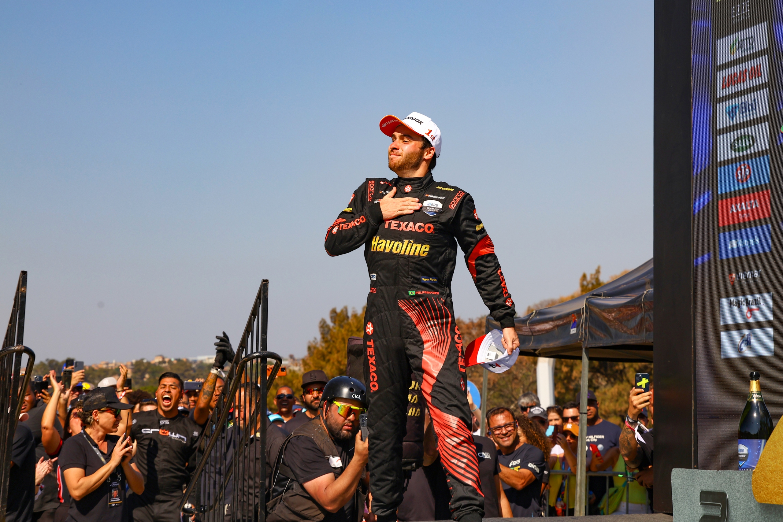 Velocidade no Asfalto Felipe Baptista é o vencedor da Corrida Principal na estreia de BH na Stock Car Por Eni Alves Publicado em 19 de agosto de 2024 Compartilhar no Facebook Compartilhar no Twitter Compartilhar no Google+ Compartilhar no Pinterest Piloto da Texaco Racing conquista segunda vitória, é o piloto com mais pódios na temporada e está na vice-liderança do campeonato Felipe Baptista conquista segunda vitória na temporada(Carsten Horst / Hyset) Um dos protagonistas da temporada 2024 da Stock Car Pro Series, o jovem Felipe Baptista, da equipe Texaco Racing, venceu neste domingo (18) a Corrida Principal da sétima etapa do ano no circuito montado nas ruas de Belo Horizonte, no entorno do estádio do Mineirão. A capital mineira fez sua estreia no calendário da principal categoria do automobilismo nacional com uma grande festa. Com a vitória, a segunda no ano, Felipe é agora o piloto com mais pódios na temporada, cinco no total (duas vitórias, um segundo e dois terceiros lugares). O piloto está na vice-liderança, com 545 pontos, a apenas quatro pontos do líder. Depois de ter conquistado o segundo lugar no grid, no sábado (17), com uma diferença de apenas 5 milésimos para o pole, o piloto da Texaco Racing assumiu a ponta logo no início da prova, com uma bela ultrapassagem ainda na segunda volta. A equipe também fez um ótimo trabalho no pit stop e Felipe garantiu a vitória, numa prova marcada por interrupções do Safety Car e até uma bandeira vermelha, que interrompeu a corrida por alguns minutos para a retirada de um dos carros da pista. “Que final de semana! Minha primeira experiência em um circuito de rua e curti demais. Desde o início dos treinos, a gente mostrou muita velocidade. Hoje, na Corrida Principal, largamos em segundo e logo no início já consegui a ultrapassagem para assumir a liderança. Depois foi só trazer o carro ‘pra casa'”, comemorou Felipe Baptista. “Estou feliz demais. A equipe Texaco Racing está de parabéns, como sempre, e espero que a gente mantenha esse desempenho nas próximas etapas para voltarmos à liderança”, continuou o piloto de apenas 21 anos. Felipe também aprovou o traçado de 3.113 metros e 12 curvas da capital mineira. “Espero voltar mais vezes. Achei a pista muito desafiadora e divertida. Vai ser uma vitória que vai ficar marcada na minha carreira e espero voltar mais vezes a BH. O público foi incrível, passando uma energia muito legal, foi realmente demais”, finalizou o piloto, que foi ovacionado pelo público ao final do pódio. William Lube, chefe da equipe, também celebrou o grande resultado do time, que agora segue para a próxima etapa, entre os dias 6 e 8 de setembro, no autódromo do Velopark, em Nova Santa Rita (RS). “Circuito de rua é sempre um desafio. A pista costuma ser muito técnica, não permite erros, mas no final deu tudo certo. O Felipe e a equipe fizeram um trabalho fantástico e vamos para a próxima, colados no líder, para tentar assumir essa ponta e não largar mais”, completou Lube. Os 10 primeiros na Corrida Principal: 1. Felipe Baptista Texaco Racing 25 voltas em 52:14.633 2. Nelson Piquet Jr Cavaleiro Sports a 2.504 3. Caca Bueno KTF Sports a 5.528 4. Arthur Leist Full Time Sports a 6.962 5. Cesar Ramos Ipiranga Racing a 8.127 6. Eduardo Barrichello Full Time a 9.527 7. Rafael Suzuki TMG Racing a 10.362 8. Ricardo Mauricio Eurofarma-RC a 11.452 9. Felipe Massa TMG Racing a 12.598 10. Daniel Serra Eurofarma-RC a 13.514 Classificação do campeonato, após sete etapas (Top-10):* 1º – Felipe Massa, 549 pontos 2º – Felipe Baptista, 545 3º – Ricardo Zonta, 545 4º – Dudu Barrichello, 543 5º – Julio Campos, 536 6º – Rafael Suzuki, 491 7º – Bruno Baptista, 480 8º – Gabriel Casagrande, 466 9º – Enzo Elias, 459 10º – Daniel Serra, 420 *pontuação extraoficial Assessoria de Imprensa | Texaco Racing FGCom Fernanda Gonçalves | Beatriz de Paula