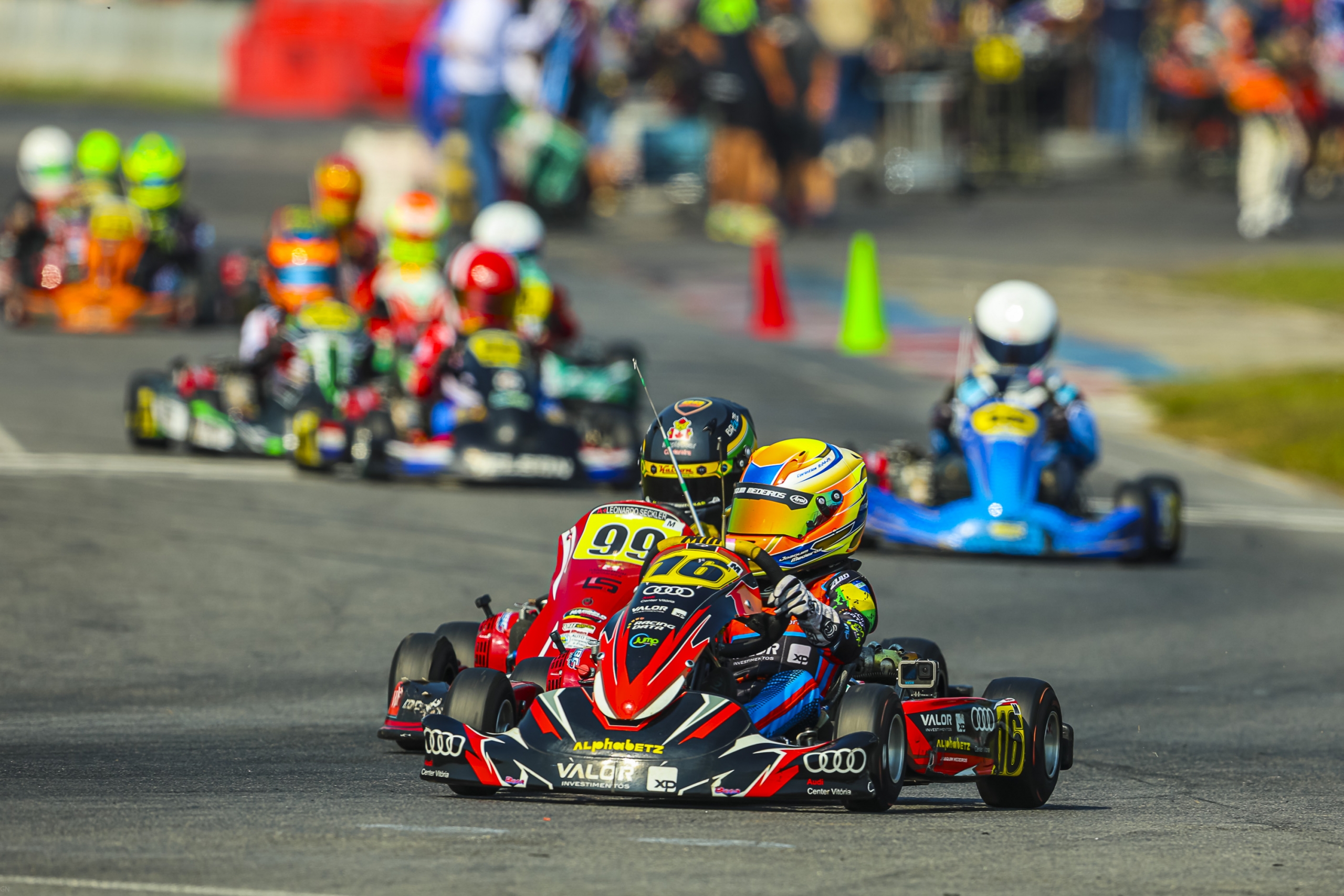 Compartilhar no Facebook Compartilhar no Twitter Compartilhar no Google+ Compartilhar no Pinterest O piloto capixaba fez a pole position, a volta mais rápida, e subiu ao pódio em quarto na geral da Mirim e em primeiro entre os estreantes. Joaquim Medeiros(KMCom / Gilmar Rose) A pista do Kartódromo Ayrton Senna, em Interlagos, recebeu, neste sábado, a sétima etapa da Copa São Paulo Light de Kart, temporada 2024. Pilotos de todo o Brasil estiveram na capital paulista, abrindo o segundo semestre de provas da competição. Nesta reta final de temporada, todo ponto é importante para aqueles que estão na briga pelo título. Na Mirim, o capixaba Joaquim Medeiros (Escola Alphabetz / Valor Investimentos / Audi Center Vitória / Jump Trampolim Park / Equipes: GTM Racing e Marquinhos Performance / Coach: Caio Miguel – Race Data) foi um dos destaques, com dois pódios, incluindo uma vitória entre os pilotos Rookie da categoria. Após uma longa preparação, com os treinos livres durante a semana, Joaquim conseguiu a pole position entre os pilotos Mirim Rookie, com o tempo de 51 segundos e 606 milésimos, no treino de classificação, realizado ainda na sexta-feira (16). No dia seguinte, ocorreram duas baterias para cada categoria. Na primeira prova, o piloto capixaba fez uma grande corrida, vencendo entre os estreantes, chegando em segundo na geral e fazendo a volta mais rápida. Na segunda corrida da categoria Mirim, o piloto do kart número 16 sofreu um toque na largada e caiu para o fim do pelotão. Numa corrida de recuperação extraordinária, saiu de trás para conseguir cruzar a linha de chegada em terceiro lugar na Rookie. Na soma das duas provas, Medeiros garantiu dois pódios, com o quarto lugar na geral e a vitória na Rookie, o que lhe assegura a liderança da categoria dos estreantes na classificação do campeonato. “Estou feliz com o resultado. Poderia ter sido melhor na geral da Mirim, mas fui tocado na primeira volta e tive que fazer várias ultrapassagens para chegar ao pódio. Sou o líder da minha categoria e quero muito conquistar esse título. Obrigado a todos que torceram por mim”, comemorou Joaquim Medeiros com os troféus nas mãos. A próxima etapa da Copa São Paulo Light de Kart será apenas no dia 7 de setembro. Será mais uma oportunidade para Joaquim Medeiros ampliar sua vantagem na tabela de classificação de pilotos da Mirim Rookie, rumo à tão desejada conquista para ele e sua equipe. Texto por Kako Marques / KMCom Assessoria