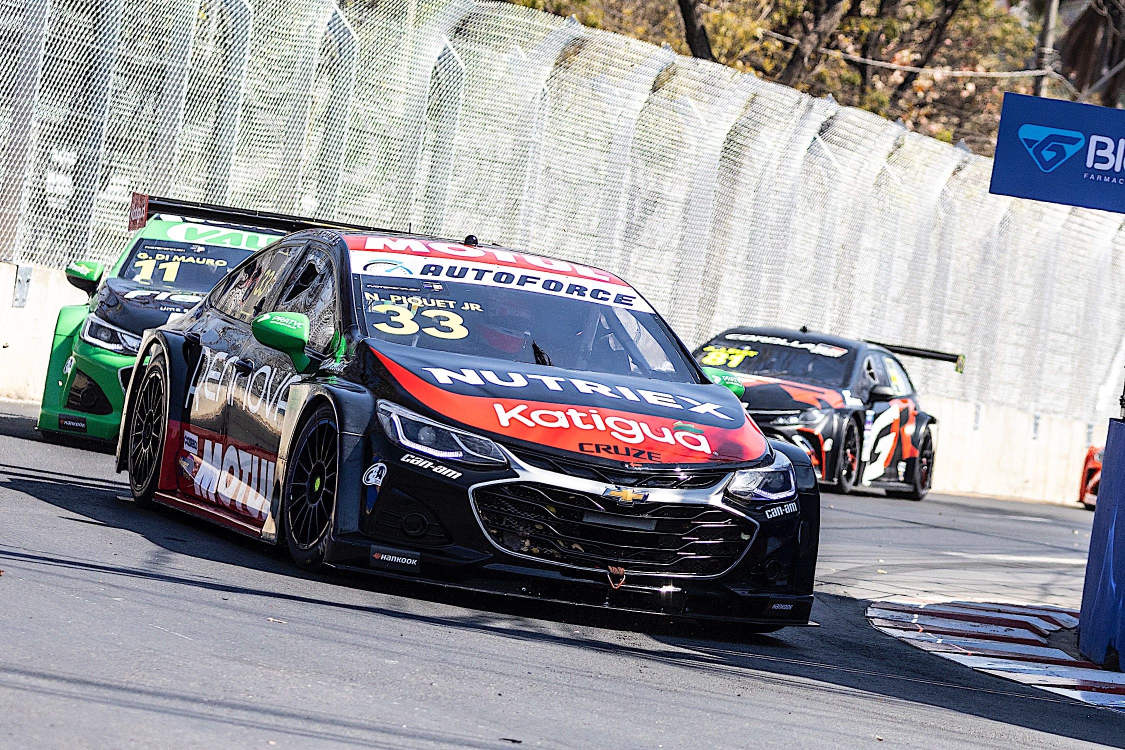 Velocidade no Asfalto Stock Car: Após Top-10 duplo na prova sprint, Cavaleiro Sports comemora pódio na corrida principal em BH Por Eni Alves Publicado em 19 de agosto de 2024 Compartilhar no Facebook Compartilhar no Twitter Compartilhar no Google+ Compartilhar no Pinterest Corrida principal na capital mineira teve o primeiro pódio de Nelson Piquet Jr. pelo time chefiado por Beto Cavaleiro Nelsinho Piquet(Bruno Terena/MS2) A equipe Cavaleiro Sports teve motivos de sobra para comemorar na primeira prova da Stock Car realizada nas ruas de Belo Horizonte (MG). No sábado (17), na corrida sprint, o time conquistou um Top-10 duplo, com Nelson Piquet Jr. na sétima posição e Gaetano di Mauro em nono lugar. Já no domingo (18), Nelsinho brilhou e garantiu o primeiro pódio pelo time chefiado por Beto Cavaleiro, ao completar a prova realizada no Circuito Toninho da Matta na segunda colocação. “Foi um fim de semana bom desde o primeiro dia”, comemorou Piquet. “O carro estava bom, a equipe fez um ótimo trabalho e conseguimos o pódio”, prosseguiu. “Na corrida sprint, o pit stop não foi tão bom, mas hoje eles cravaram e me colocaram na frente. Eu até tentei forçar um pouco, mas não tinha ritmo para vencer a prova. Quero parabenizar os organizadores por este evento maravilhoso”, concluiu. “Esse foi um fim de semana em que toda a nossa equipe buscou o seu melhor”, comemorou o chefe de equipe Beto Cavaleiro. “Já havíamos conquistado vitória em corrida principal e corrida sprint com o Gaetano [Di Mauro], ainda não tinhamos obtido um resultado tão favorável com o Nelsinho, mas ele fez um trabalho incrível e ficamos muito felizes com o primeiro pódio dele em nosso time”, completou. O próximo compromisso da Stock Car acontece nos dias 7 e 8 de setembro, para a disputa da oitava etapa da temporada. O palco será o Autódromo Velopark, em Nova Santa Rita (RS). Texto: Geferson Kern