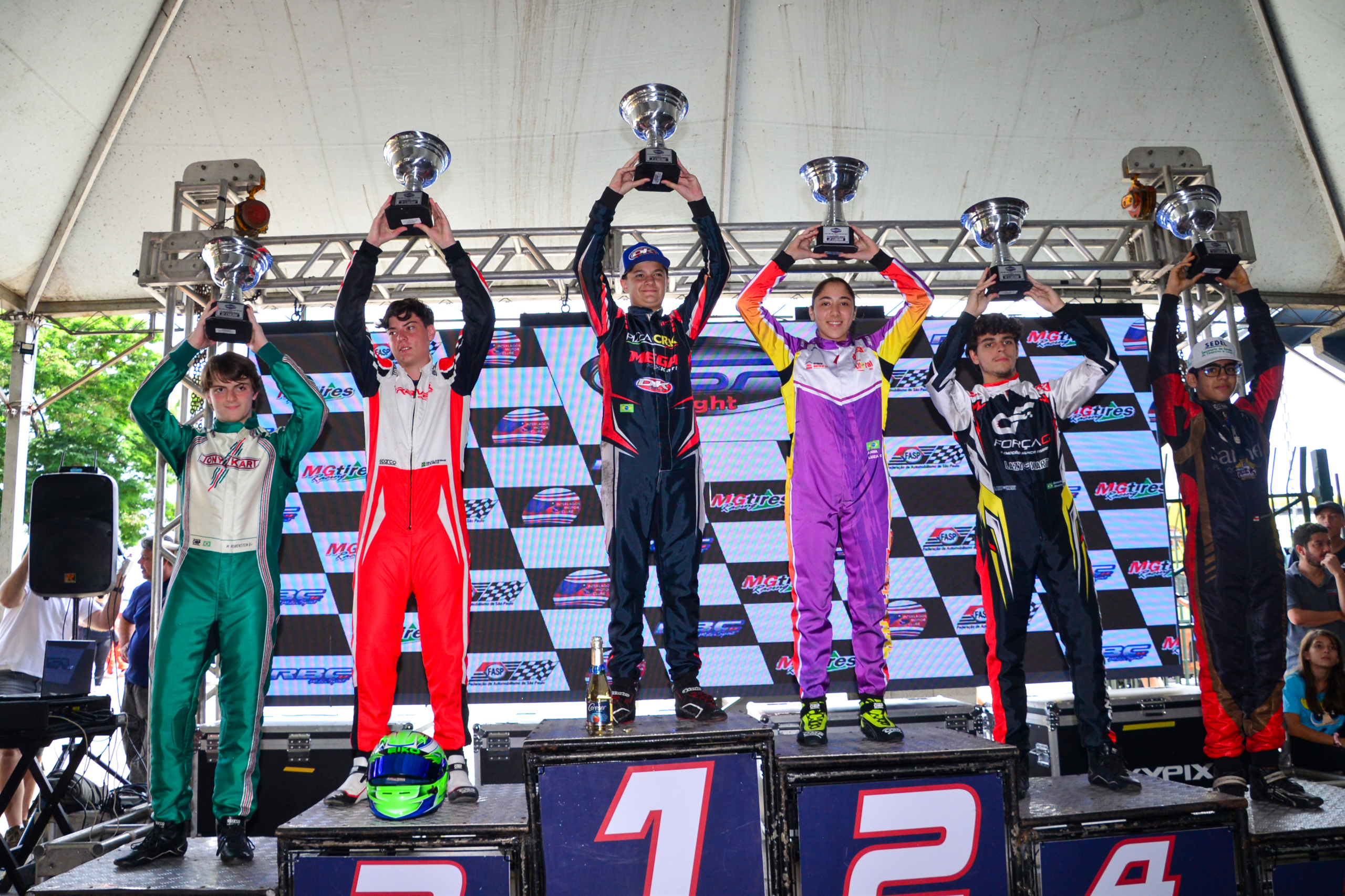 Kart Com três vitórias em Interlagos, Dudu Pagliaro brilhou na 2ª etapa da Copa São Paulo Light de Kart Por Eni Alves Publicado em 17 de março de 2025 Compartilhar no Facebook Compartilhar no Twitter Compartilhar no Google+ Compartilhar no Pinterest Piloto paulista foi ao alto do pódio com dupla vitória na F4 Sprinter e também venceu bateria na Sprinter 125cc Dudu Pagliaro (1º) foi o vencedor da etapa na F4 Sprinter(Eni Alves) O jovem Dudu Pagliaro (Pizza Crek | Somos Verde | Bebs | FrogPay | Pier Brasil | Ifood | MG Contécnica) viveu um final de semana repleto de emoções positivas e conquistas no tradicional Kartódromo Ayrton Senna, em Interlagos, na capital paulista. Competindo em duas categorias na 2ª etapa da Copa São Paulo Light – o principal campeonato estadual do kartismo no Brasil –, o piloto paulista mais uma vez mostrou seu talento e determinação, conquistando três vitórias em quatro provas disputadas. A semana começou com Pagliaro liderando alguns treinos em ambas as categorias, a F4 Sprinter e a Sprinter. Porém, após alguns problemas, Dudu foi apenas o 8º colocado na F4 Sprinter e o 9º na Sprinter. Partindo do meio do pelotão, Pagliaro fez sete ultrapassagens e venceu a primeira bateria da F4 Sprinter. Depois, largando em 5º pela inversão de grid entre os cinco primeiros, superou quatro concorrentes e venceu mais uma vez. Com dupla vitória, Pagliaro garantiu o primeiro lugar e levou a fabricante de chassis Mega Kart ao alto do pódio na etapa. Na Sprinter, competindo com motor X30, de 125cc, e com chassi CRG, Dudu Pagliaro (Pizza Crek | Somos Verde | Bebs | FrogPay | Pier Brasil | Ifood | MG Contécnica) viveu um desafio ainda maior. Na primeira corrida ele terminou em 5º após um problema mecânico, mas recuperou-se muito bem com uma linda vitória na segunda prova, o que lhe permitiu ser o 2º colocado no pódio da categoria. “Estou muito feliz e satisfeito com meu rendimento”, disse o piloto da equipe DK Racing. “Foi um final de semana de altos e baixos, mas nunca desistimos. A equipe trabalhou muito e conseguimos reverter as dificuldades com garra e estratégia. Saio muito feliz com os resultados”, completou o piloto, que se reafirma como um dos principais destaques da Copa São Paulo Light. O próximo compromisso de Dudu Pagliaro será no primeiro final de semana de abril, quando ele disputará a 2ª etapa da Copa Beto Carrero em Penha (SC), dando início em sua preparação para a disputa do Campeonato Brasileiro em novembro. KG COM Assessoria de Comunicação – Erno Drehmer