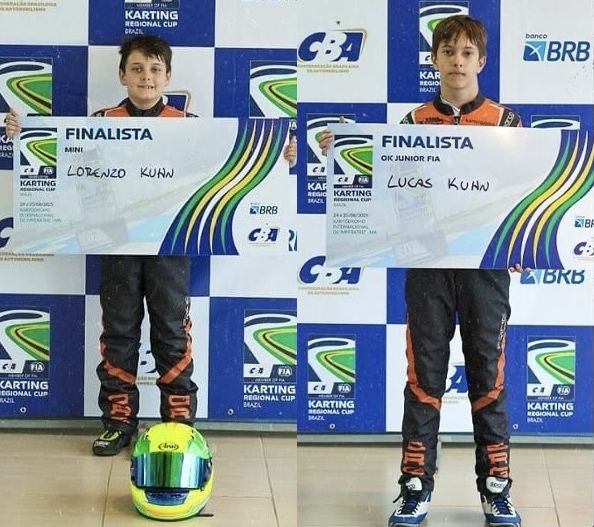 Kart Irmãos Kuhn garantem vaga na Final da Regional Cup Brasil de Kart Por Eni Alves Publicado em 9 de junho de 2025 Compartilhar no Facebook Compartilhar no Twitter Compartilhar no Google+ Compartilhar no Pinterest Lorenzo foi o campeão da etapa na Mini e Lucas o vice-campeão na OK Júnior na Copa Beto Carrero Lorenzo e Lucas Kuhn vão disputar a Final da Regional Cup em agosto(Gilmar Rose) Os irmãos paranaenses Lorenzo e Lucas Kuhn (L8 | Mobisig) viveram uma jornada inesquecível no último final de semana no Kartódromo Beto Carrero, em Penha (SC). Competindo na 3ª etapa da Copa Beto Carrero, eles conquistaram resultados que os levarão para a disputa de uma vaga em competições de caráter mundial, marcadas para serem disputadas na Europa. Na Mini, que reuniu 17 pilotos de todo o Brasil em seu grid, Lorenzo Kuhn (L8 | Mobisig) foi dominador. Depois de ser o 5º colocado na tomada de tempos, o piloto da equipe Pinheiro Competições venceu as duas baterias, a primeira delas com a vantagem de mais de 1 segundo e a segunda com uma diferença mais apertada, de apenas 146 milésimos. Por sua vez, Lucas Kuhn (L8 | Mobisig), da equipe Cris Racing, conquistou dois segundos lugares na OK Júnior após largar da 4ª posição. Com os resultados, ele terminou em 2º na etapa classificatória para a Regional Cup Brasil. A vitória de Lorenzo Kuhn na Mini e o 2º lugar de Lucas Kuhn na OK Júnior valeram aos pilotos paranaenses uma vaga para disputar a Final da Regional Cup Brasil em agosto no Maranhão. O vencedor da competição na Mini estará classificado para competir na ROK Super Final em outubro, na Itália. E na OK Júnior o campeão da Regional Cup Brasil ganhará vaga para disputar o Campeonato Mundial FIA Karting na Suécia, em setembro. “É difícil descrever nossa emoção neste final de semana”, relembra Leandro Kuhn, pai de Lorenzo e de Lucas. “Fomos ao Beto Carrero com vários objetivos, dentre eles preparar os meninos para o Campeonato Brasileiro e também lutar por estas vagas. Deu tudo certo: demos mais um passo positivo na preparação para o Brasileiro e estamos na disputa por dois prêmios de caráter mundial”, finalizou. KG COM Assessoria de Comunicação – Erno Drehmer